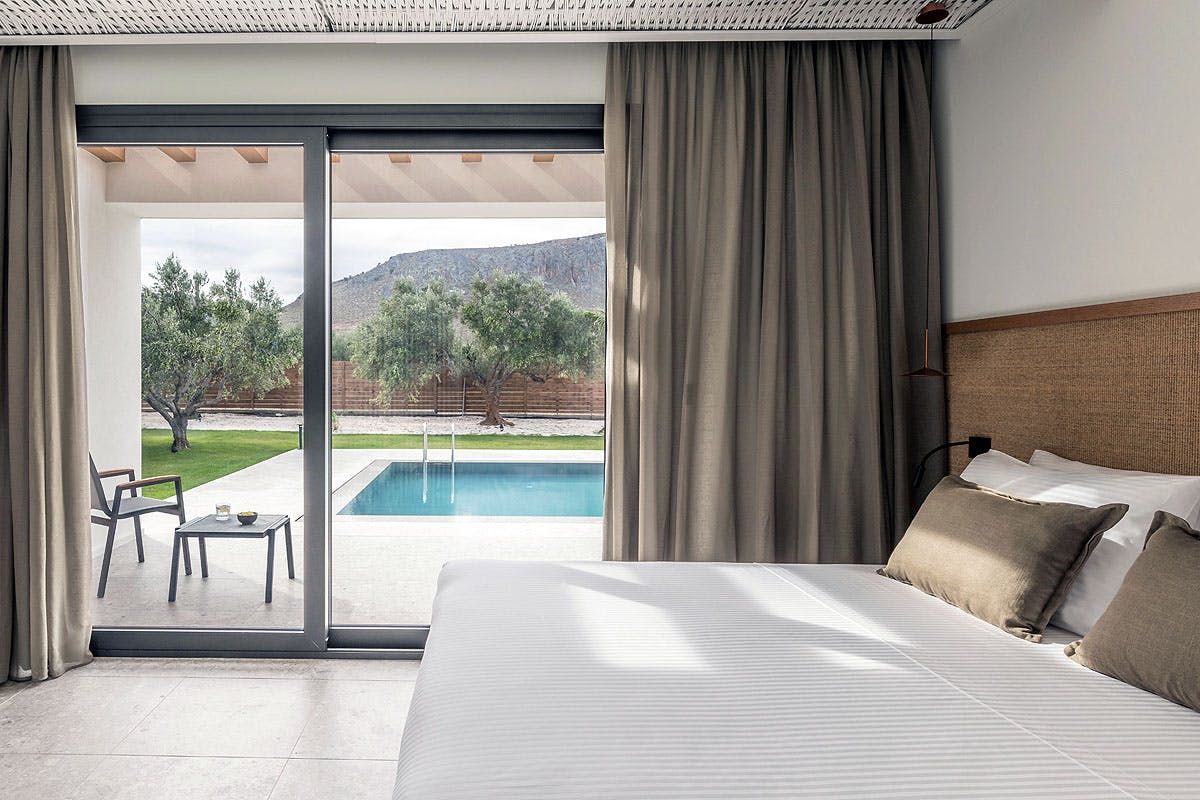 If you’re looking for a refreshing island escape, this contemporary hideaway delivers a great solution. Located in Gouves, it’s just a twenty-minute drive from Heraklion airport while the nearest beach is just 2.7 kilometres away. Back at home, you’ll find the garden, swimming pool and terrace set the tone for total relaxation. Kids will love the shallow pool and the play area, while the ground-floor bedrooms make this a fantastic option for those with reduced mobility. You will need a car here, but your host is on hand to help organise car rentals as well as a range of other extra services.