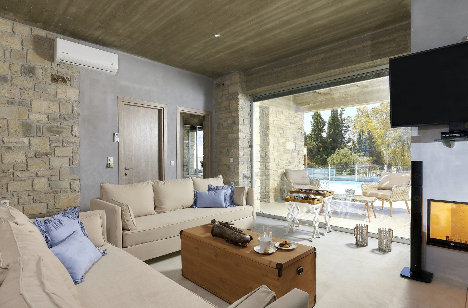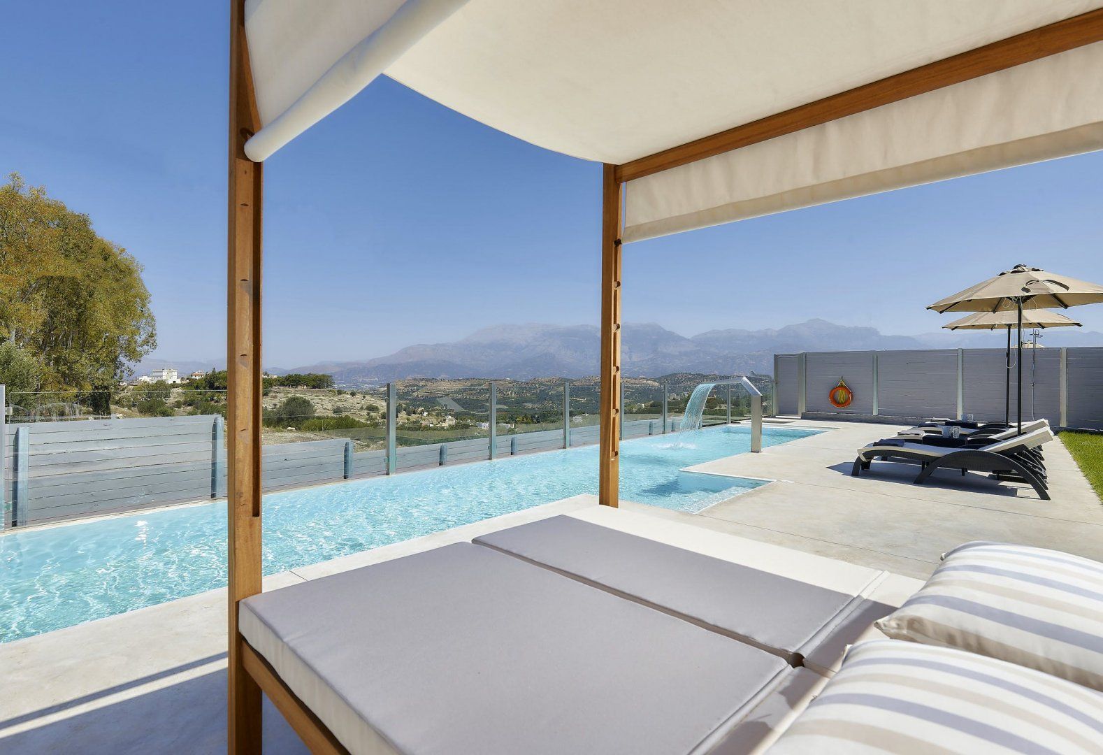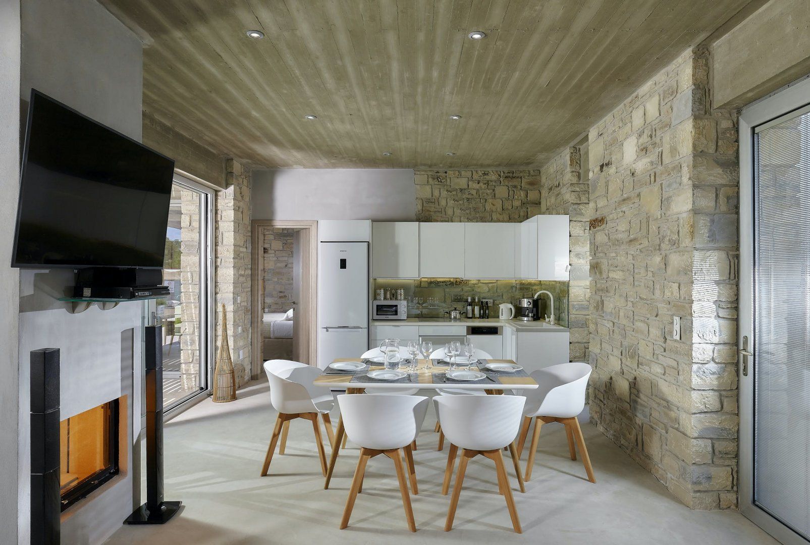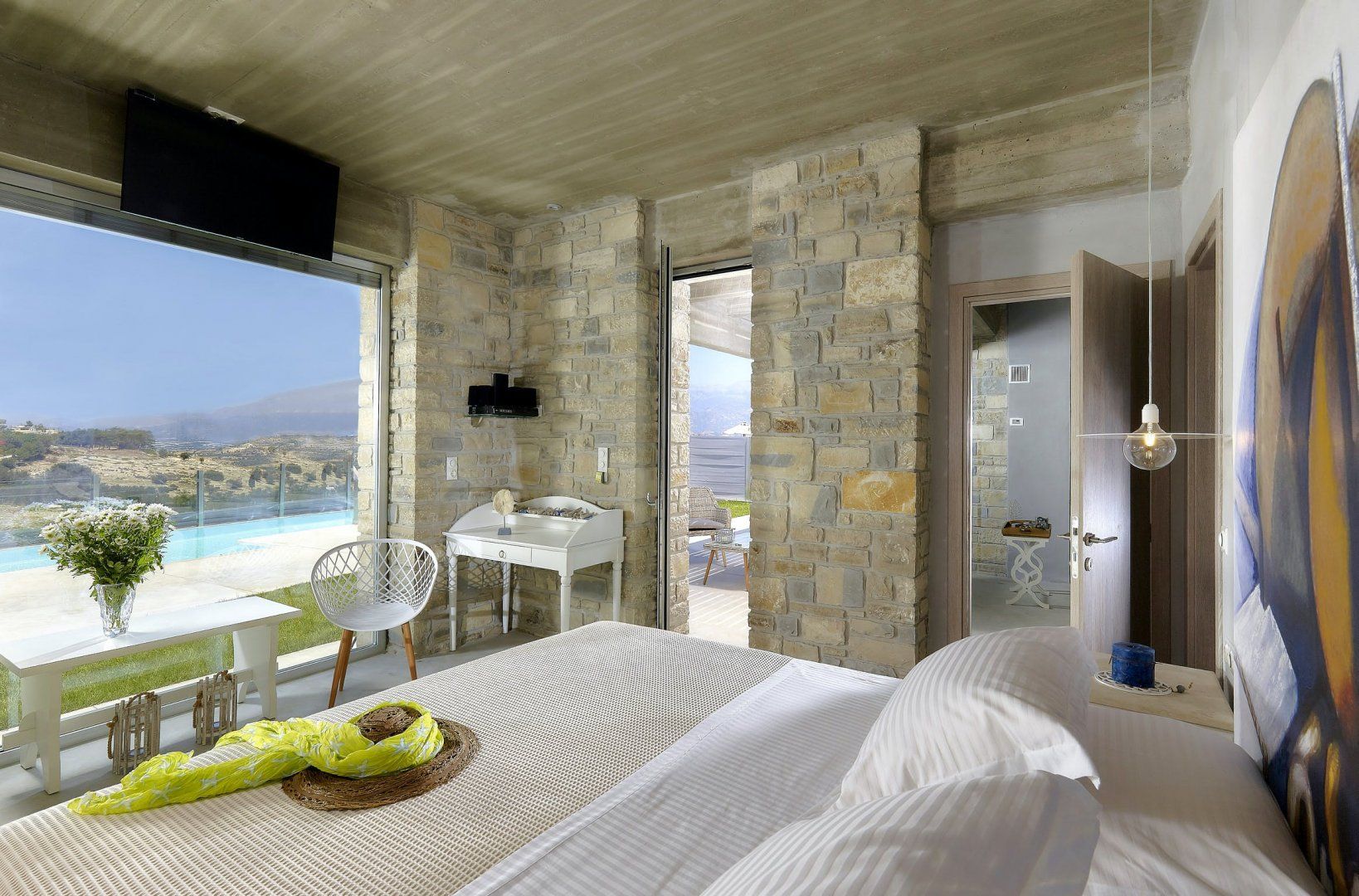 Nestled away near the stunning beach of Kalamaki, this holiday home is a sun worshipper's dream. We fell in love with the gorgeous pool deck, where you can lay back on a lounger while you enjoy some picturesque views out to the mountains in the distance, or enjoy a dreamy hydro massage from the waterfall jet in the pool. Inside, exposed stonework combines with modern lighting and Scandi-style furniture, creating a calm and contemporary space that's ideal for relaxing when you're not outside soaking up the sunshine.