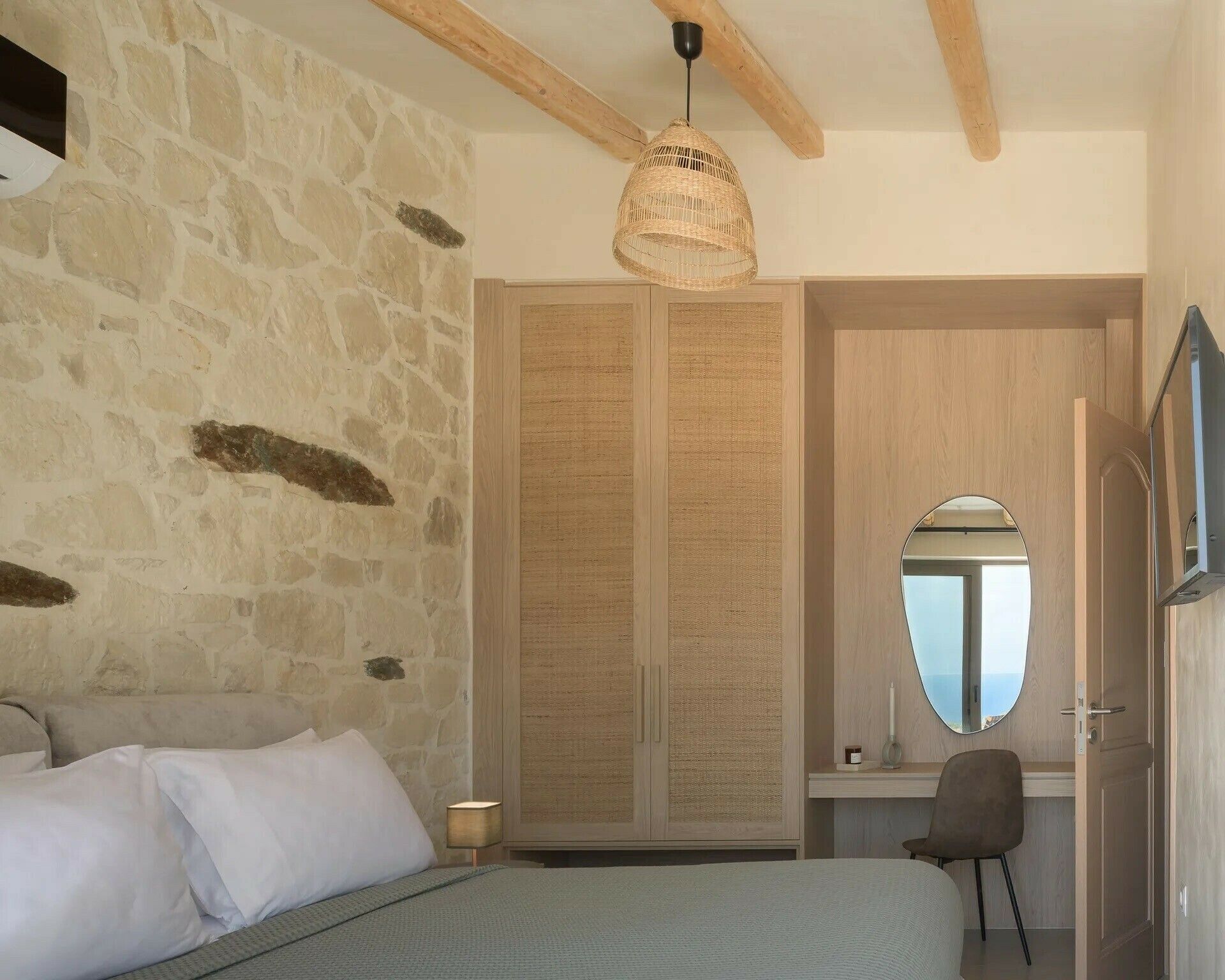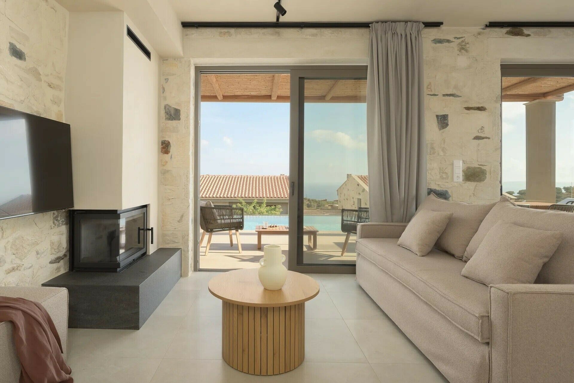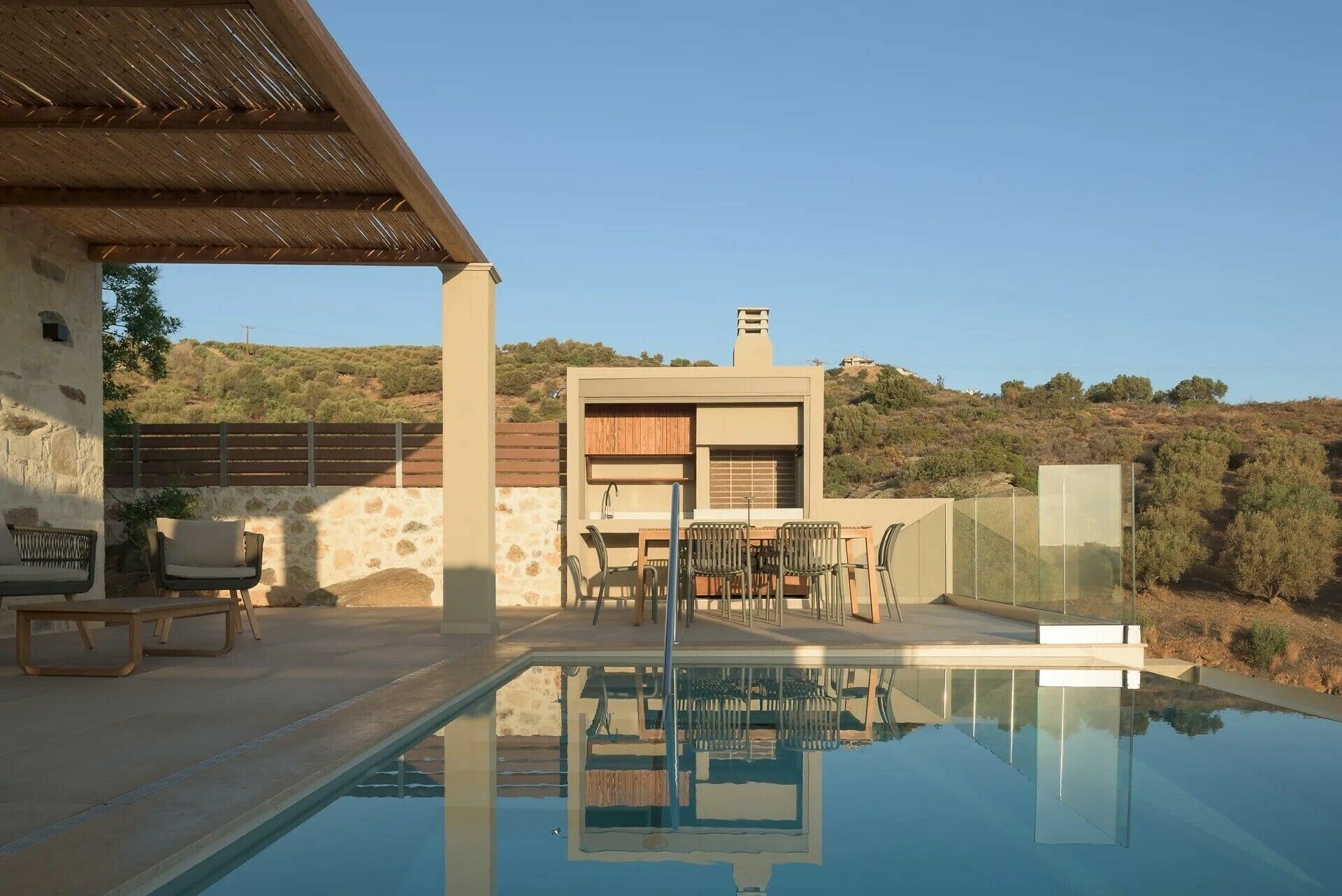 This modern villa has everything we want from a place on Crete’s north coast. The home is kitted out with everything you’ll need for a stress-free break and your host provides an optional breakfast service for an additional fee, so you can prioritise time spent relaxing by the private pool. Savour sea views from the balcony, or, if you’d like to get closer to the water, you’re a short drive from Ligaria Beach. If you feel like adventuring further afield, Heraklion is around thirty minutes by car.