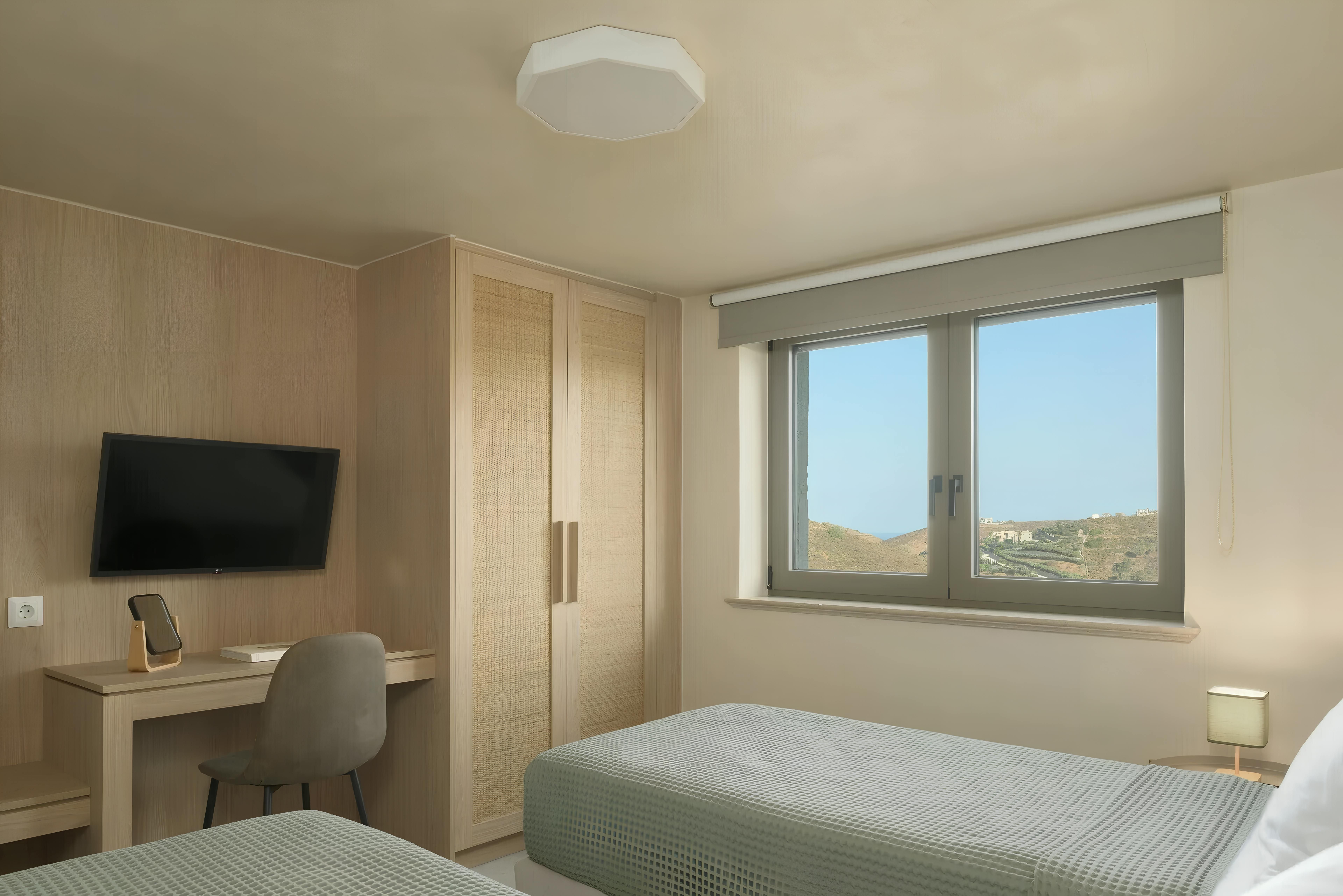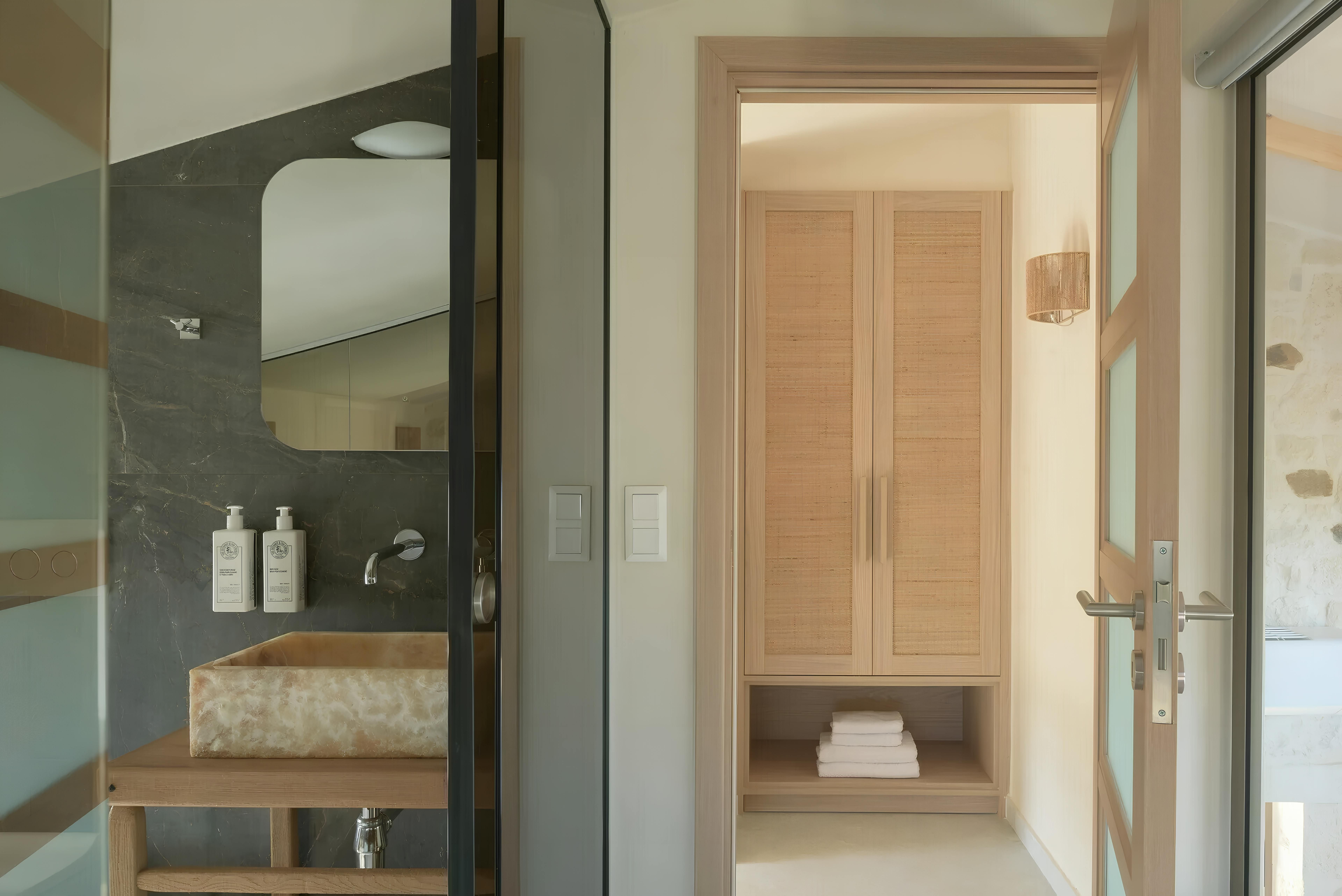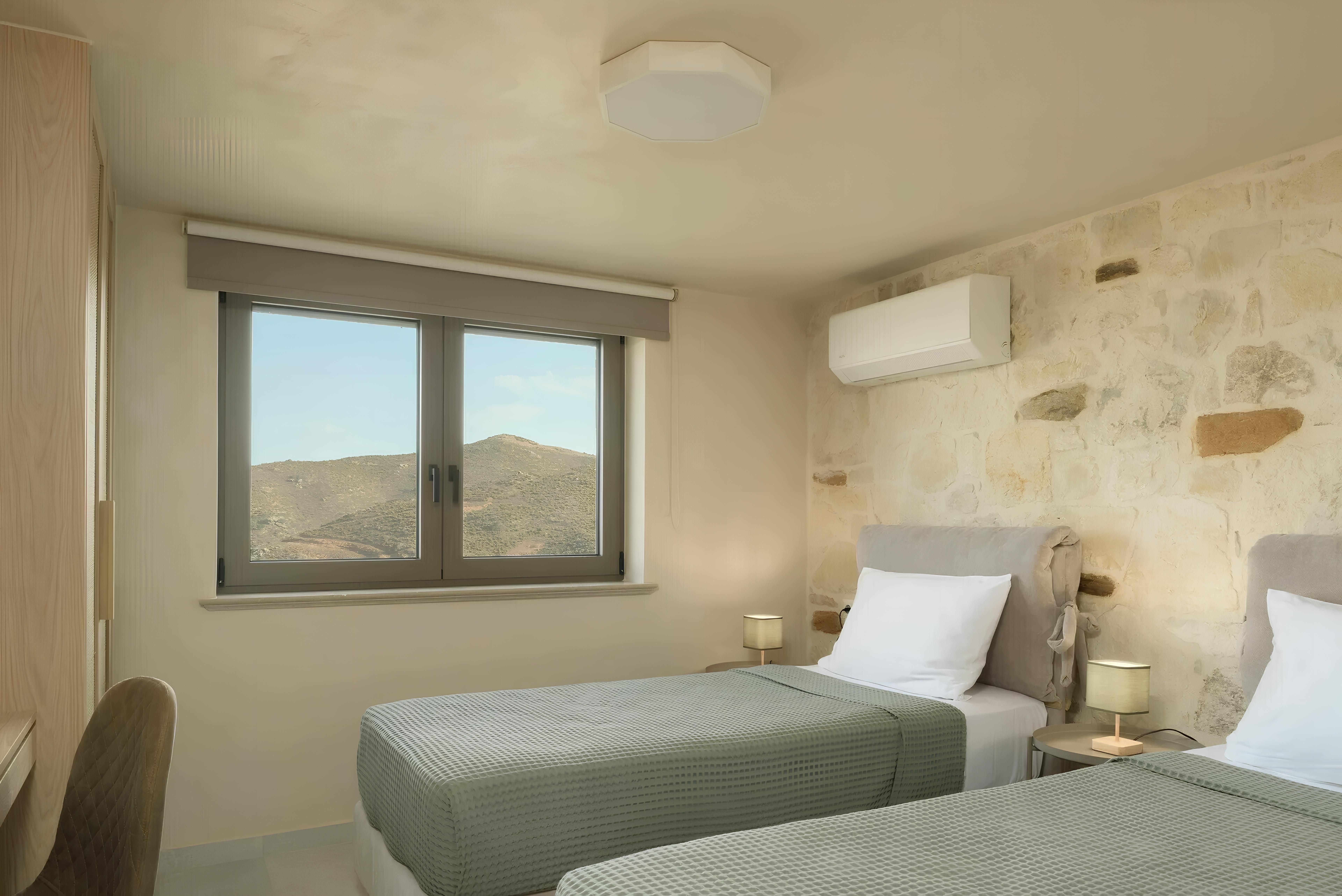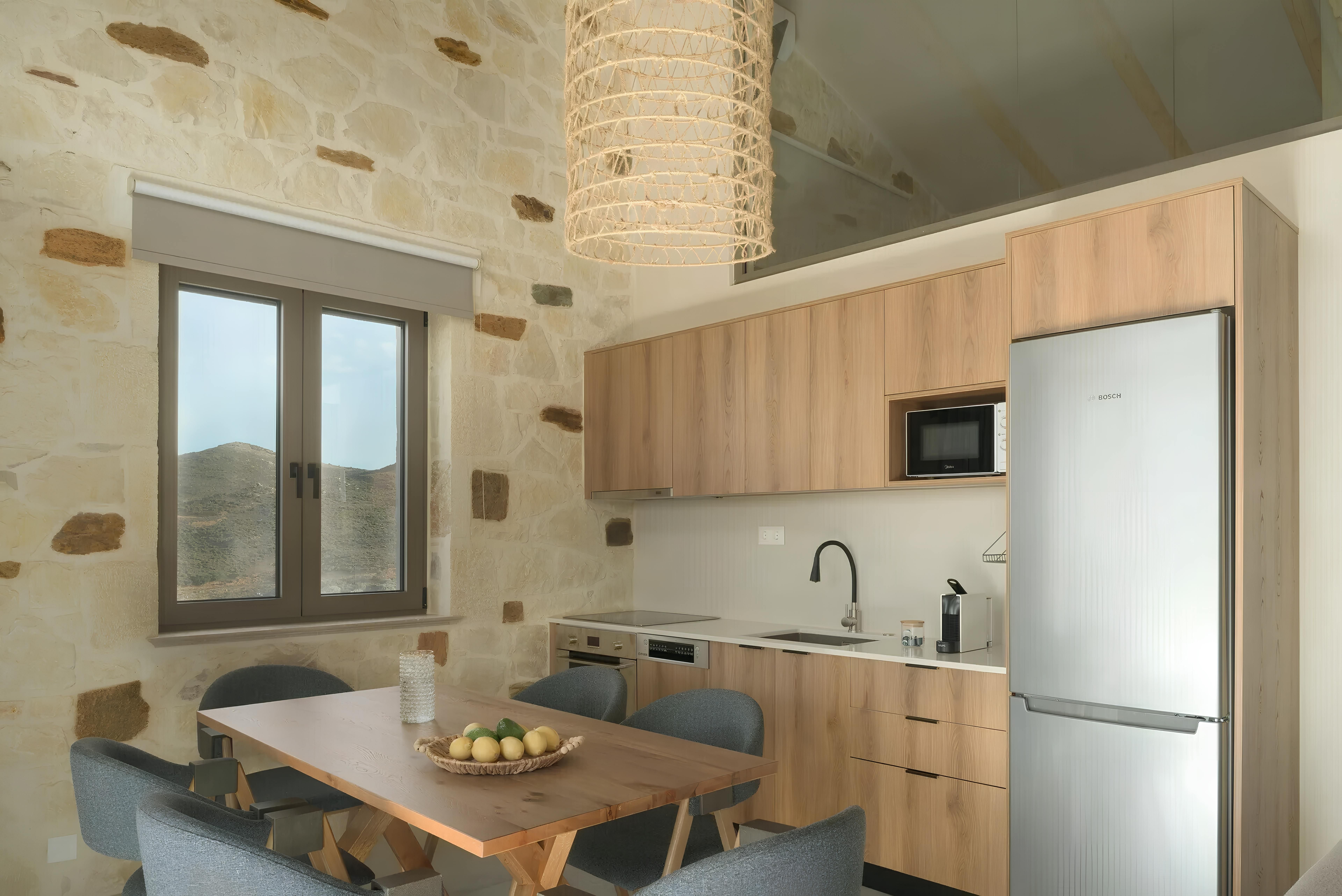 This hilltop home caught our eye for its sea views – best enjoyed while relaxing by the private pool or dining alfresco. Combining traditional Cretan architecture and contemporary features, the villa is light and airy, and perfectly positioned windows make the most of the surrounding scenery. If a day at the beach is on the cards, the nearest is 2.5 kilometres away. Or you can make the 3-kilometre drive to the coastal villages of Agia Pelagia and Lygaria, where you’ll find a choice of cafes, restaurants, and shops.