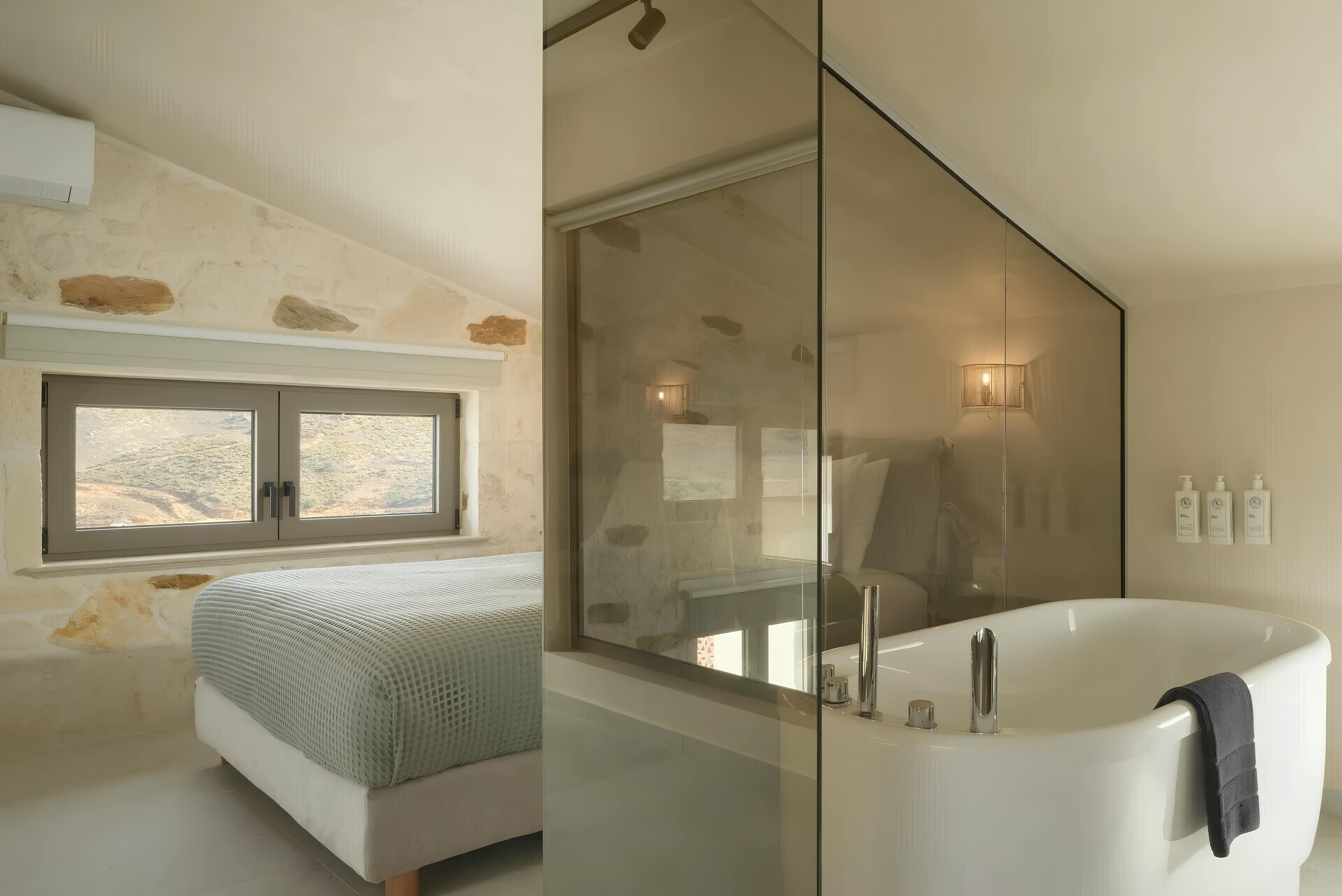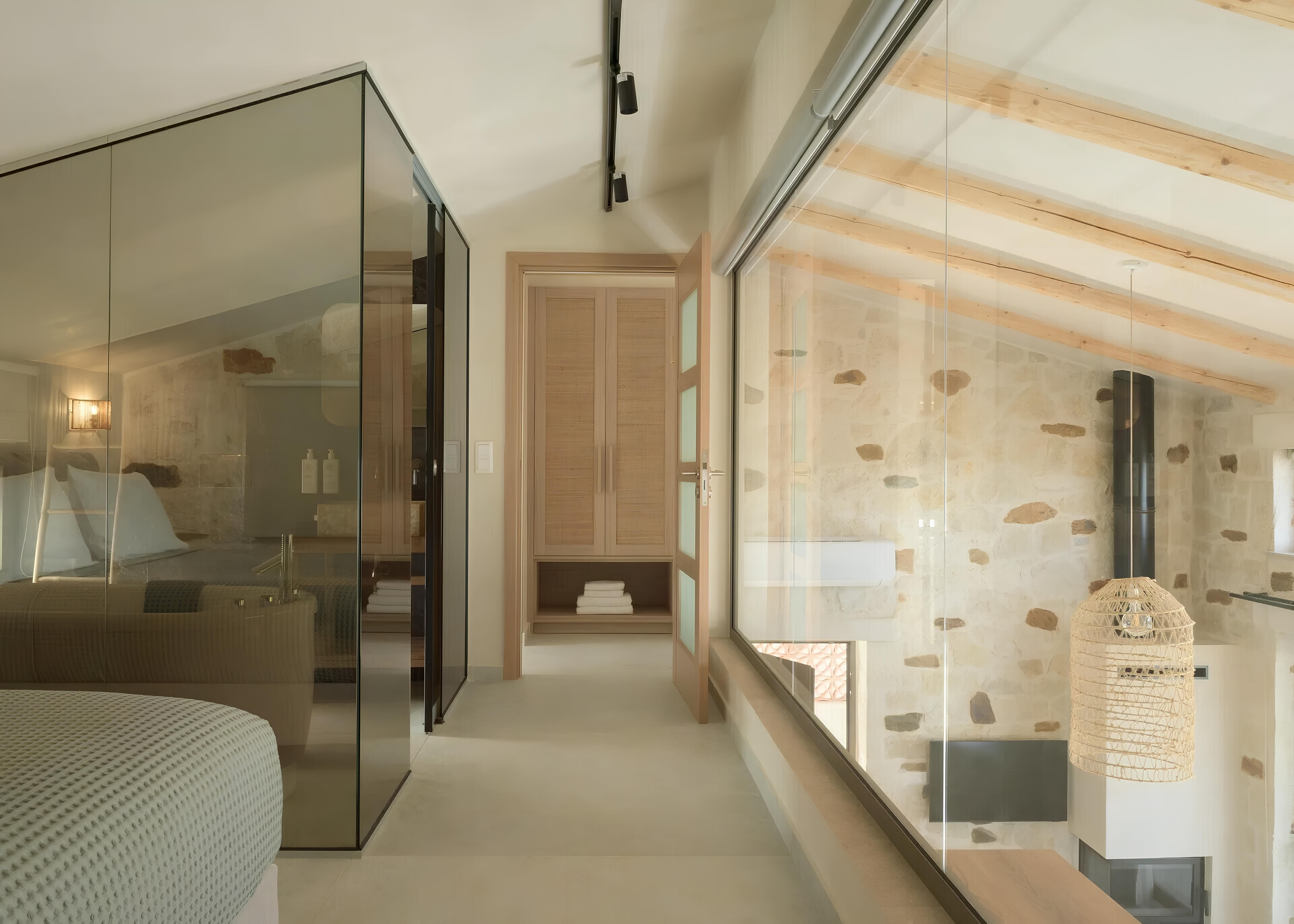 *The en-suite bathroom has a glass wall so isn’t completely private.