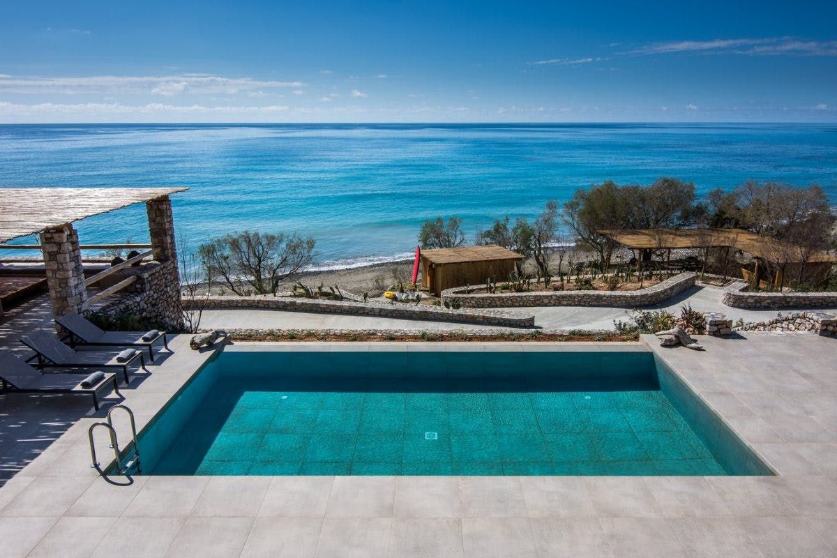 Hidden in the secluded Meakis Beach on the south coast of Crete lies this stunning villa. Consisting of two main blocks and an extra guestroom by the sea, everyone will have their own space here. Go for a dip in the calm waters of the infinity pool and dry off on the sun loungers under the hot sun. Spy stunning sea views from almost every room, whether you're tucking into a meal prepared by a private chef or throwing a barbecue with the two outdoor grills. Admire the vast sea views while enjoying an alfresco meal or one of the books from the indoor library. Keep up with your workout routine with the provided exercise equipment, or enjoy an in-home hair treatment or massage from a private specialist and achieve the height of luxury. You'll be just a stone's throw away from a secluded beach where sea turtles lay their eggs – in August, watch the baby turtles make their way to the sea while the sand lilies on the dunes blossom.