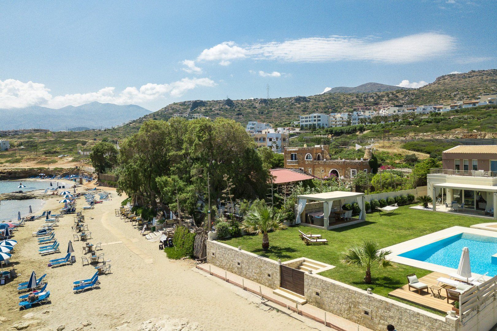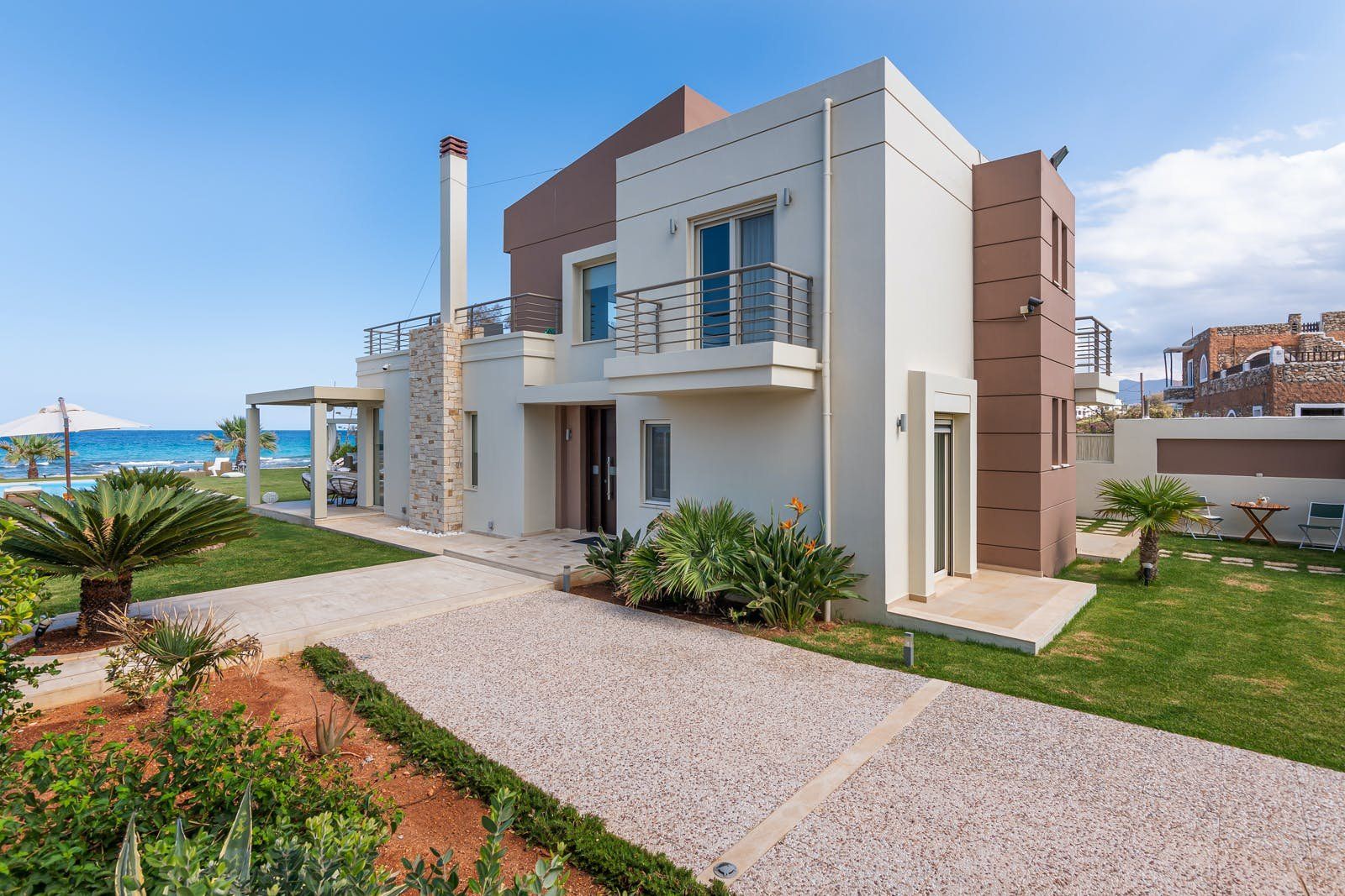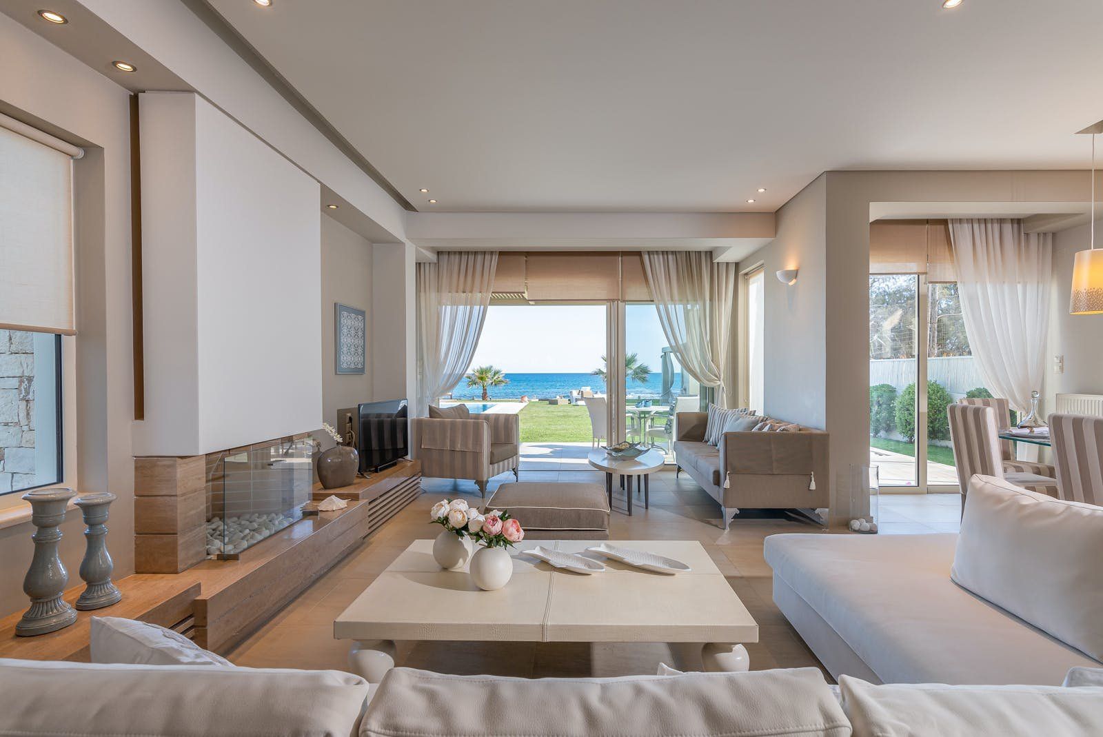 With beachfront access, a private pool and glorious views of the Mediterranean Sea, this three-level villa is an idyllic coastal retreat. As well as the beach being practically on your doorstep, you've got the pretty town of Hersonissos just a short drive away. When you're not down at the harbour, enjoy outdoor meals on one of your covered terraces, top up your tan on the sun loungers or sprawl out on the manicured lawn, before cooling off with a refreshing dip. Inside, plush furnishings, a contemporary fireplace and a mezzanine level make for sleek modern living – plus you have a rooftop terrace for morning coffees while taking in those gorgeous vistas.