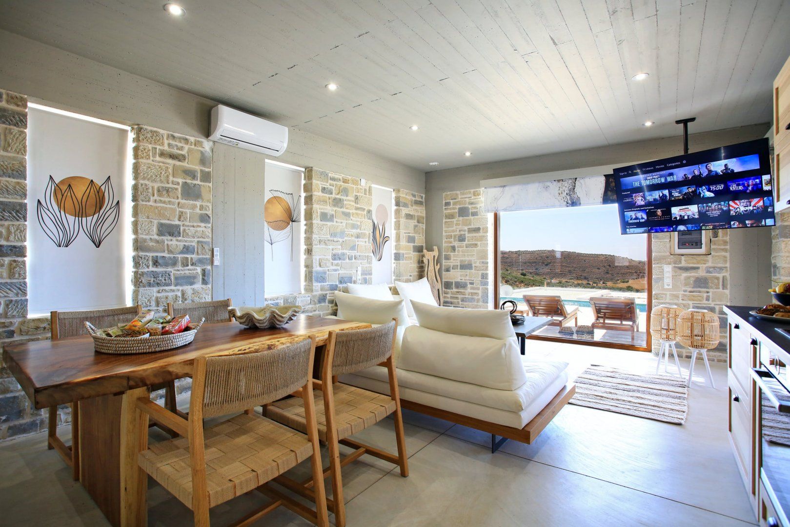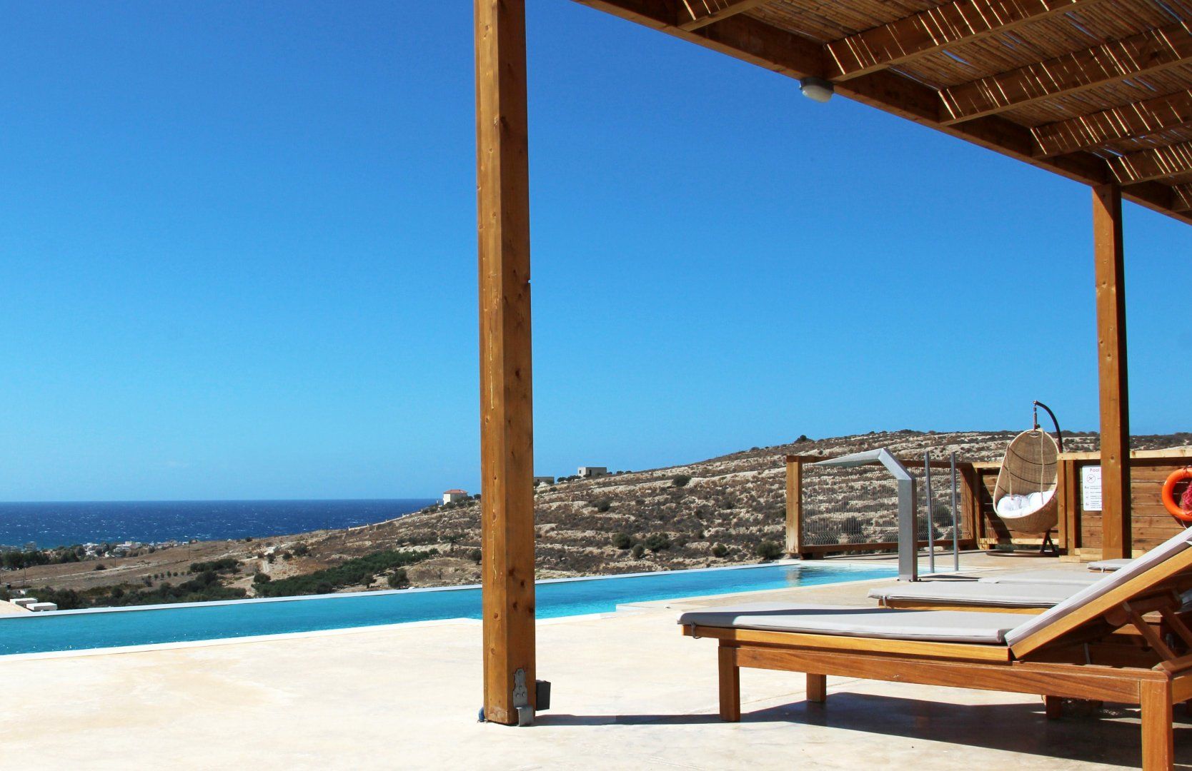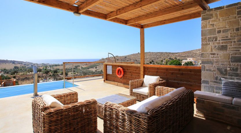 If waking up to blue skies and sea views is your idea of holiday heaven, this might be the villa for you. You’ll find this home perched high on a hilltop, offering unobstructed sea views alongside pretty countryside vistas. The outside space includes a covered terrace for dining, sun loungers and a lounge area, so there’s room for everyone to spread out – the villa isn’t the biggest but there’s plenty of space out in the sunshine. We recommend hiring a car so you can explore the nearby towns and beaches.