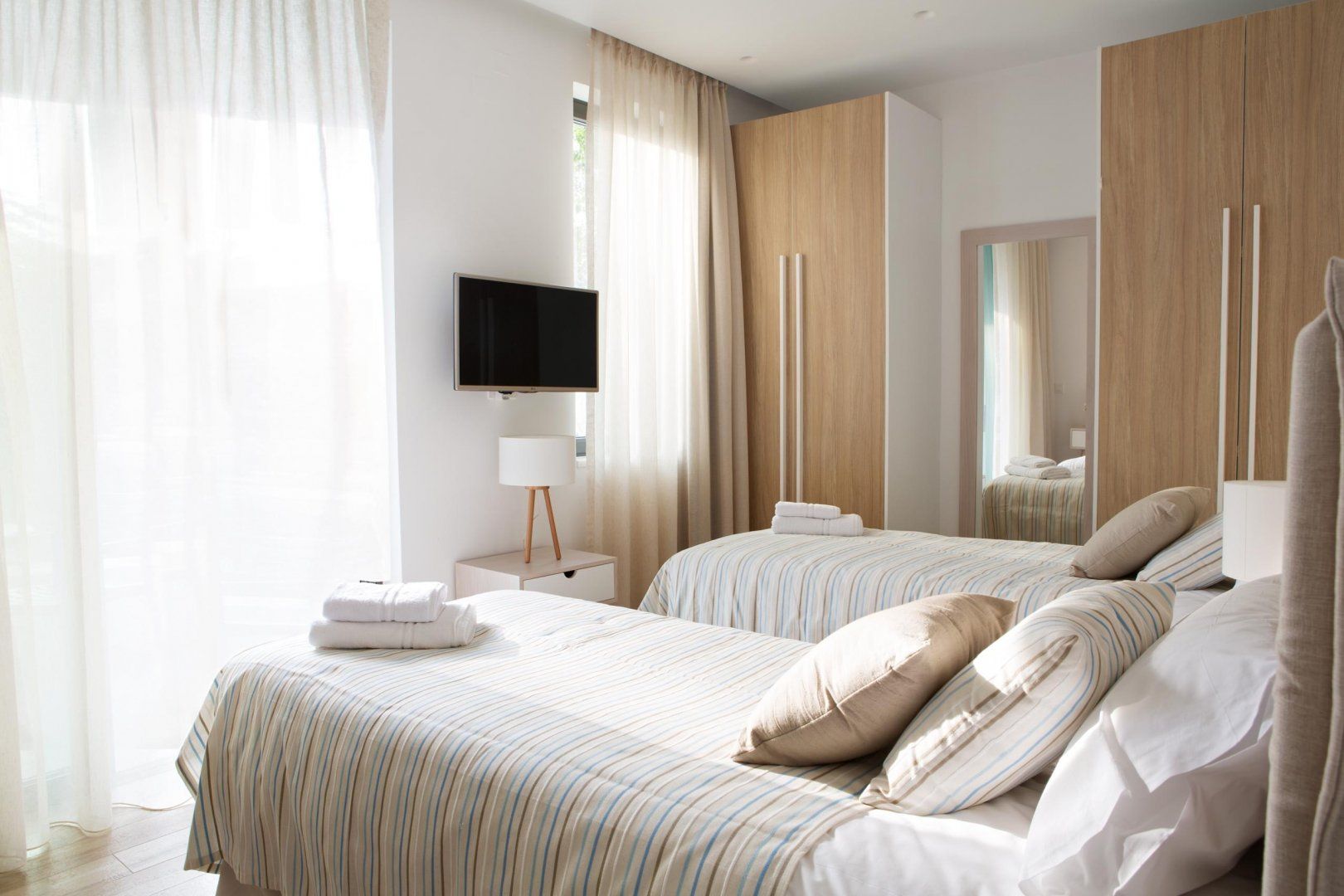 *The twin beds in one room can be arranged as a king if needed – let the host know