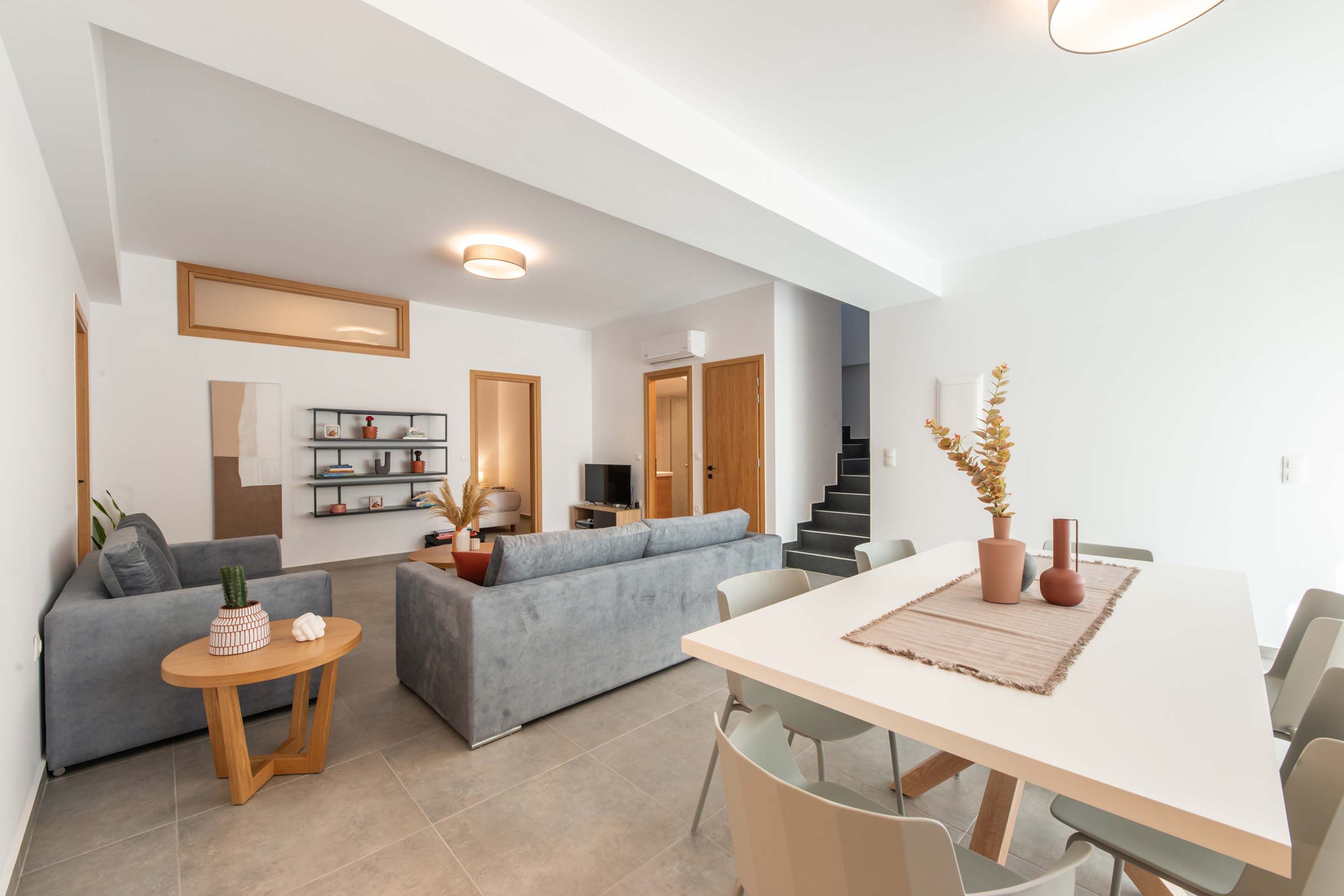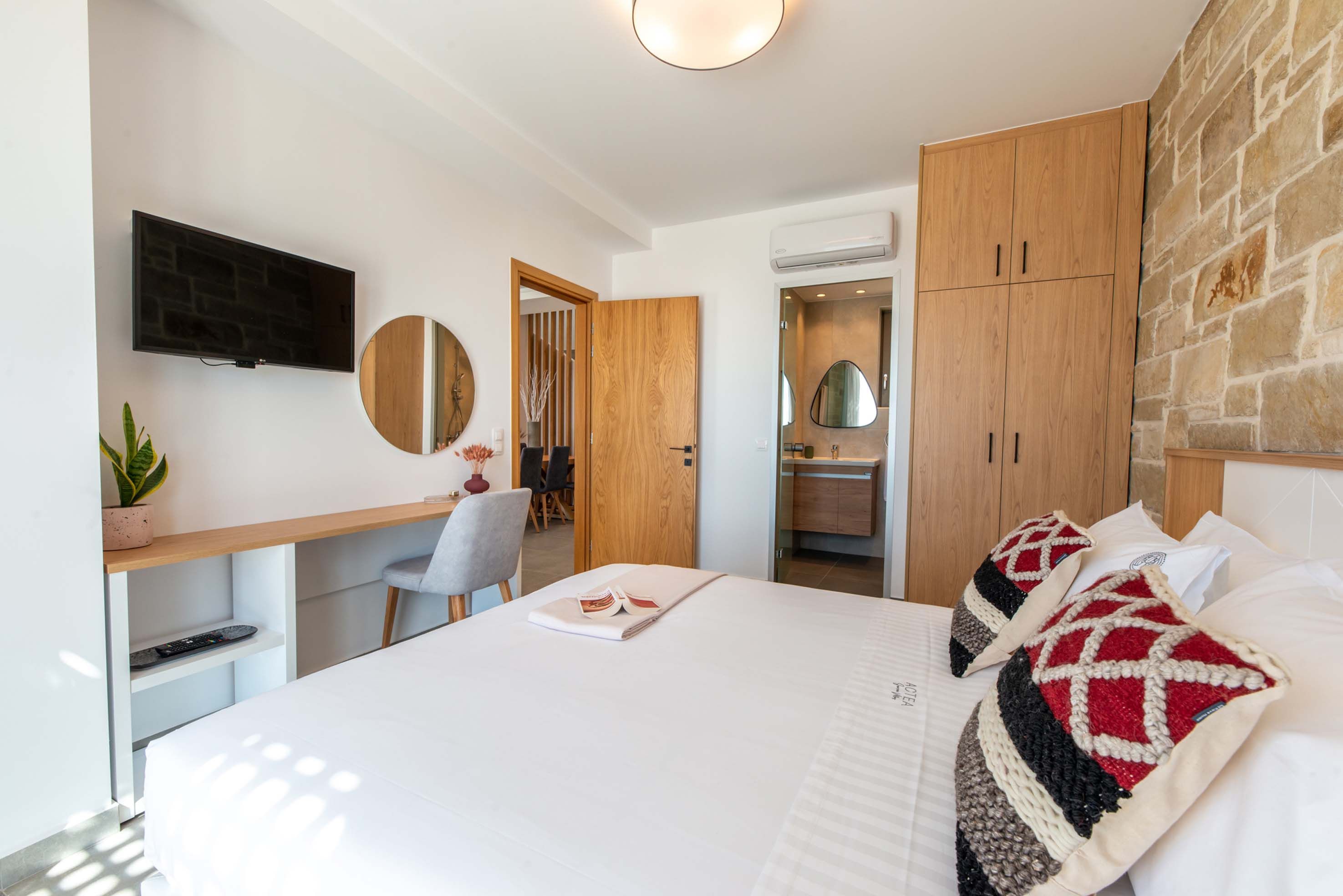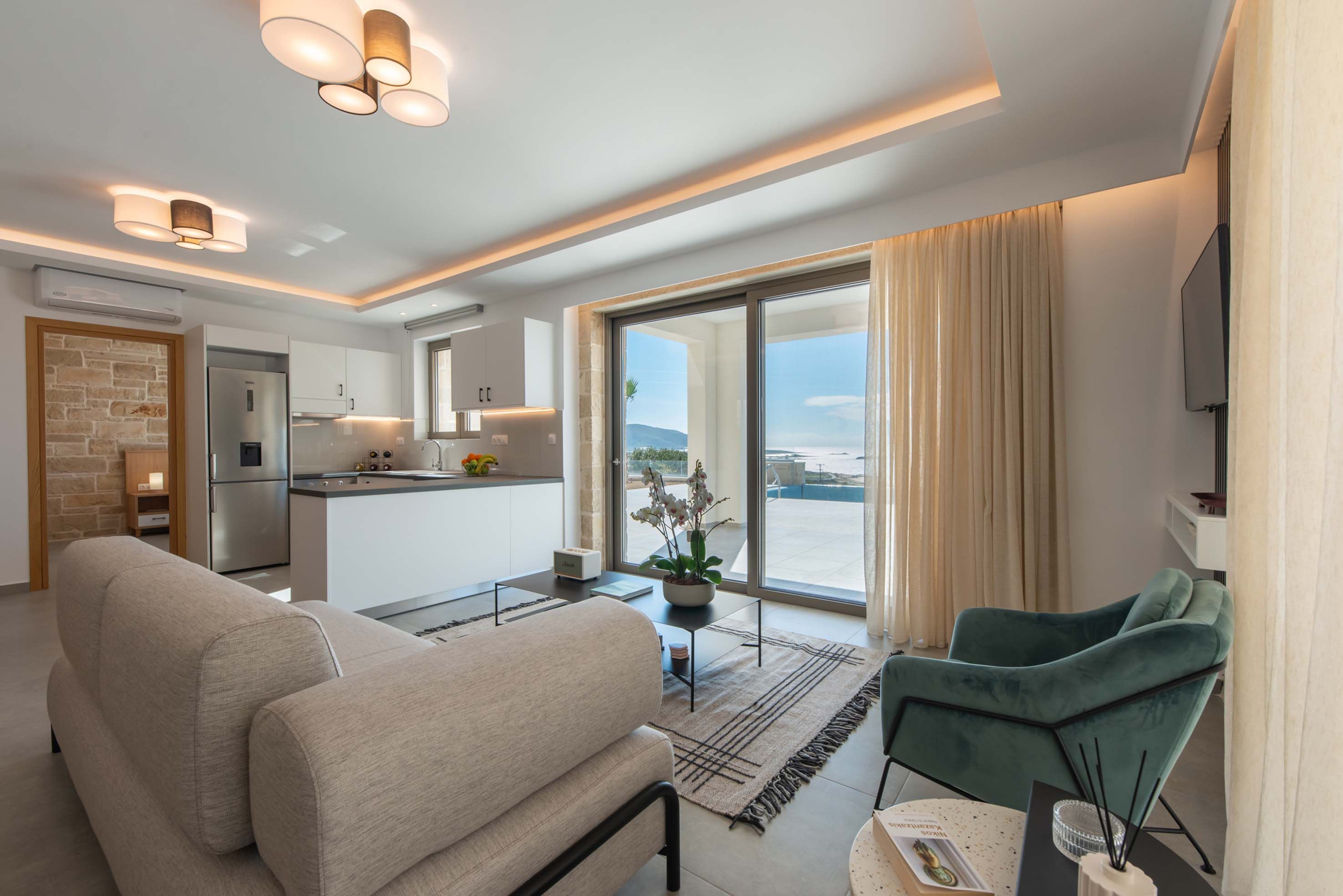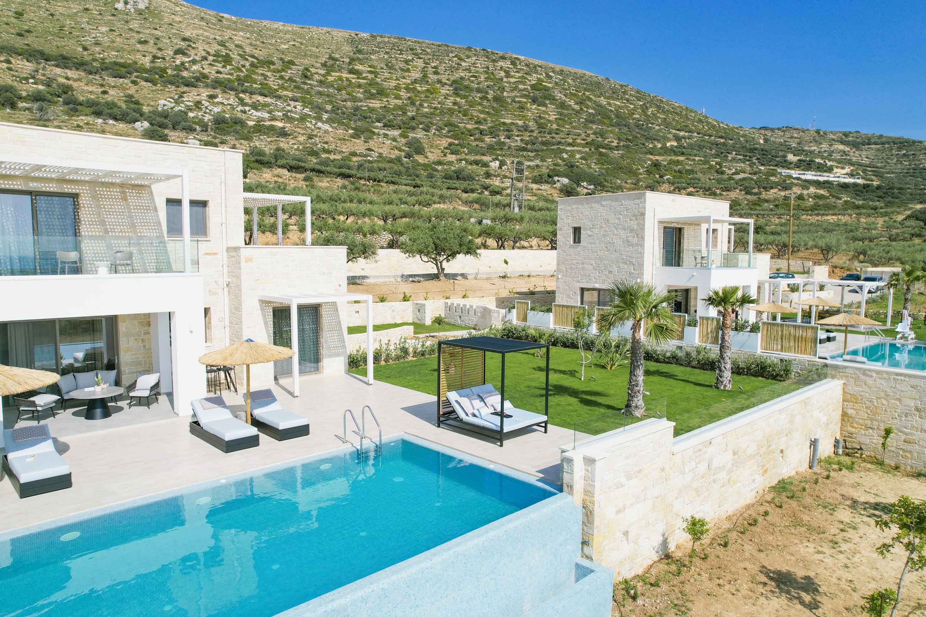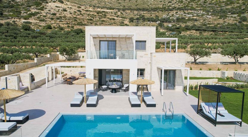 For a group getaway to Crete, this fabulous home is hard to beat. It consists of two neighbouring villas, each with its own pool, giving you double the space to spread out. Both houses have the same layout, which includes two kitchens, so there’s also plenty of room to make solo meals or cook as a crowd. If you’re looking for a flexible option that can comfortably host friends and family, this is a great pick. And the location isn’t bad either –close to the blissful beaches of Falasarna, with stunning sea views from almost every angle.