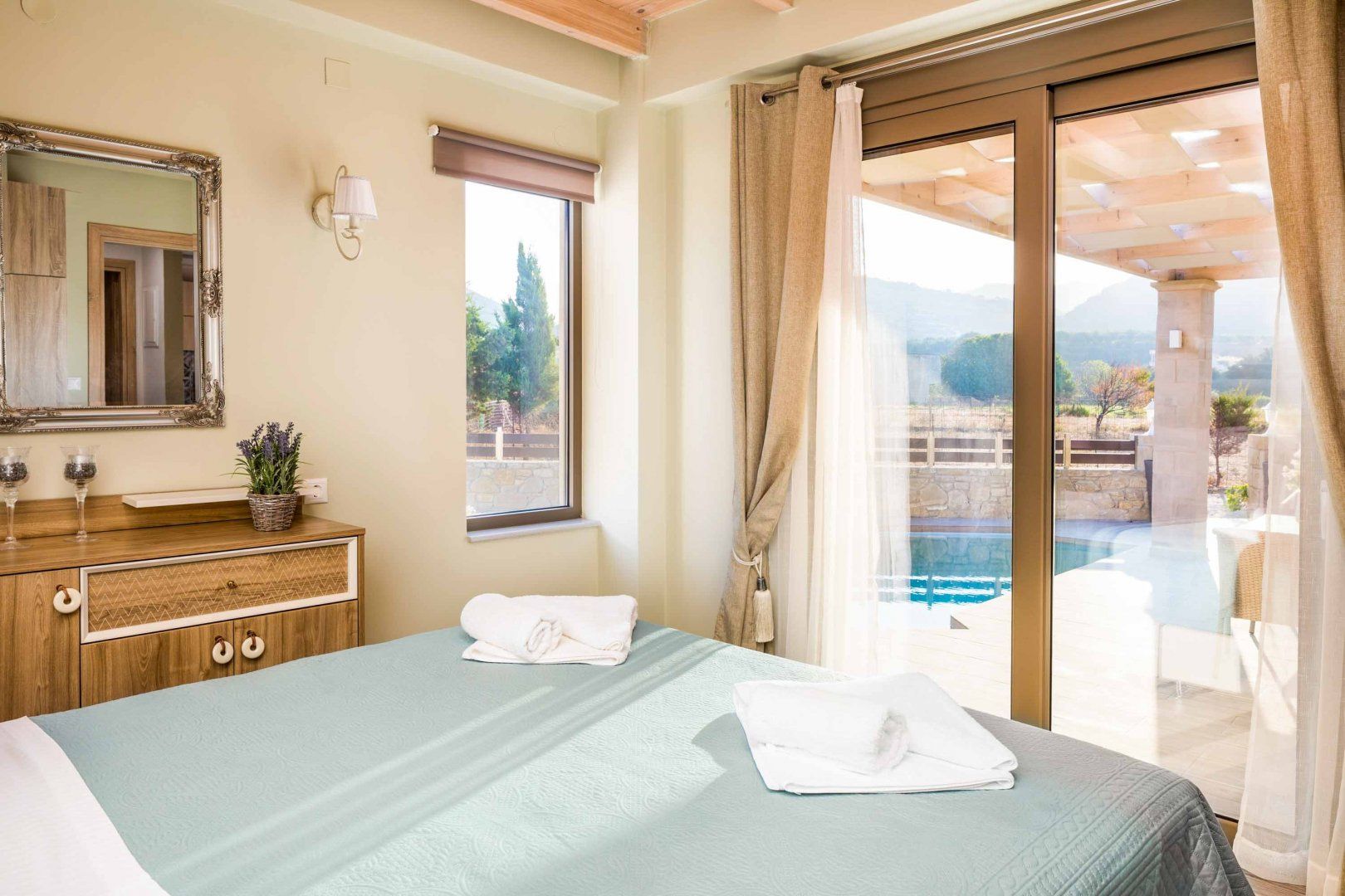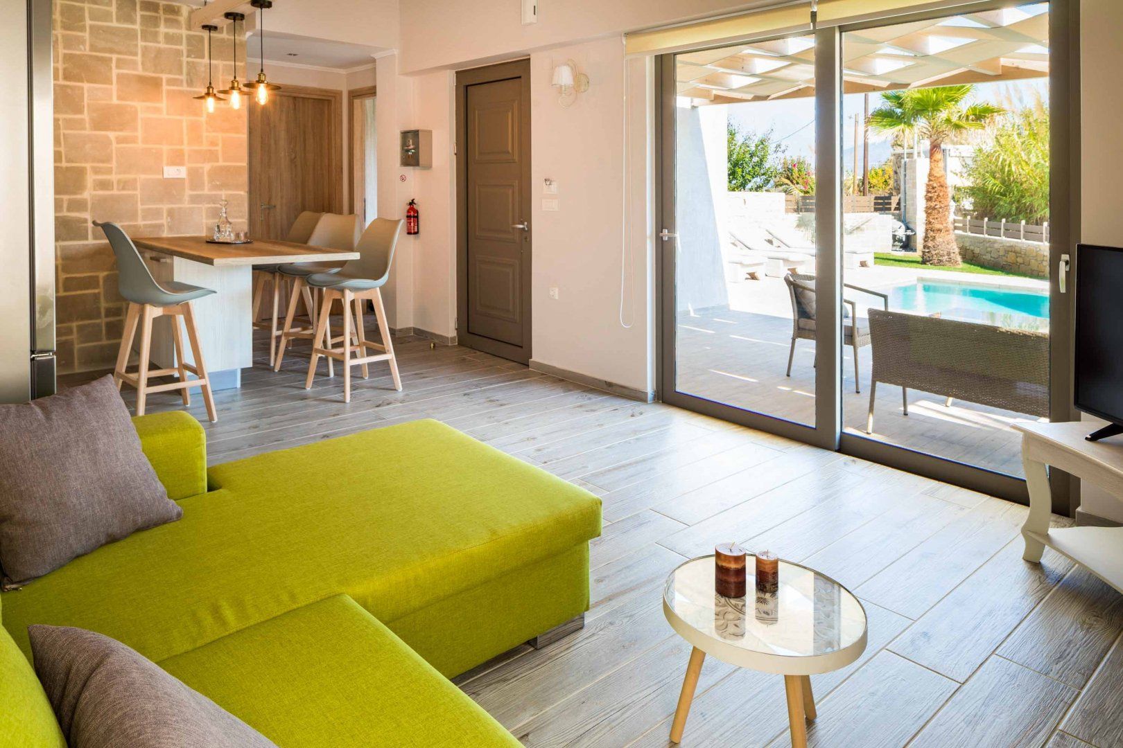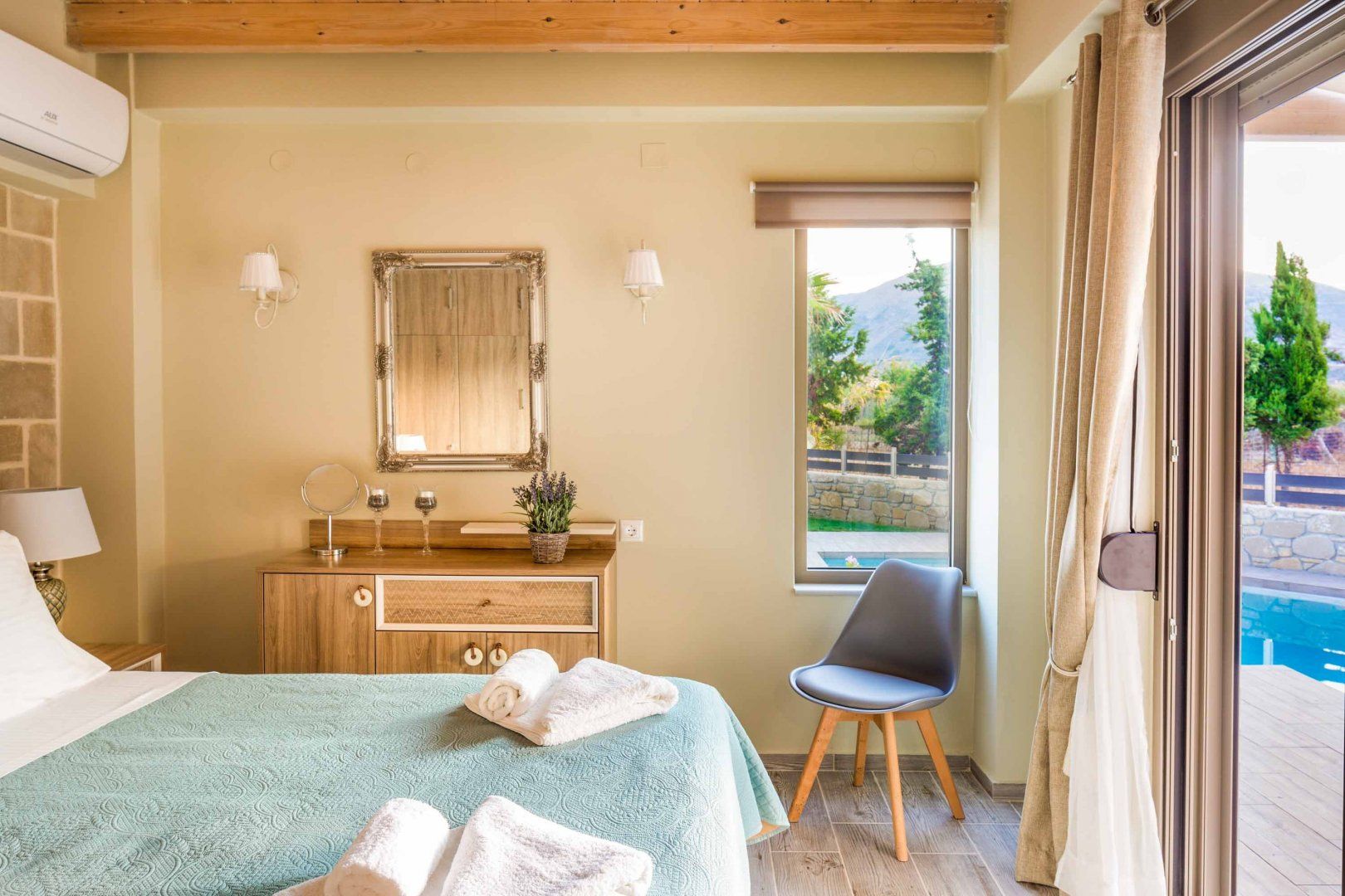 Sitting just 200 metres from the beach and from a plethora of waterfront restaurants, this villa offers stunning scenery and plenty of seaside fun along the Cretan coast. A private pool and an alfresco dining set provide ample opportunity for outdoor leisure, and the home’s single-level layout is ideal for multi-generational families. While the functional decor isn’t the most inspiring, the villa’s mountainous backdrop more than makes up for it. And with Kissamosjust 6 kilometres away and Chania city a thirty-minute drive, there’s plenty to enjoy in the way of sightseeing and exploring nearby.