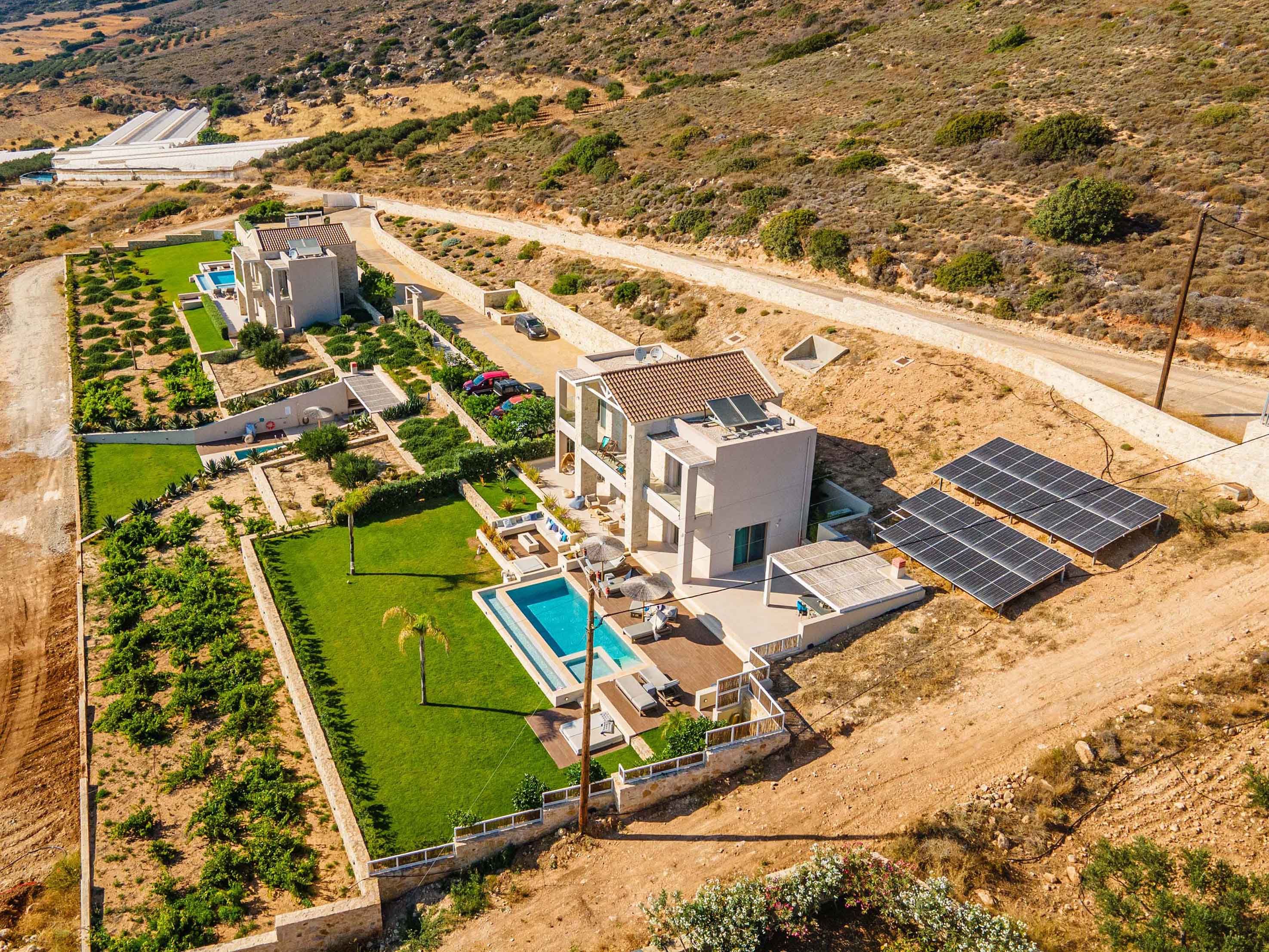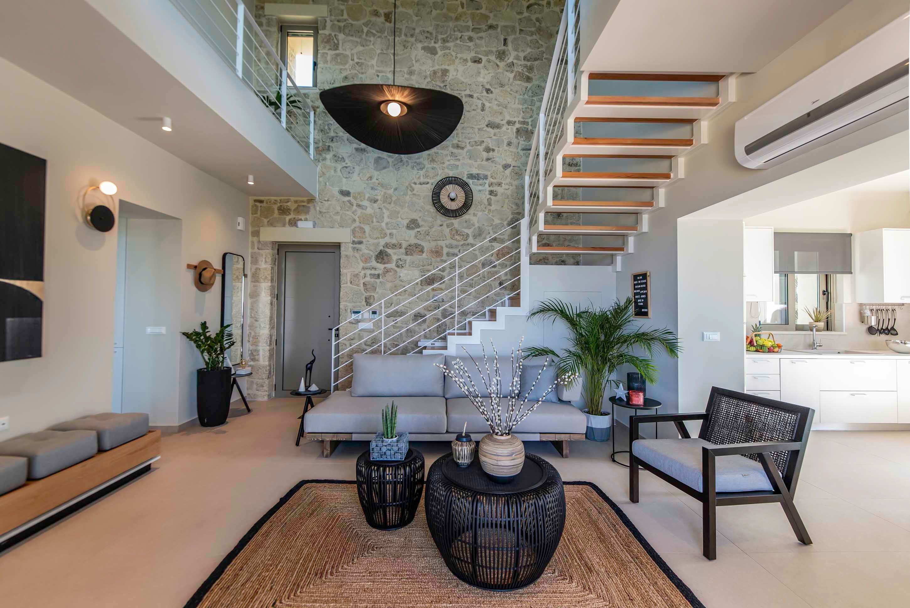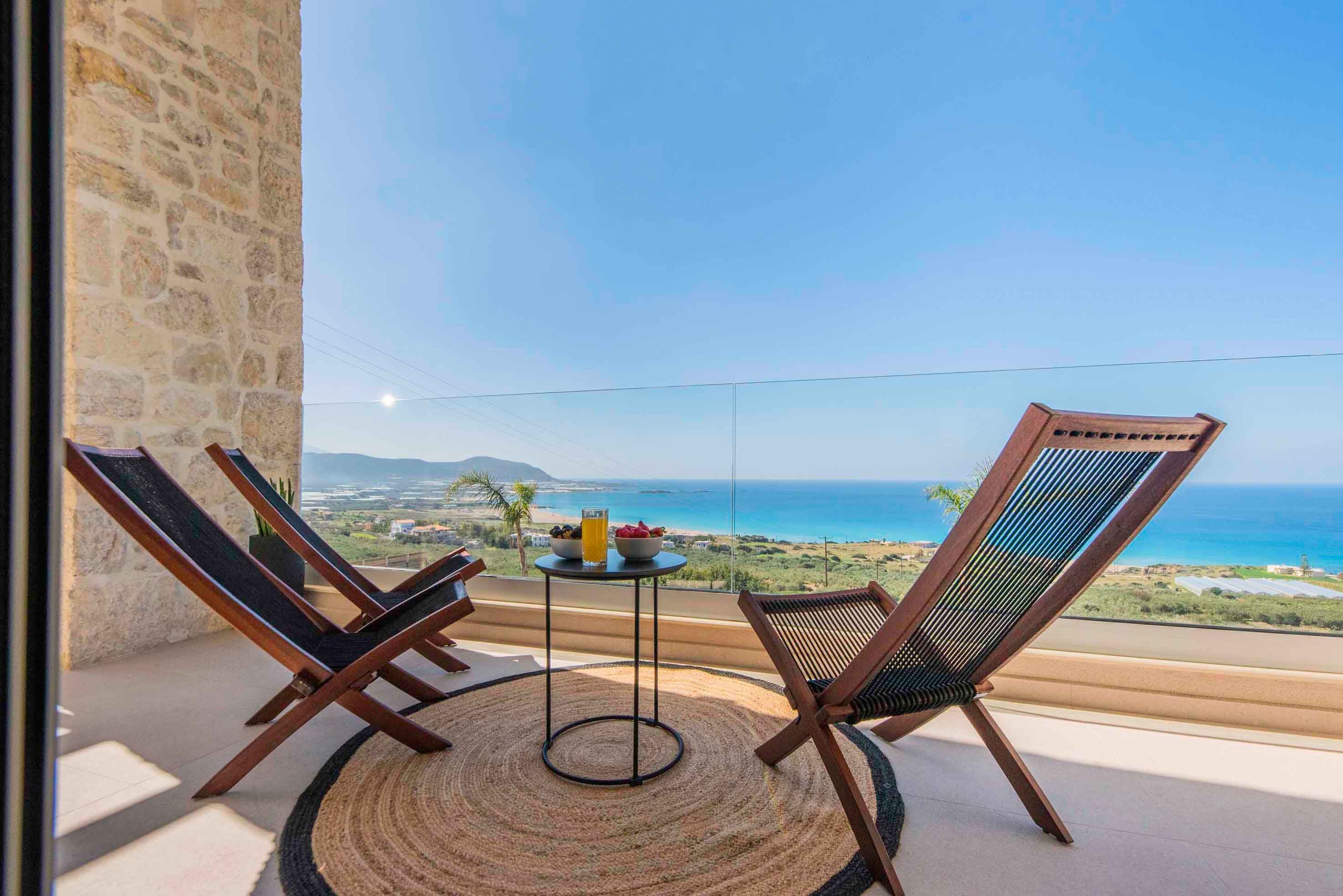Did someone say sea views? Because this hillside hideaway in Falassarna delivers them in spades. From sunrise coffee to sunset cocktails, the Cretan Sea takes centre stage – best enjoyed from the terrace, stretched out by the pool or through the wide glass doors that flood the living space with light. Inside, it’s sleek and contemporary, with an open-plan kitchen and lounge designed for easy gathering. Two ensuite bedrooms sit upstairs, while a third on the ground floor offers flexibility for families or friends. Days drift between beach trips and poolside lounging, and evenings are made for unhurried dinners under the pergola as the sky turns molten gold. And with Falassarna’s sandy shore just 800 metres away, the sea is always within easy reach.