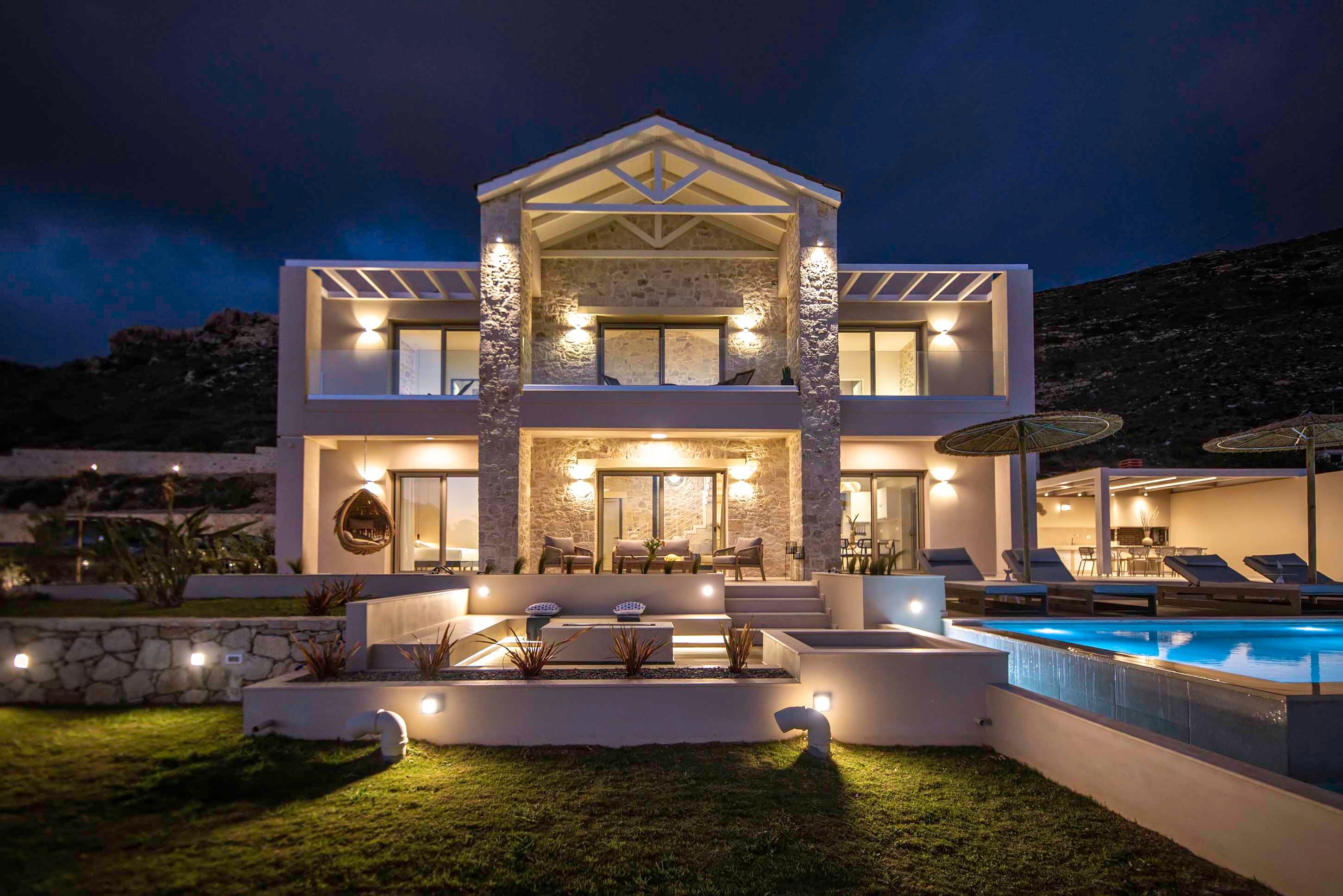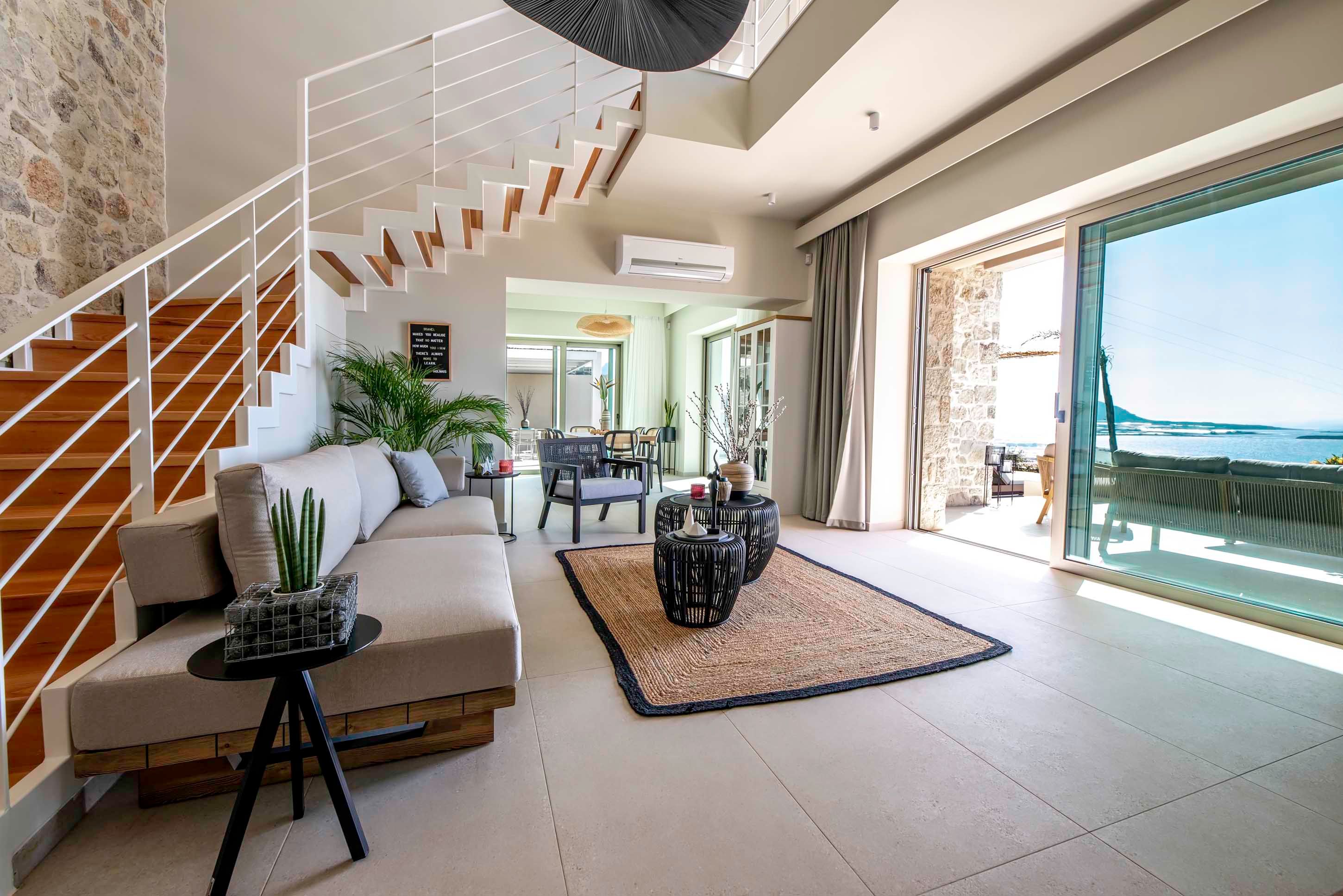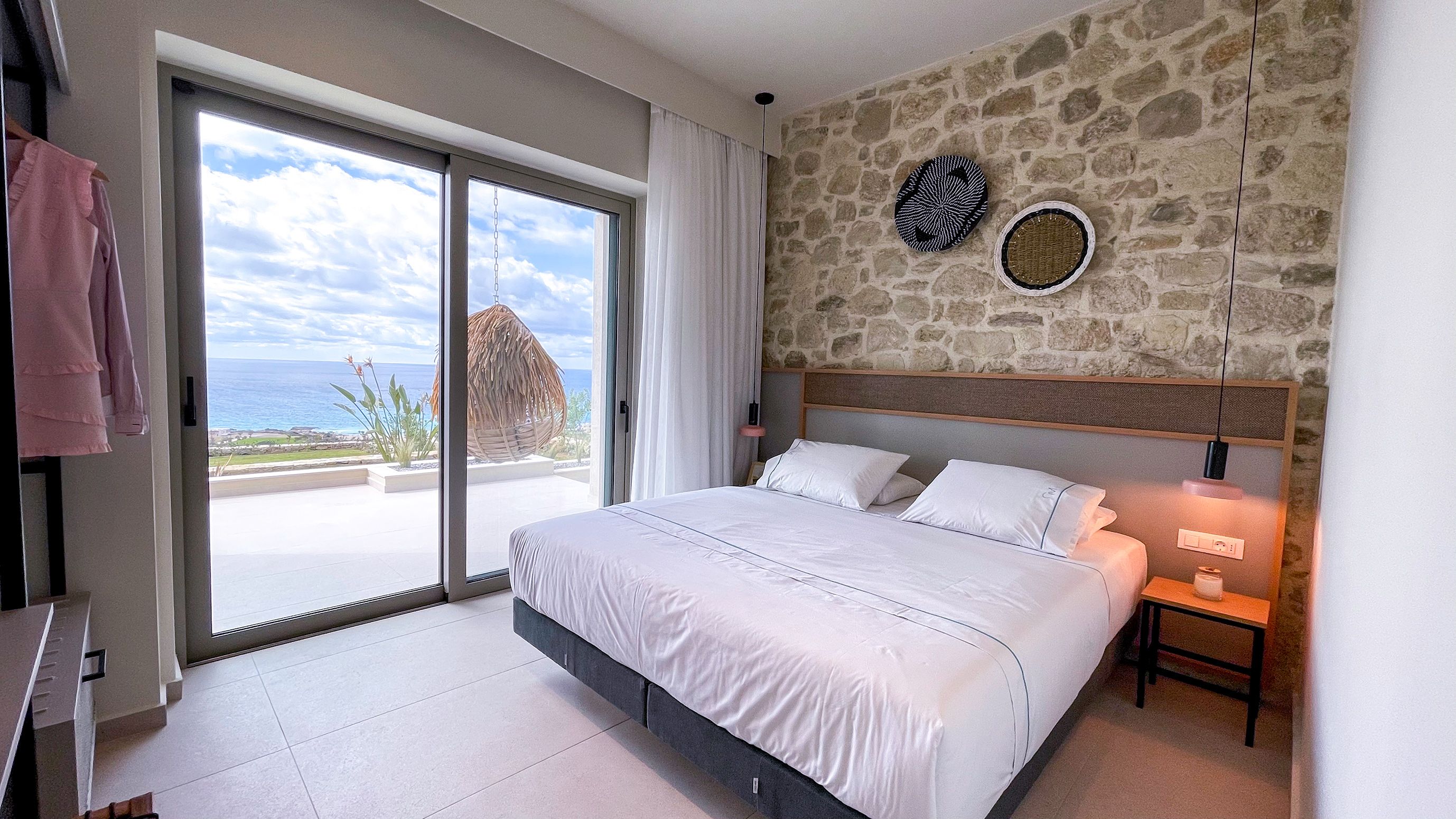 Did someone say sea views? Because this hillside hideaway in Falassarna delivers them in spades. From sunrise coffee to sunset cocktails, the Cretan Sea takes centre stage – best enjoyed from the terrace, stretched out by the pool or through the wide glass doors that flood the living space with light. Inside, it’s sleek and contemporary, with an open-plan kitchen and lounge designed for easy gathering. Two ensuite bedrooms sit upstairs, while a third on the ground floor offers flexibility for families or friends. Days drift between beach trips and poolside lounging, and evenings are made for unhurried dinners under the pergola as the sky turns molten gold. And with Falassarna’s sandy shore just 800 metres away, the sea is always within easy reach.