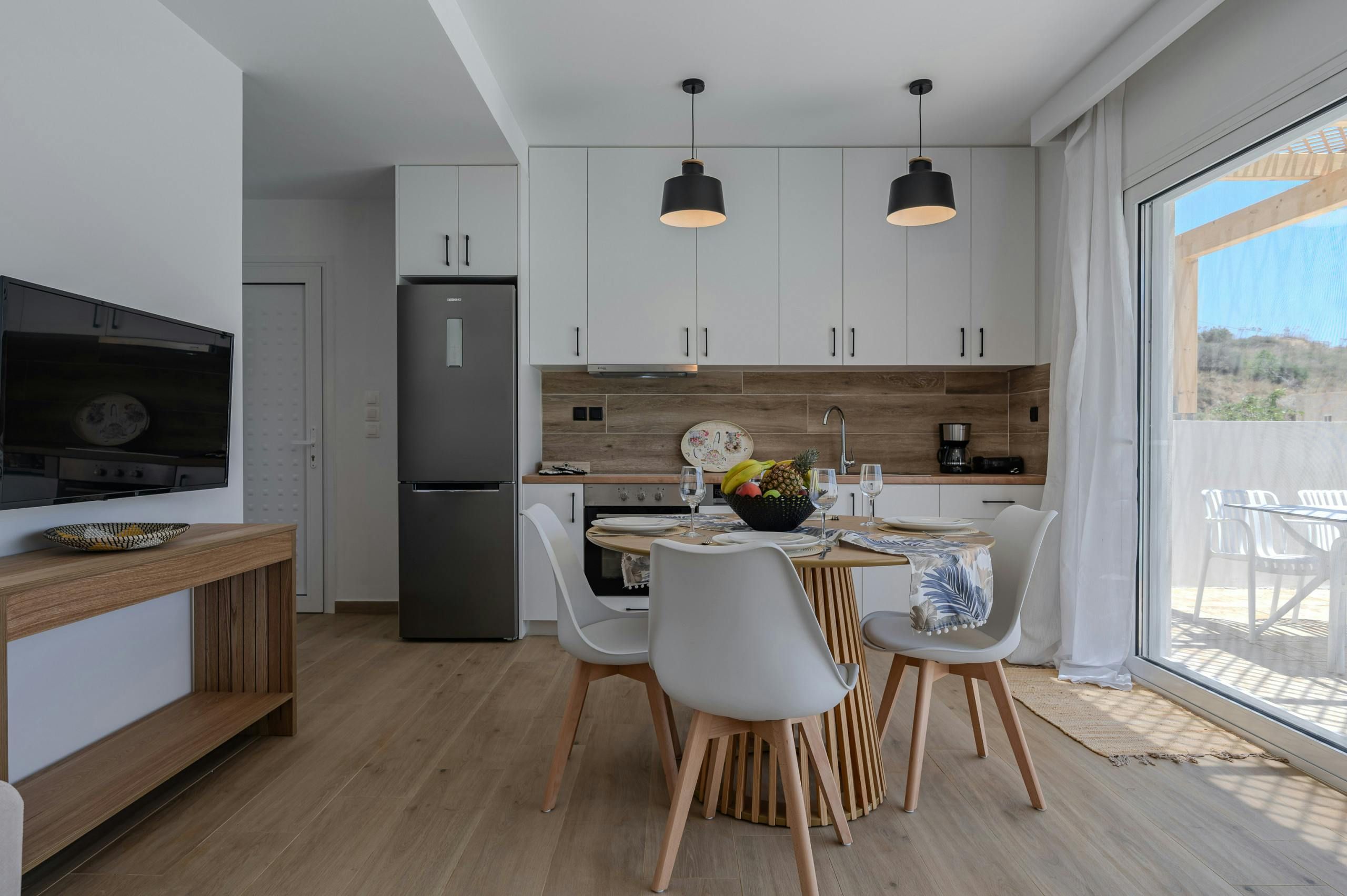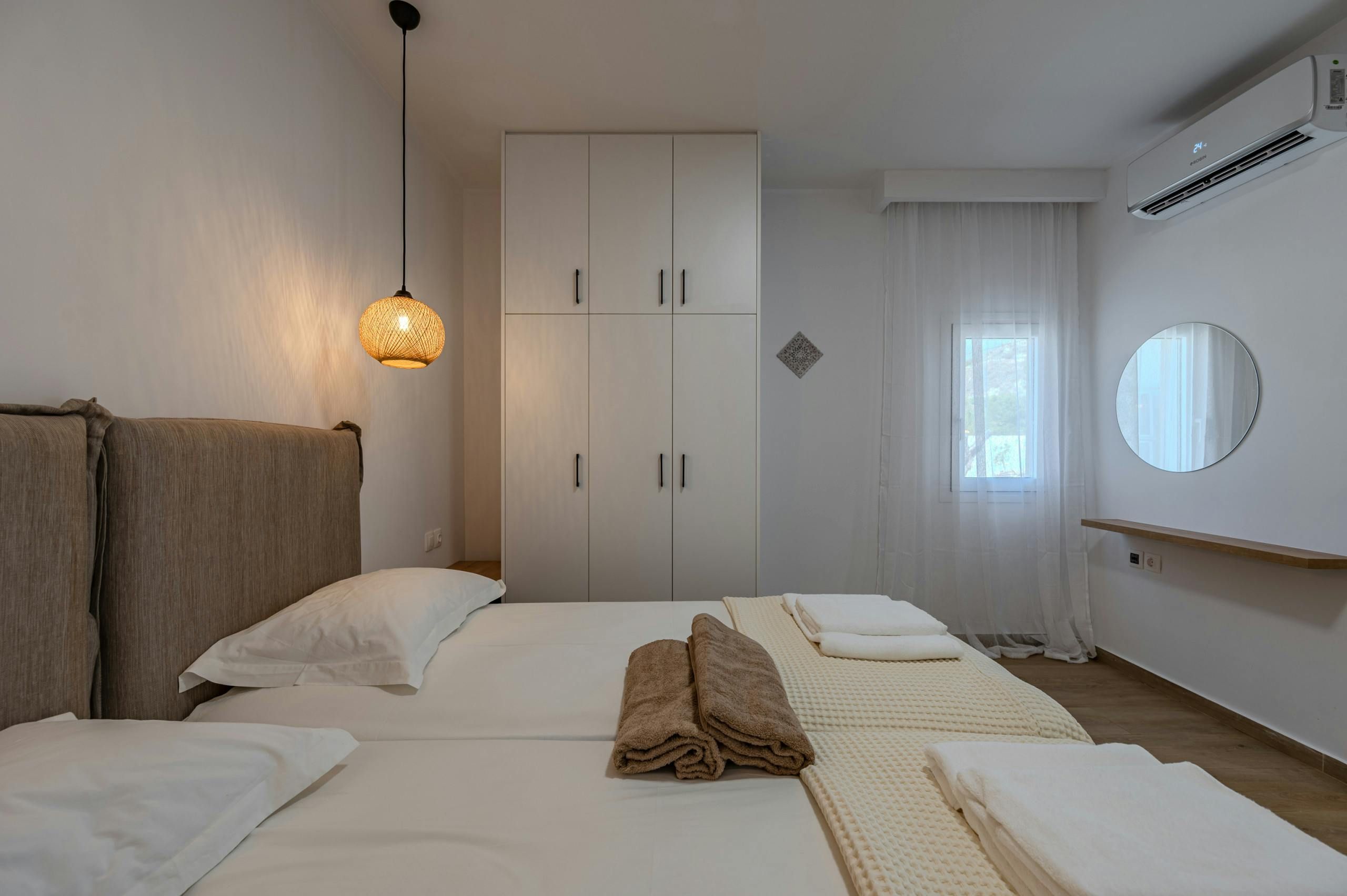 If sand and sea are a priority, look no further than this villa, located just 250 metres from Damnoni Beach. It’s also within walking distance of a taverna – handy for when all that sunbathing works up an appetite. If you’re keen to explore the wider area, we recommend hiring a car for ease of getting around. The home itself is fuss-free yet comfortable, with a terrace for dining or relaxing and a balcony for watching the sunset. The private pool is a particular highlight, especially during the height of summer.