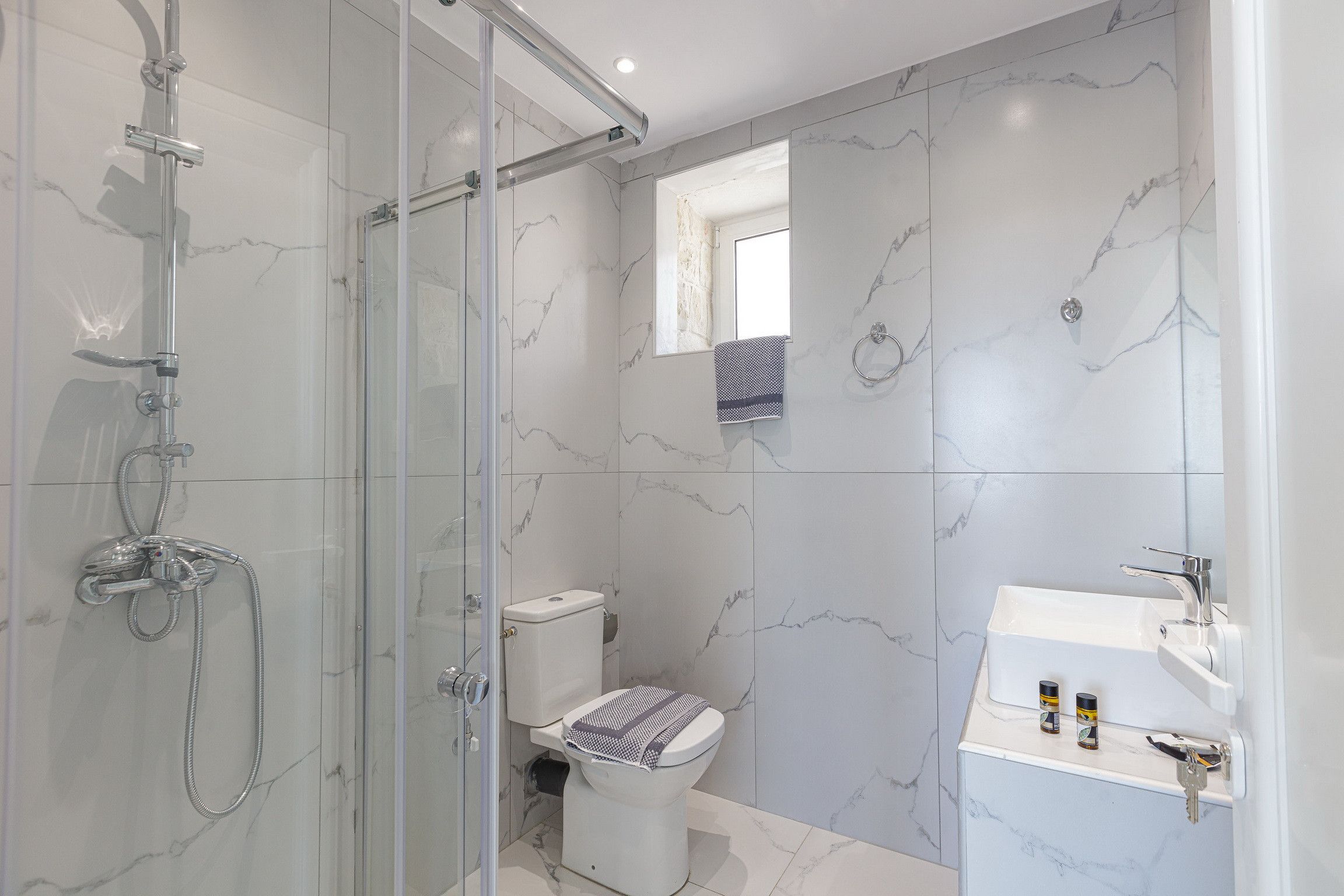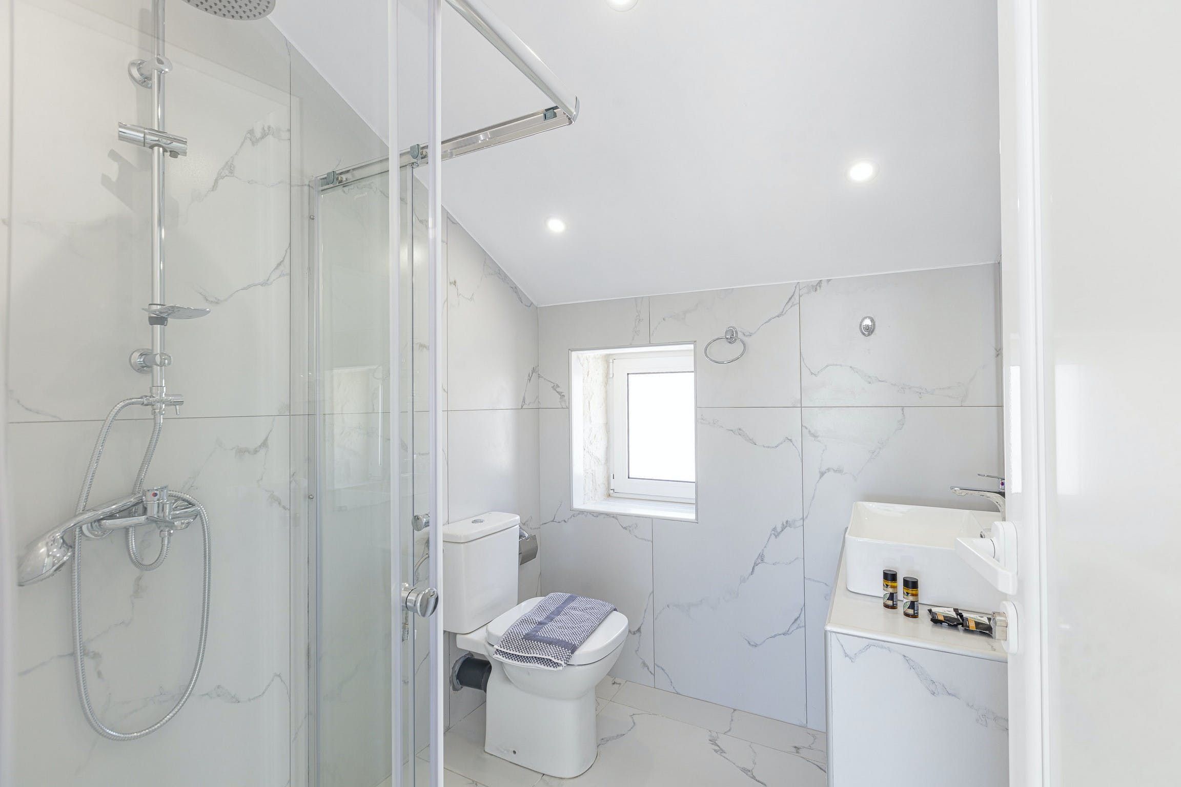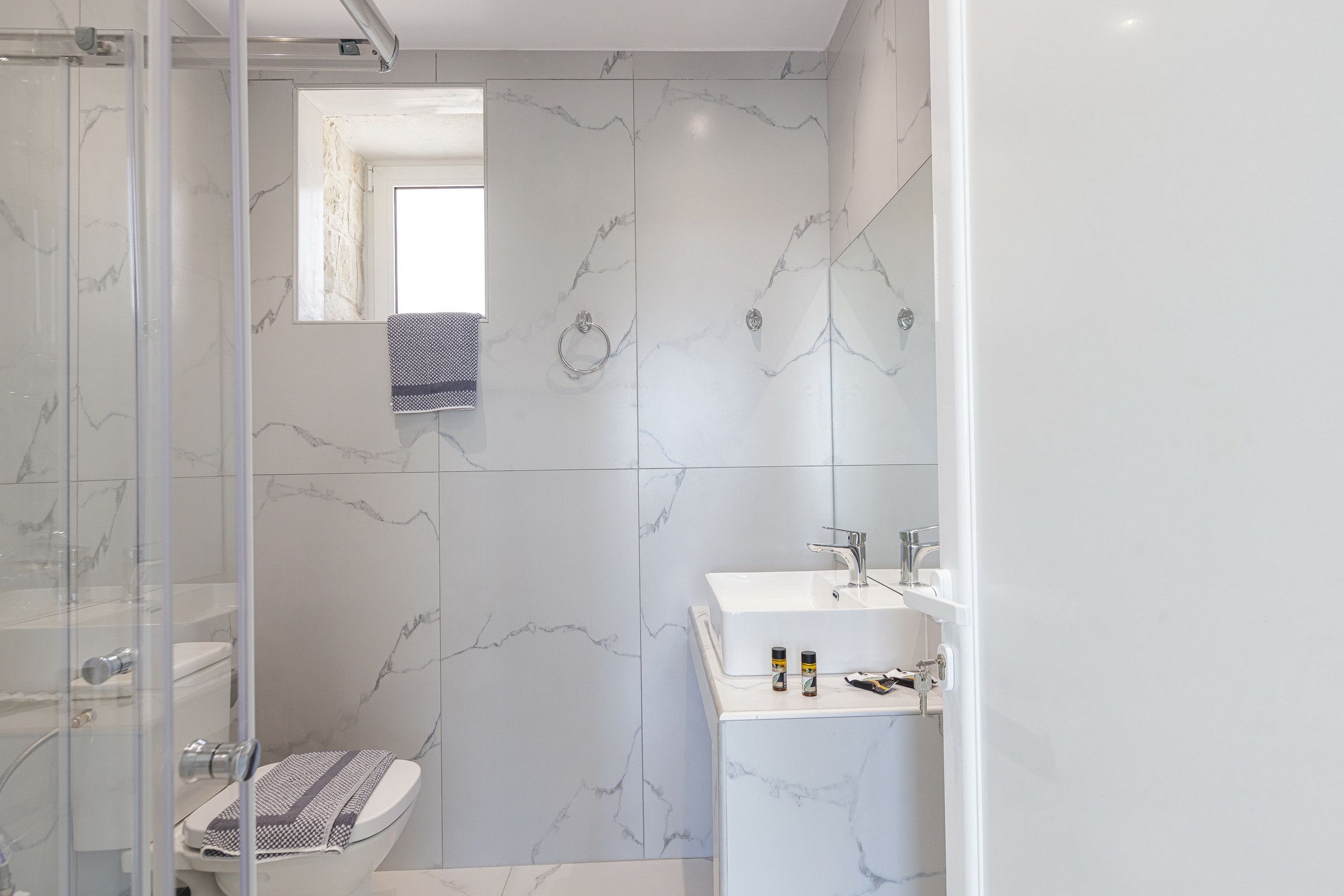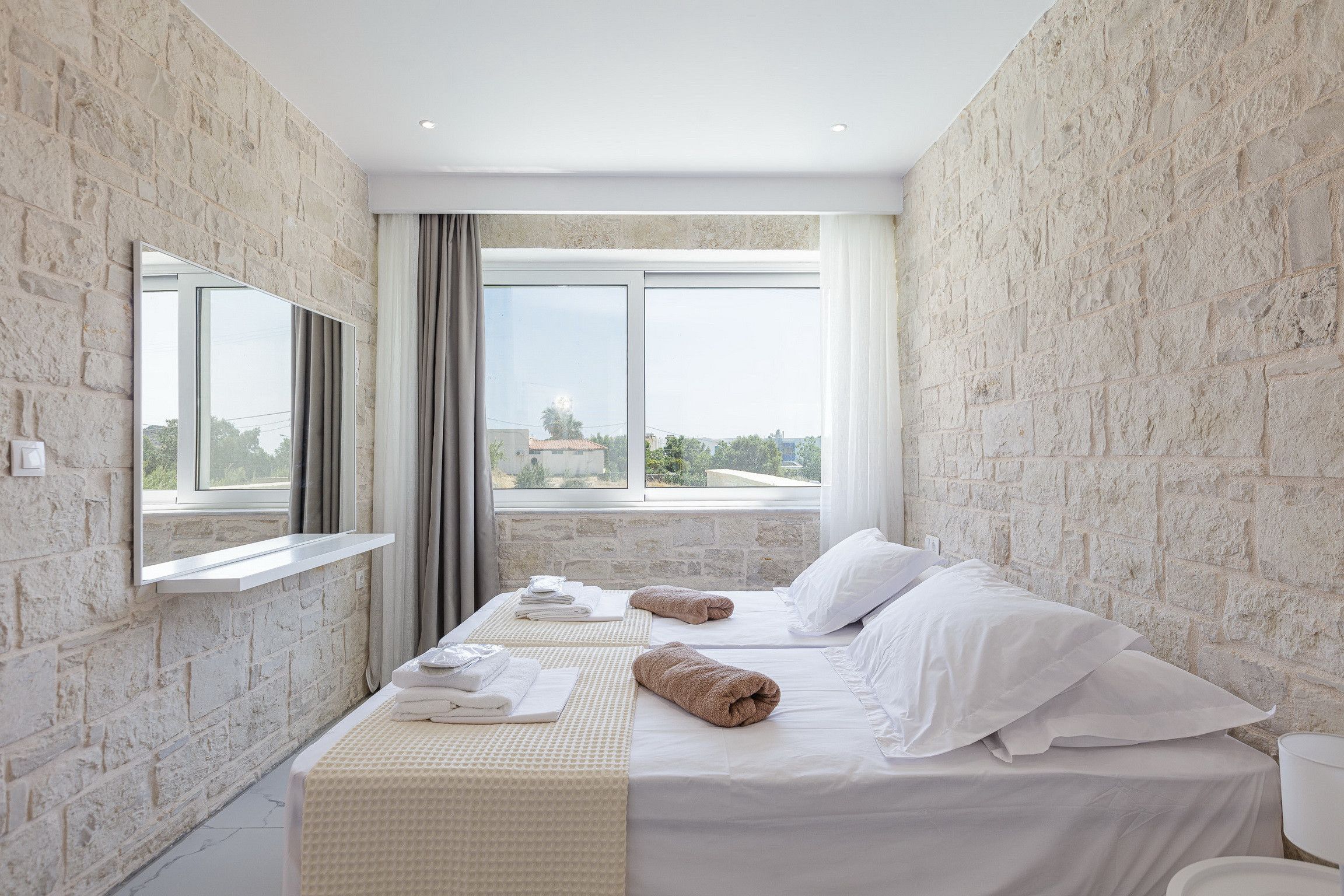Stepping inside, it's a seamless blend of traditional design, modern styling and muted tones that creates a calm and comfortable place to call home. We love the stone walls and white-painted timber ceilings, while the marble flooring and en-suite bathrooms adds that extra level of luxury.
