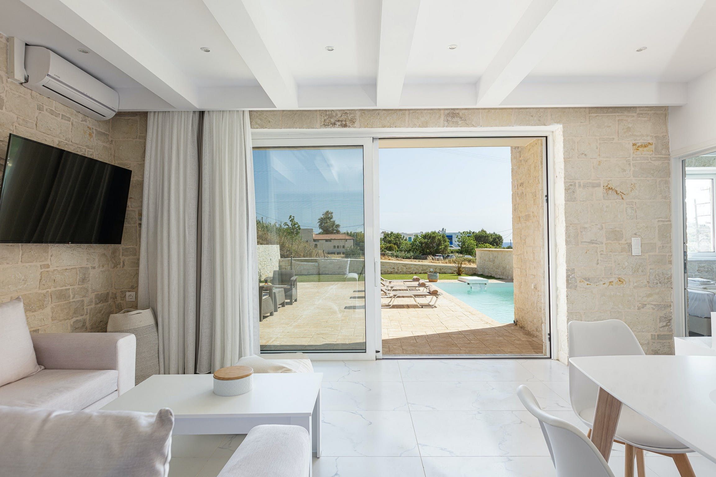 Looking to be close to the beach? Look no further. Secluded yet conveniently placed, this family-size villa is a two-minute walk from the pristine white sands of Damnoni beach.