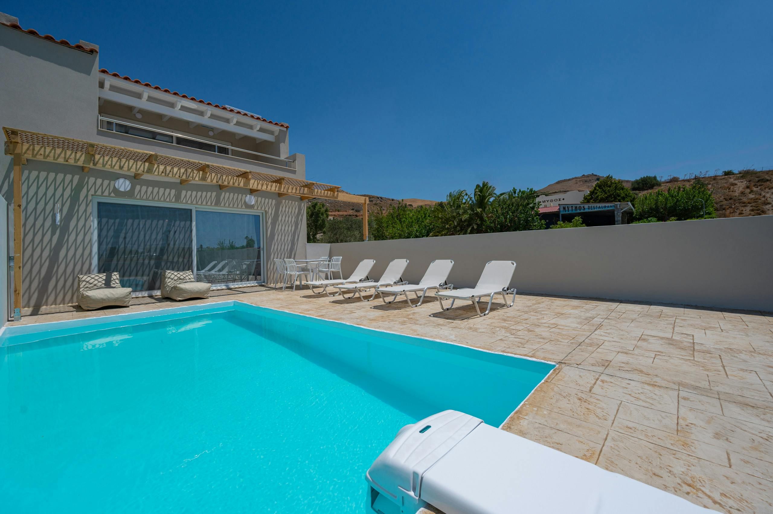 Located in the Damnoni area of Crete, this family-friendly villa is just a few minutes’ walk from the beach. You’ll be able to glimpse sea views from the private balcony and admire the surrounding mountains from the garden. Plus you’ll have a private pool to enjoy. Inside is readymade for a family of four, with a lounge area, dining table, and small but fully-equipped kitchen. If you fancy eating out, you’ll find a choice of local restaurants within walking distance, and for daytrips, vibrant Plakias is a 3-kilometre drive away.