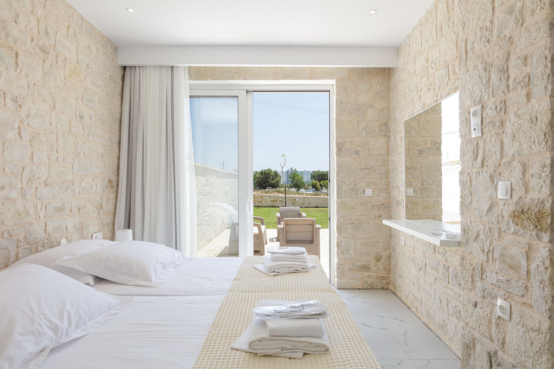 Set aside a day or two to explore the local highlights – the powdery sands and whistling waves of Damnoni Beach are moments away or, if you’re seeking cultural delights, make the short drive to Kouroupa where you’ll find the White Mountains and enchanting waterfalls.