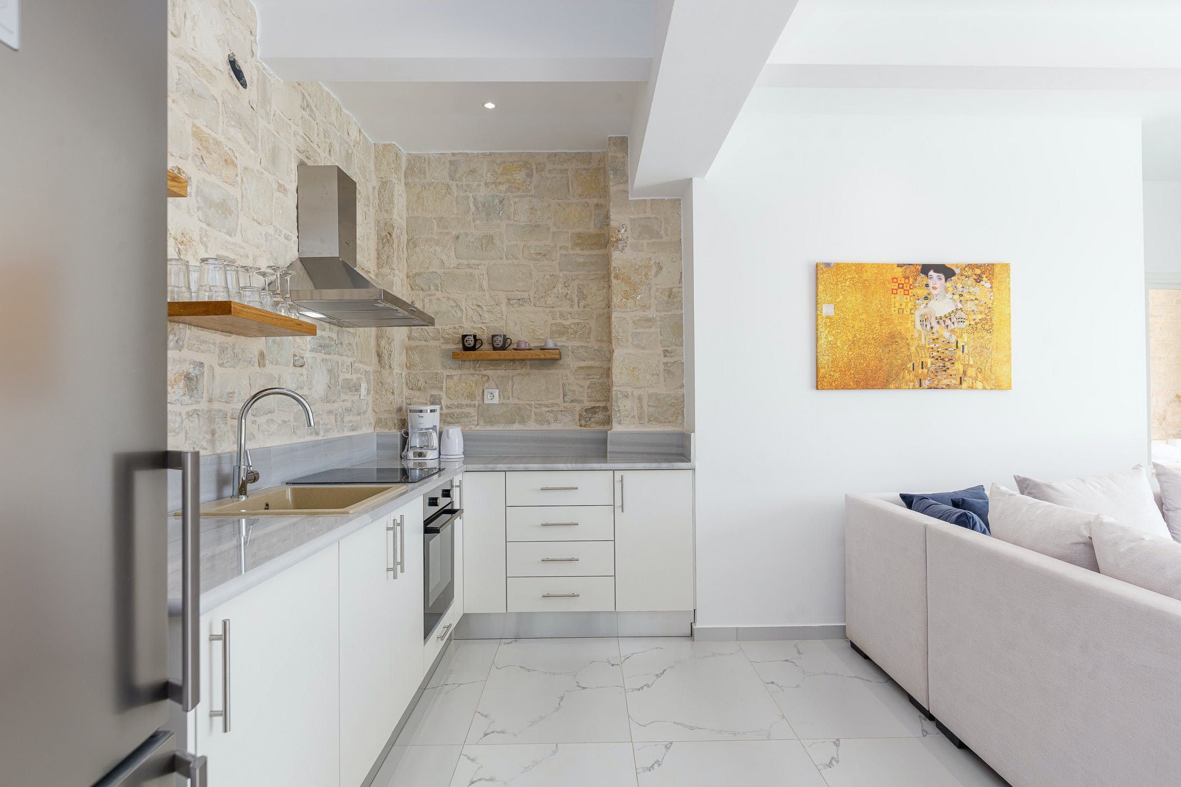 Mornings call for freshly-brewed coffee on the balcony whilst taking in the Mediterranean panoramas, or practice your sun salutations with the early morning sun warming you into your poses. Head to the sleek kitchen to prepare a breakfast spread of yoghurt and local fruit before heading to your outside oasis.