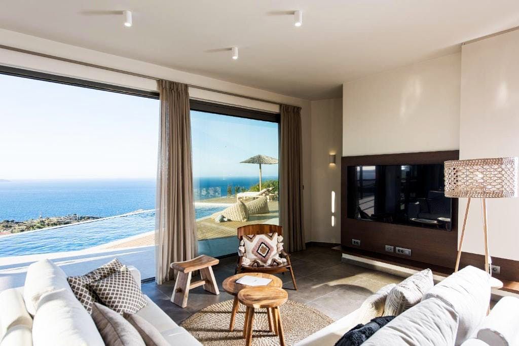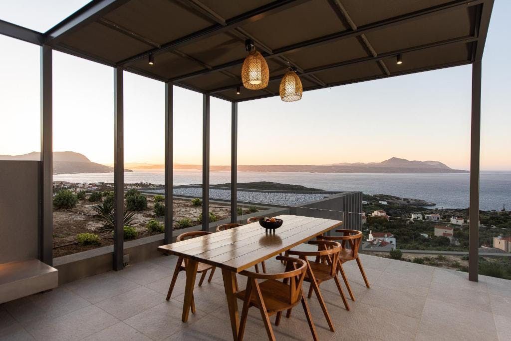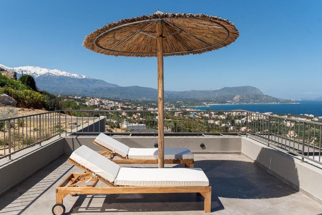 From the private infinity pool to the open-plan living area, this villa puts its showstopping Aegean vistas front and centre. Inside, floor-to-ceiling windows flood each room with natural light and show off the scenery. Even the bedrooms have a glimpse of the blue horizon. Of course, the terrace is the best spot to take advantage of the views, with its array of lounge chairs perfect for sunbathing and a covered terrace ideal for sunset dinners. If you can tear yourself away, the nearest beach is just 700 metres away. You're also not far from Plaka and Almyrida – about a five-minute drive – while Chania makes a good option for a day trip.