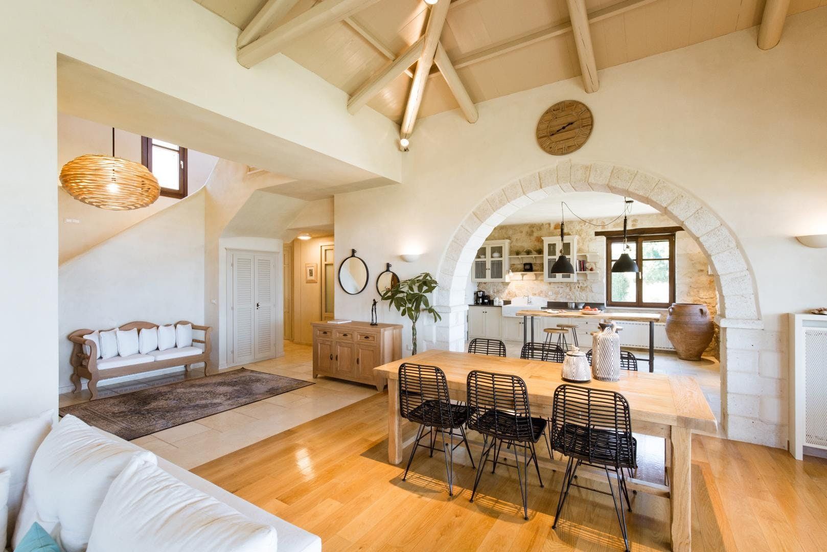 Stylish and warm, this home makes for a splendid base for an adventure on Crete. We love the modern, simple styling of the villa, which allows for the high ceilings and exquisite details to take centre stage. It’s a calm and relaxing place to call home, with everything you might need for a sunny escape.