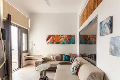 This lovely one-bedroom apartment, part of a residential building in which there are other apartments to rent (perfect if you’re travelling as part of a larger group), offers a fabulous beachfront location. Close to the charming Cretan village of Koutsourás, you will find lively tavernas and authentic local shops within walking distance. Spend sun-soaked days loafing by the shared swimming pool, or stroll across the soft sand and make use of the communal sun loungers, provided for the sole use of the building's guests. Your host is able to arrange a variety of extras for you during your stay, including private chefs and day trips into the captivating local area, so you'll never be short of things to do here.