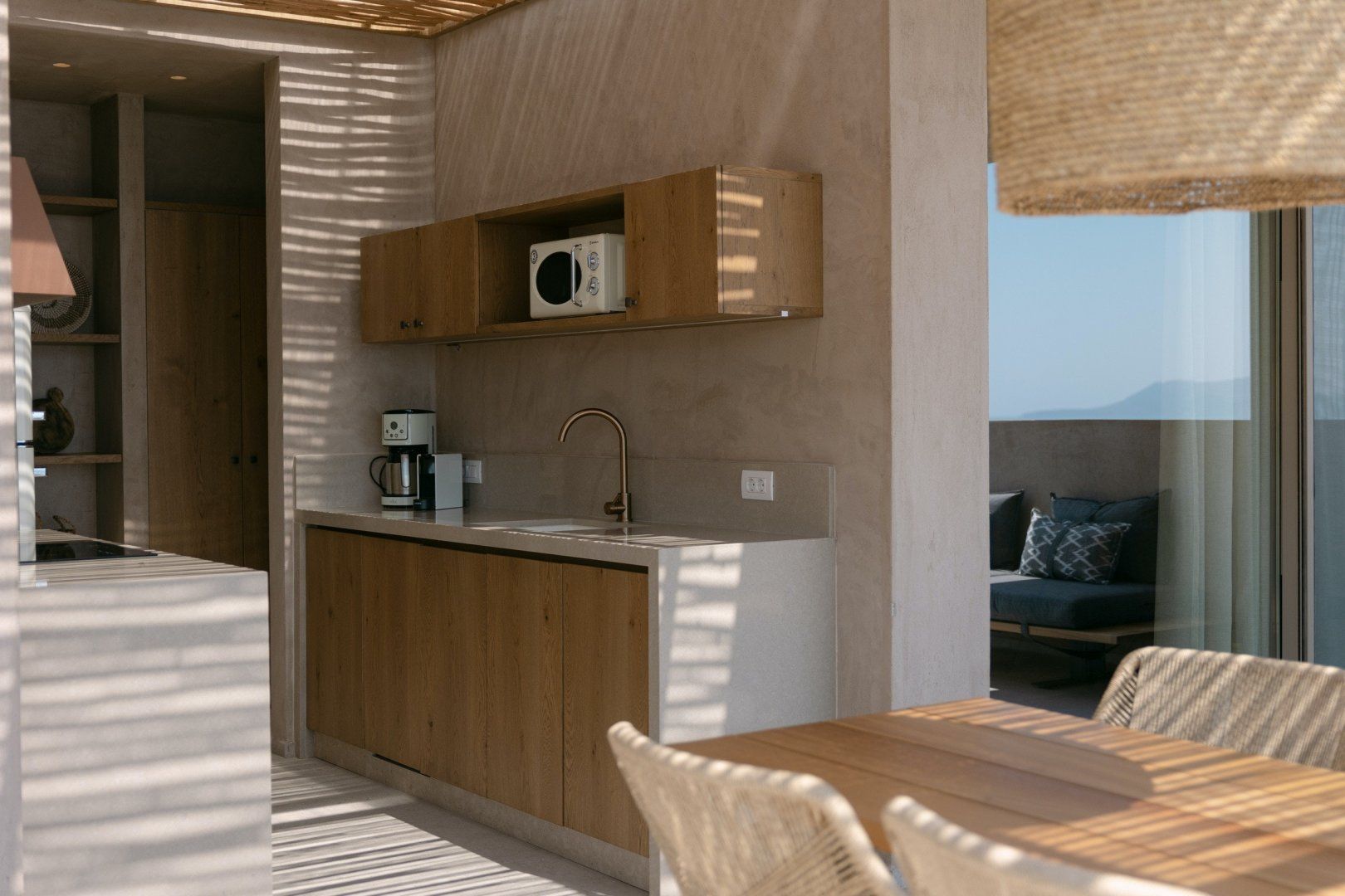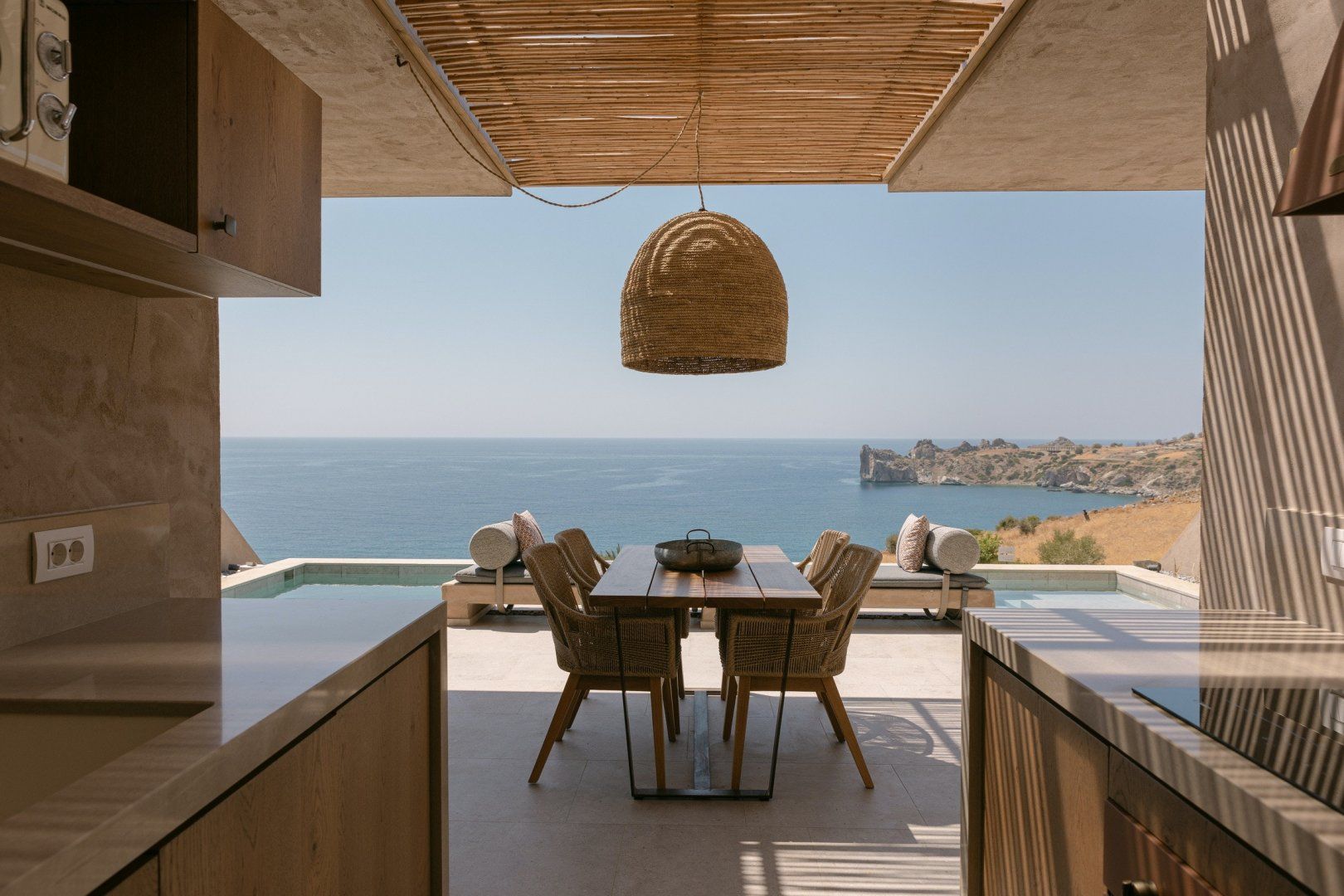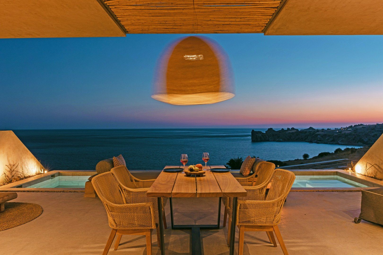 Where do we start with this villa just outside Agios Pavlos? There's so much to love. Firstly it's under 250 metres from the beach – that caught our eye straight away. And then there are those immaculate views over the shimmering sea that are enough to make anyone swoon with holiday envy. The vistas over the water are absolutely stunning from sunrise to sunset, best enjoyed over long alfresco meze lunches before cooling off in the private pool or simply relaxing on the daybeds as you work on your tan.