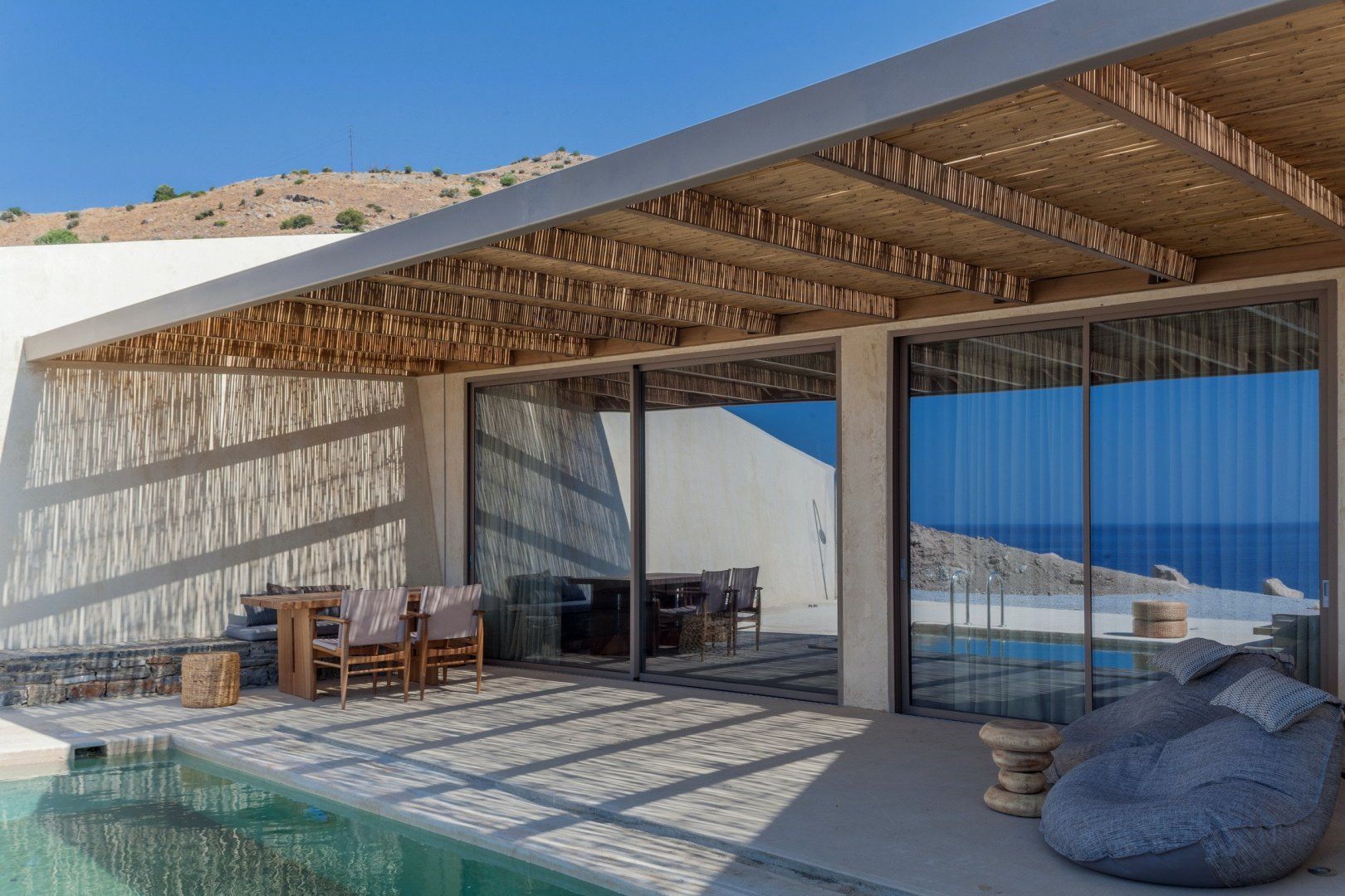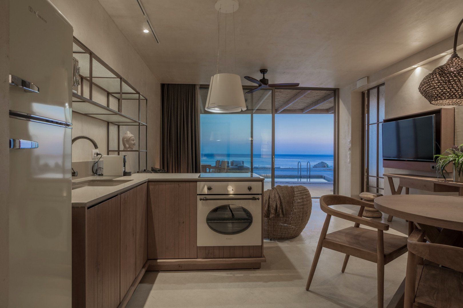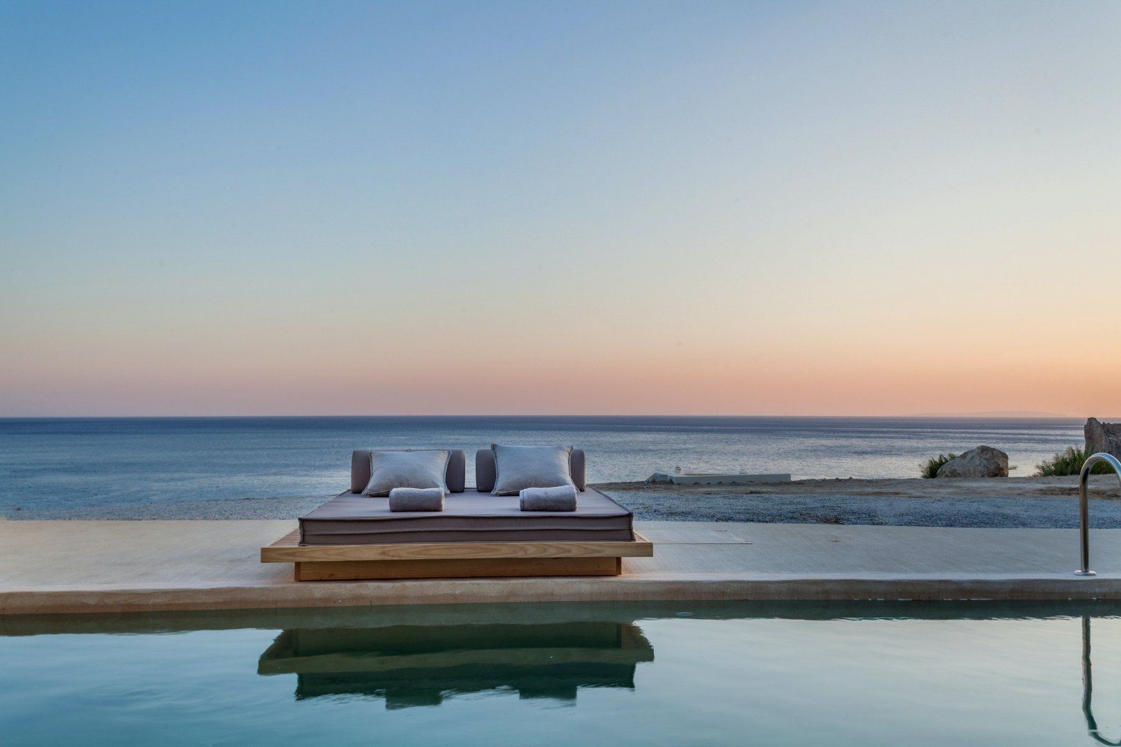 Enjoy mesmerising across the rugged shores of Agios Pavlos, spend idyllic days lounging by the private heated pool, make the short walk down to the beach and gather for unforgettable sunset drinks on the terrace. And when you’re ready to retreat inside, you’ll find a calm space welcoming you to cook, read, relax and simply gaze across the infinite horizon.
