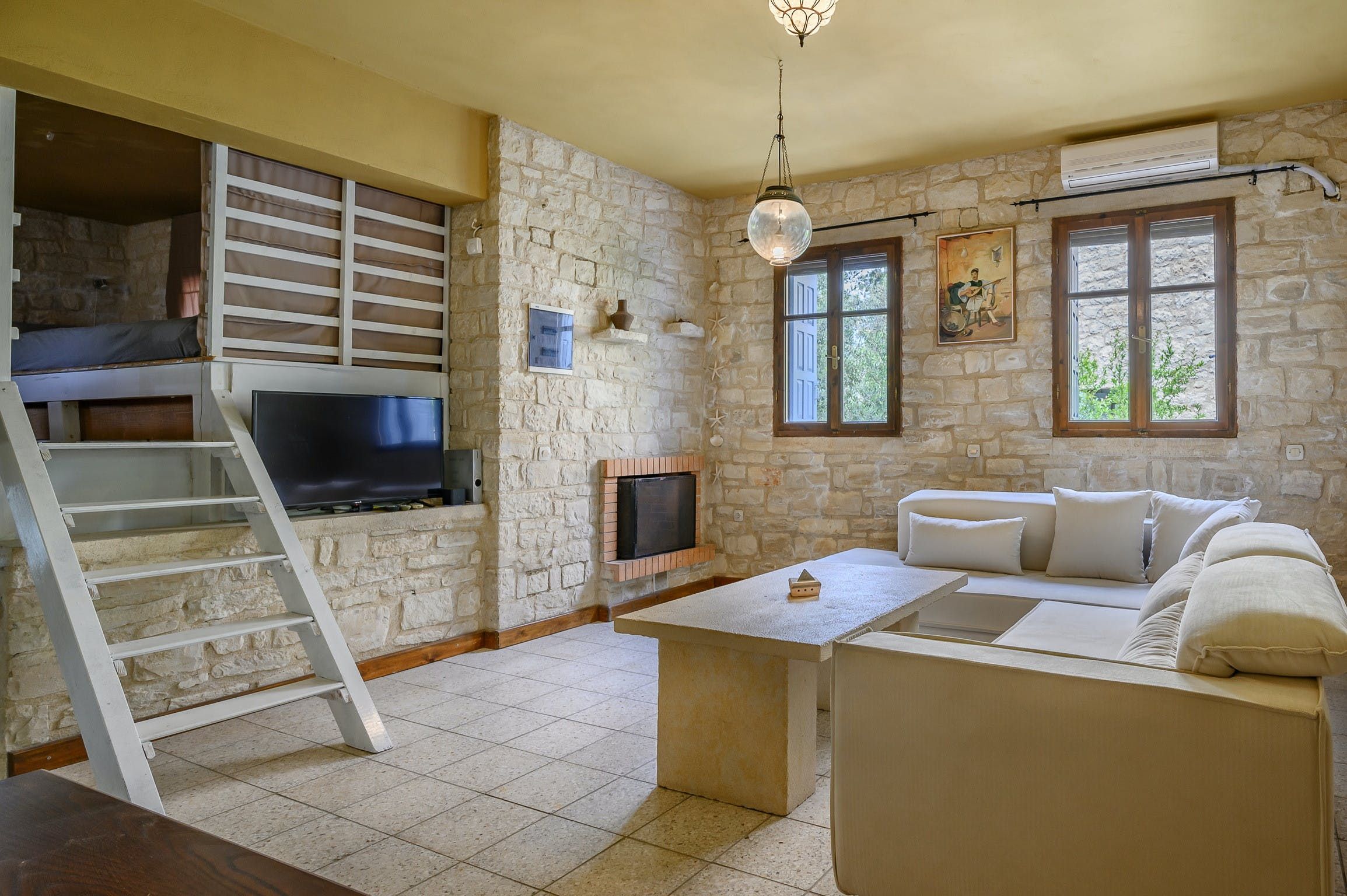 Unwind amongst the trees from this villa located 500m from Spili City and just a short drive from Preveli Beach. The home is minimal but practical, with plenty of space designed for outdoor living. The loungers are just the spot to top up your tan, while the pool is perfect for cooling off – there’s a shaded terrace, too, for sharing alfresco meals. The inside offers plenty of space to unwind when you need a repose from the midday sun, with an extra bedroom for flexible sleeping arrangements. If you’re seeking a quaint spot with a rural location, we think this villa offers a joyful place to make memories.
