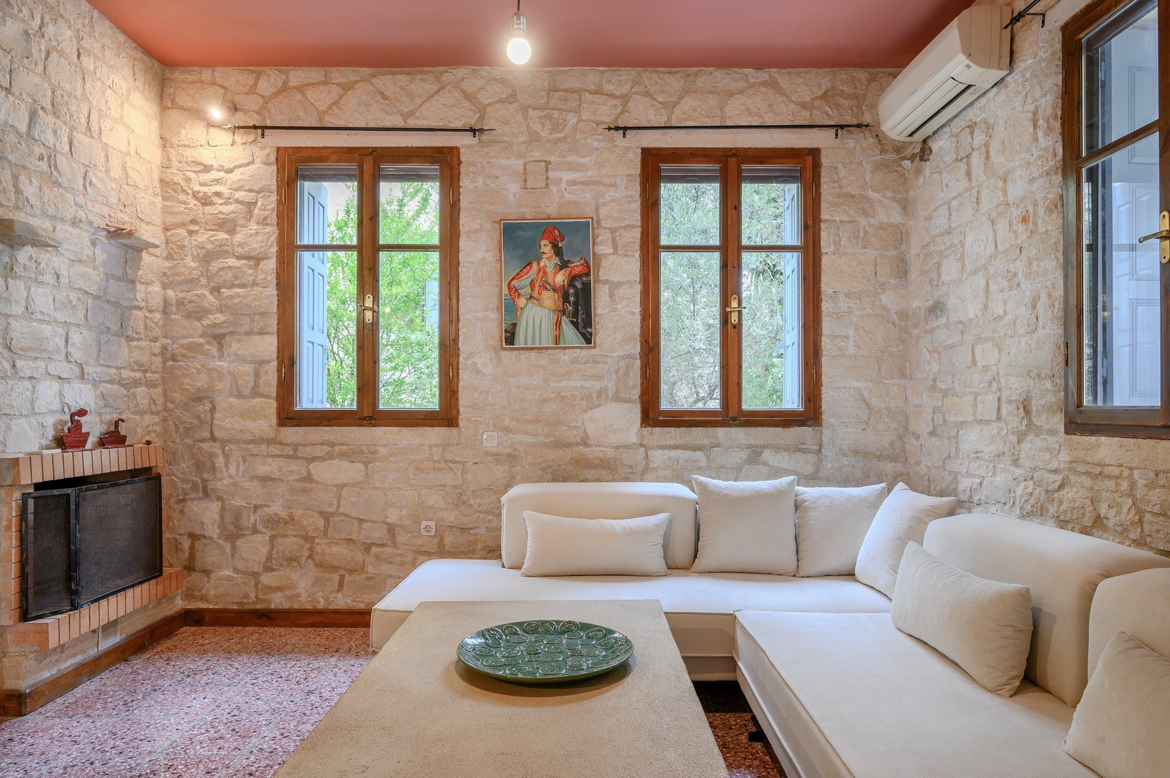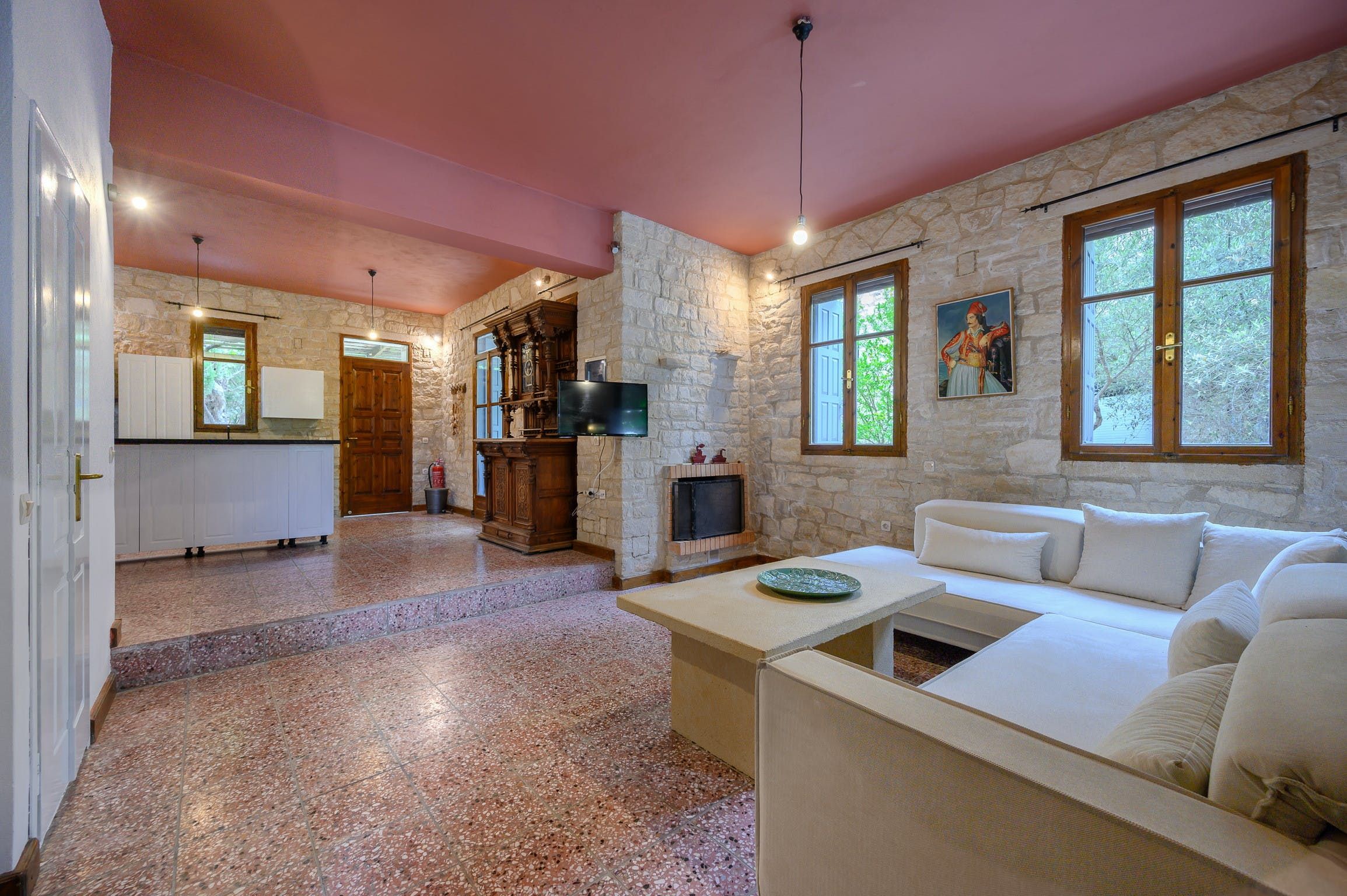 Home truths: *While not all bathrooms are photographed, expect the style and quality to be consistent with the rest of the home. *At full occupancy, one guest will be sleeping on the sofa bed in the living area. *If you're travelling with little ones, your host can provide a high chair for free. You'll need to request it in advance. *The swimming pool isn't fenced. If you're bringing children, they'll need to be supervised at all times. *We recommend hiring a car to get the most out of your stay. There's private parking for two cars here. *If you're travelling by plane, Chania is the nearest airport – it's an eighty-seven-kilometre drive from this home. *Bed linen and towels are changed every three days here. *Tourist Tax is included in the total price of your booking