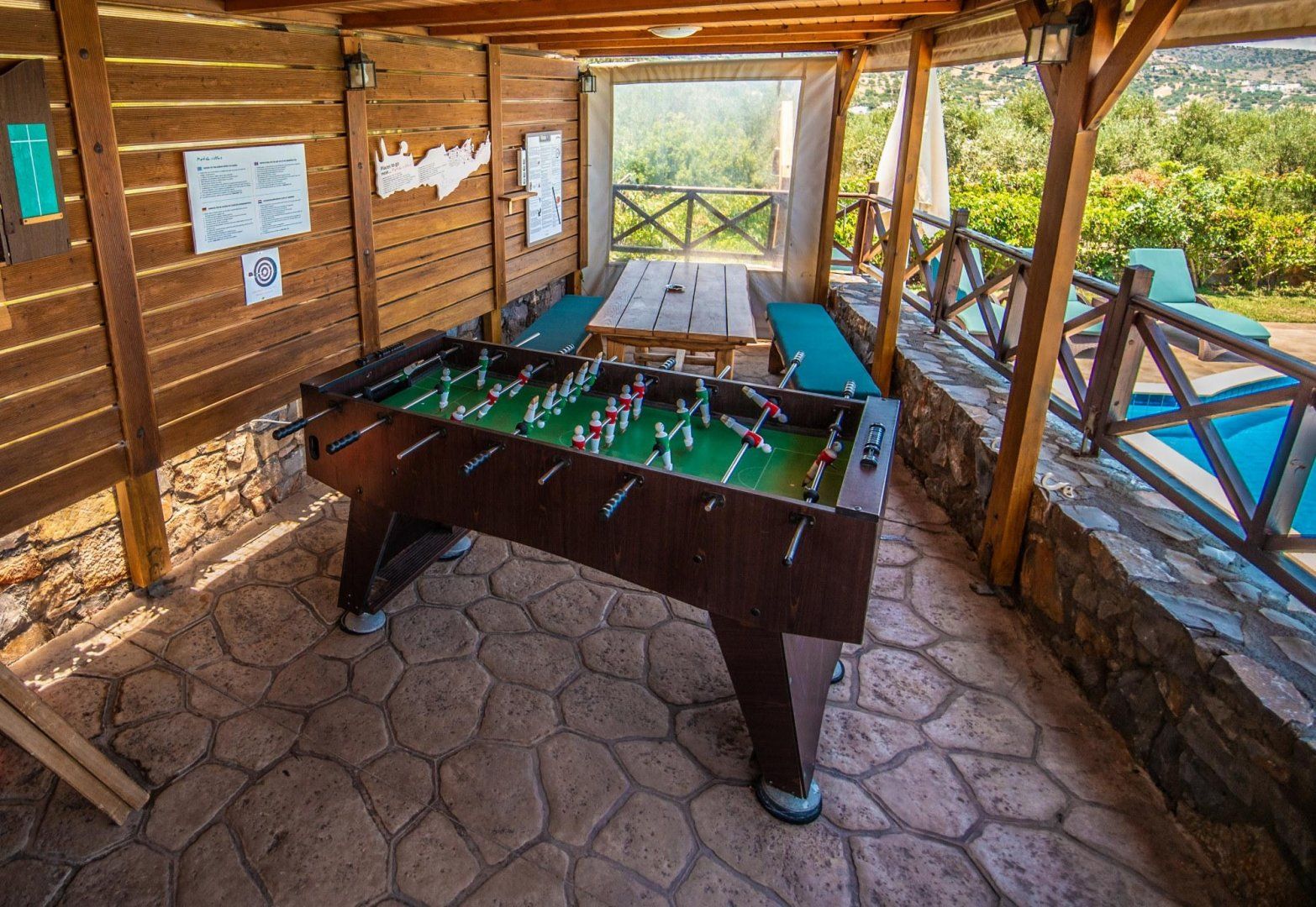 Outside, on the covered terrace, a football table and dartboard keep your brood occupied in the lull before lunchtime. When it’s time to feast, serve up local produce hot off the barbecue. In the late afternoon, take a dip in the pool or soak up the sunshine on a waterside lounger.