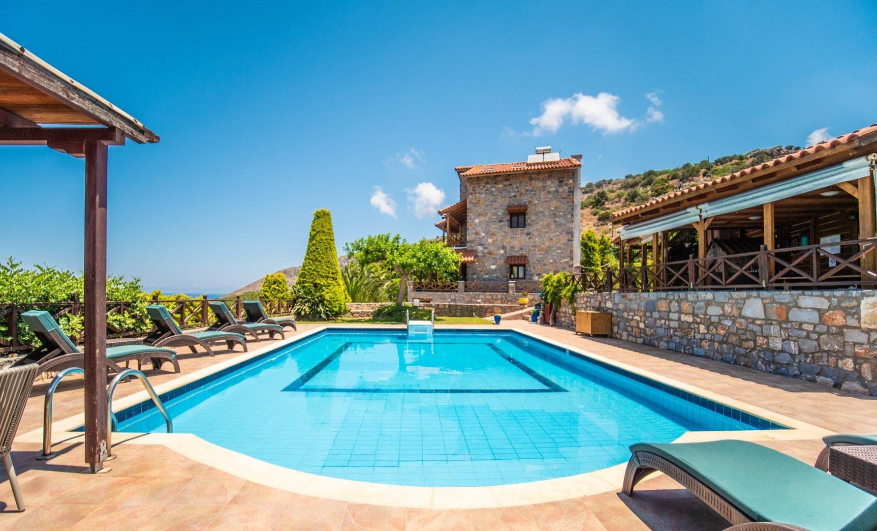 The interiors combine rural understatement with mod-cons comfort – there’s a laid back living space, a dark wood kitchen with everything you need for cooking up Cretan-style dishes and cosy bedrooms that guarantee a peaceful night’s sleep.
