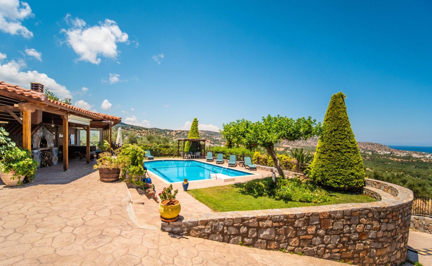 Set atop a hill with endless views of the Milatos plains and the azure Aegean Sea, this rustic stone and timber villa makes an ideal base for exploring the Lasithi region’s beaches, mountains and charming villages.