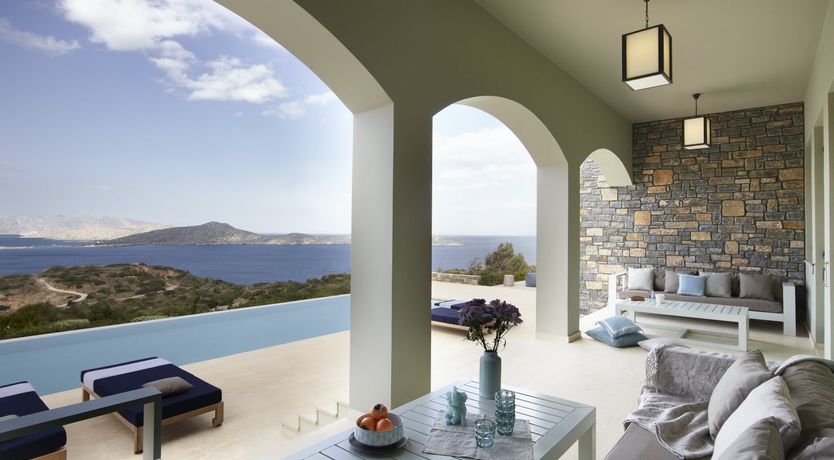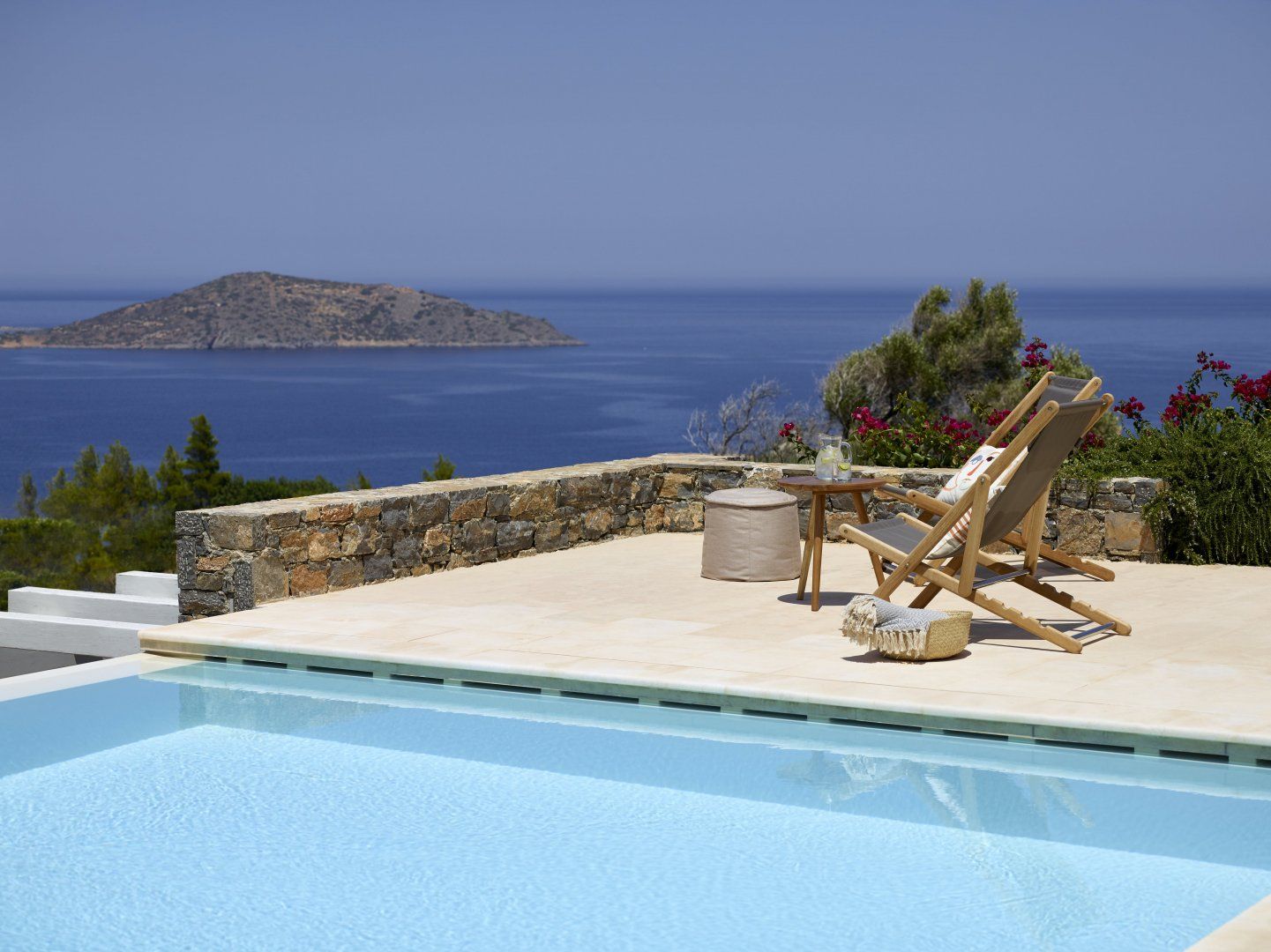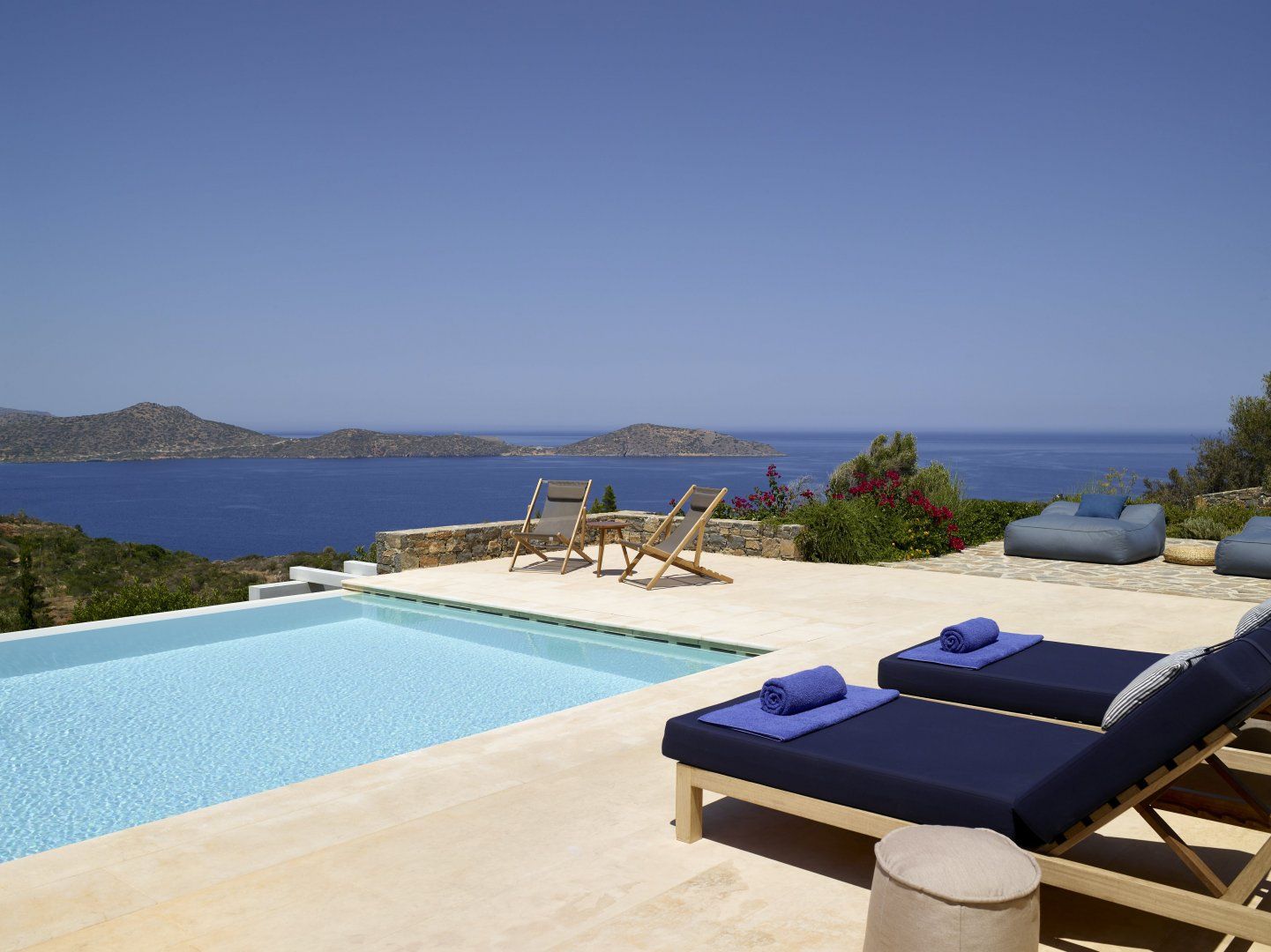 This villa – and its two separate guest rooms – is great for large groups. There’s heaps of space inside and out, with eight en-suite bedrooms and a lovely landscaped garden with terraces. The views are show-stopping – whether you’re dining under the pergola or swimming in the infinity pool, your eye will be drawn out to Elounda Bay. The scent of herbs in the air makes the spectacular sunsets all the sweeter. The home is on a hillside 3 kilometres from Elounda, so you’ll benefit from hiring a car to get around – and Agios Nikolaos is only 7 kilometres away too.