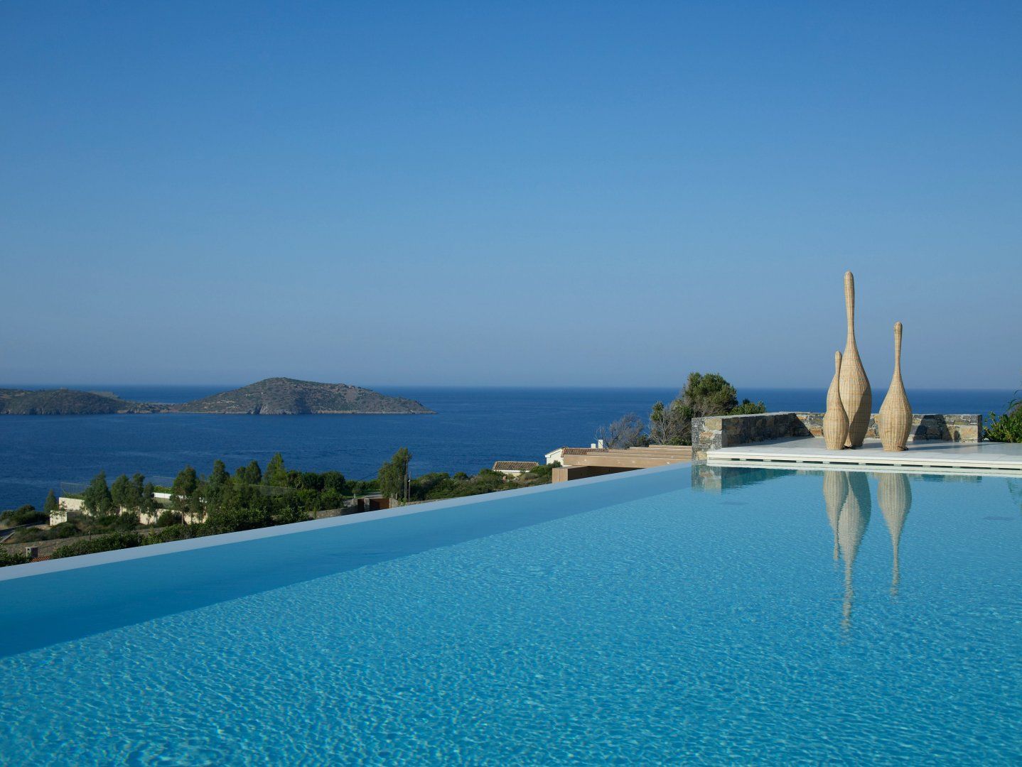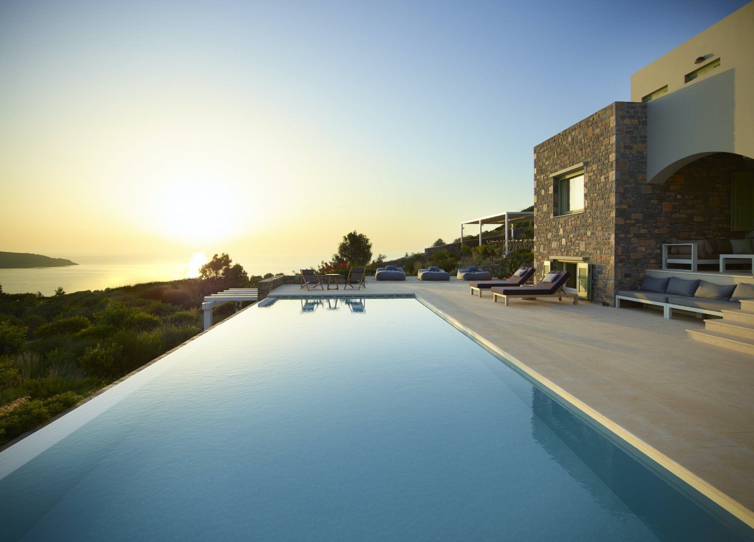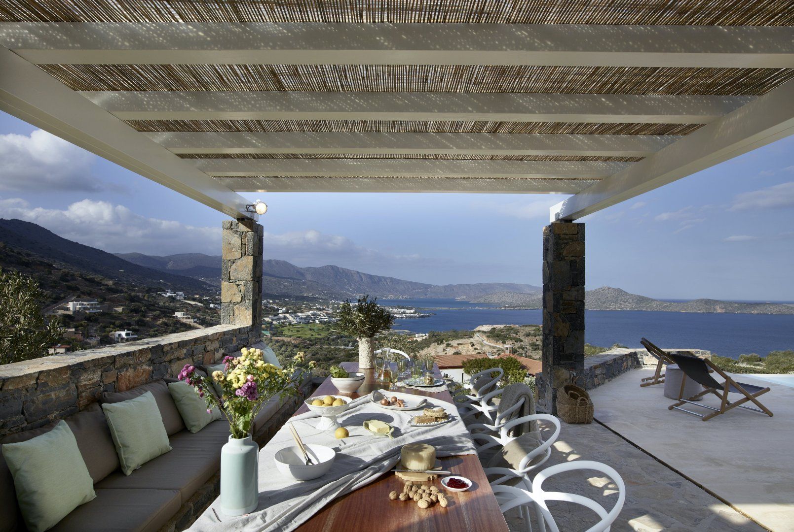 This villa – and its two separate guest rooms – is great for large groups. There’s heaps of space inside and out, with eight en-suite bedrooms and a lovely landscaped garden with terraces. The views are show-stopping – whether you’re dining under the pergola or swimming in the infinity pool, your eye will be drawn out to Elounda Bay. The scent of herbs in the air makes the spectacular sunsets all the sweeter. The home is on a hillside 3 kilometres from Elounda, so you’ll benefit from hiring a car to get around – and Agios Nikolaos is only 7 kilometres away too.