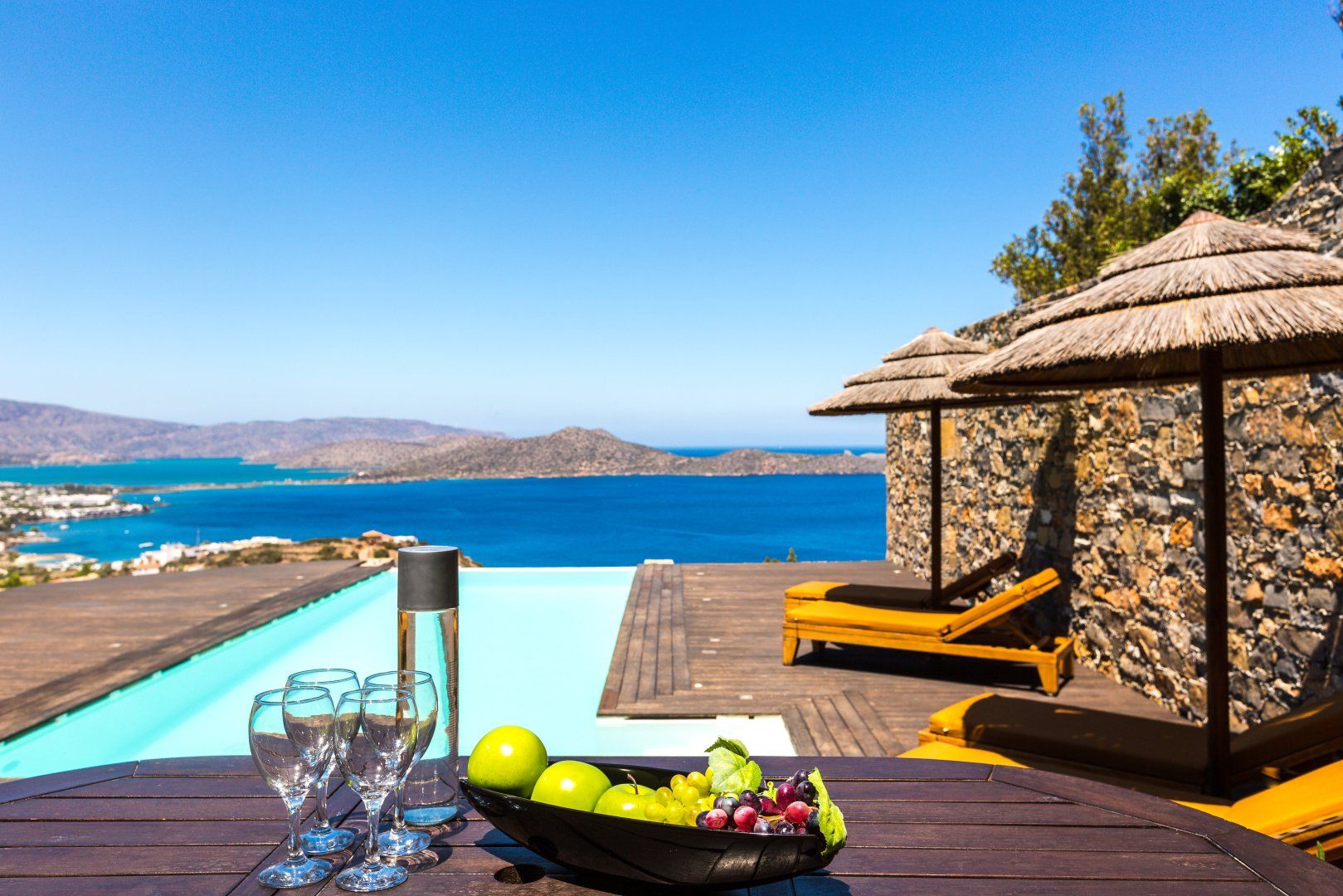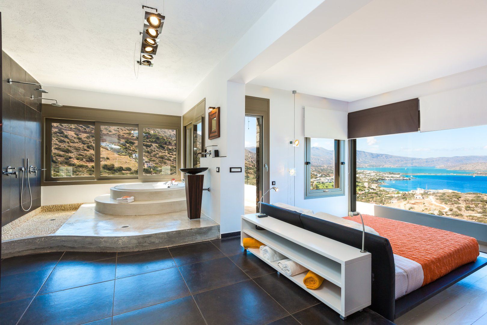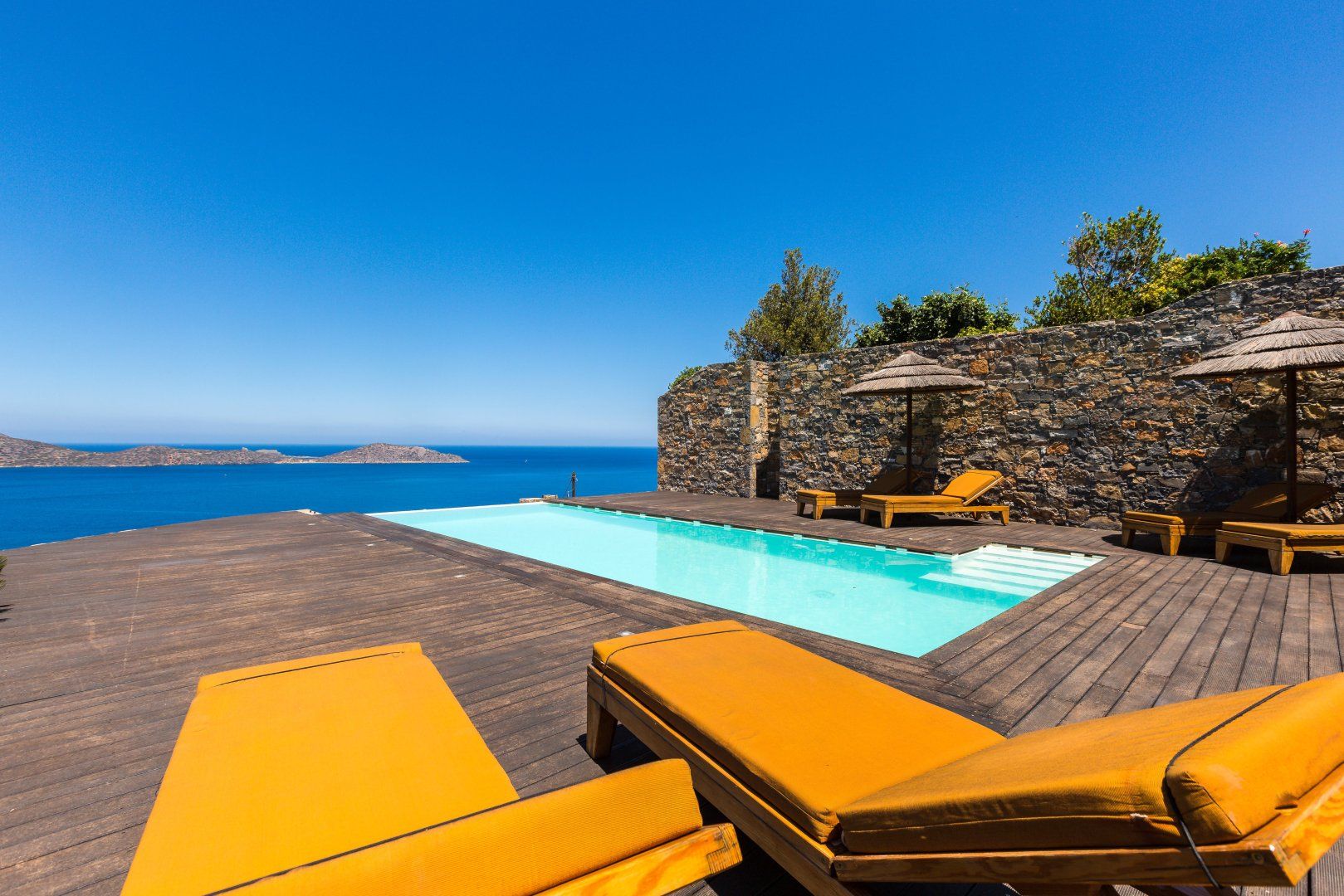 Tucked away on the peaceful coast of Elounda, this sublime villa makes for a smart and stylish home from home on happy holidays to stunning Crete. The star of the show is the outdoor pool deck – here, you can gaze out at blissfully blue ocean views while you take a dip in your own private pool. Tiki umbrellas and sun loungers all add to the little alfresco oasis. Inside, the home is a little dated in its decor, but offers plenty of room for each guest to stretch out and relax – and there are floor-to-ceiling windows here that let you make the most of those sea views.