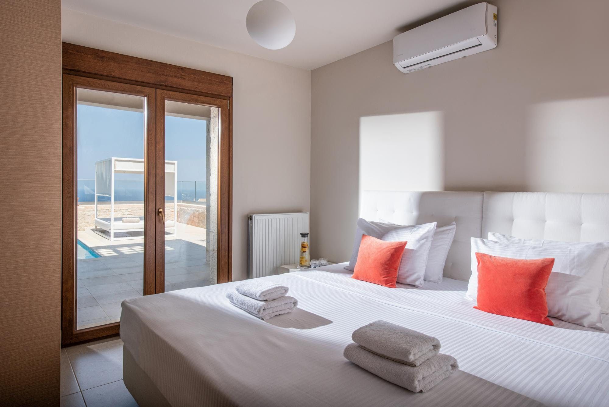 Found on a hillside in Lingaria, minutes away from the coast, this home ticks more than one box. Step outside to get better acquainted with the ocean views – especially enjoyable from the edge of the infinity pool or between napping on the sun bed. Though the interior is simplistic, there are surprising touches, like the bathroom tree and the easel in the living room. The location is another win, moments away from a beach promenade lined with tavernas and bars. When you're stuck on what to do, hire a boat or stop at the diving centre and see the island in a new light.