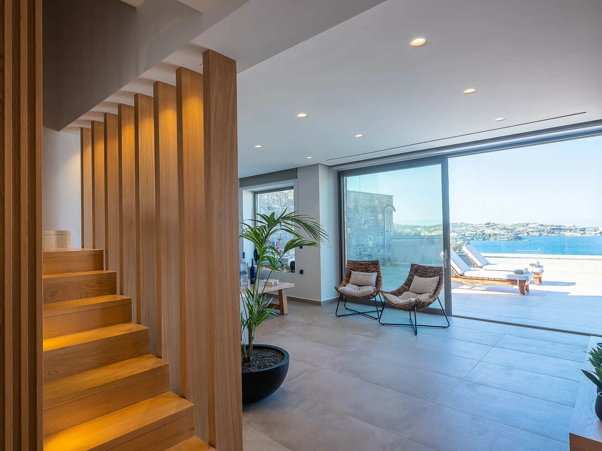 Perched above Mades and Ligaria, this hillside villa is all about the views – mountains on one side, the Aegean Sea on the other. Take it all in from the private pool, on the terrace, or even from the bedroom – either way, it’s hard to tear yourself away. Inside, it’s cool and understated, with two sea-view bedrooms plus a mezzanine, making it a great fit for families or small groups. Location-wise, quiet Mades Beach is just a couple of minutes away, Ligaria a short drive, and local tavernas and a supermarket are close by. Heraklion is within easy reach too when you want a bit more buzz – though you may not feel the need to leave.