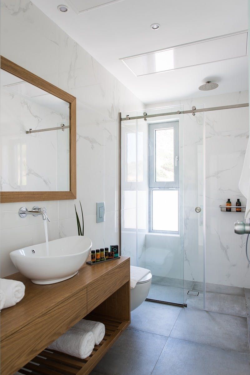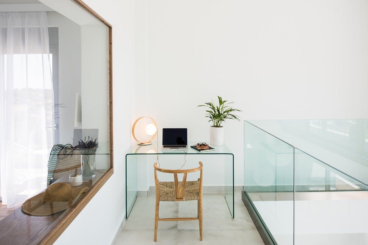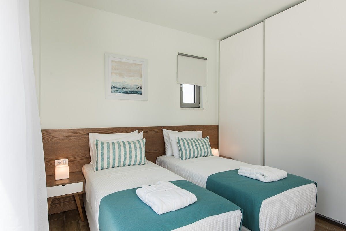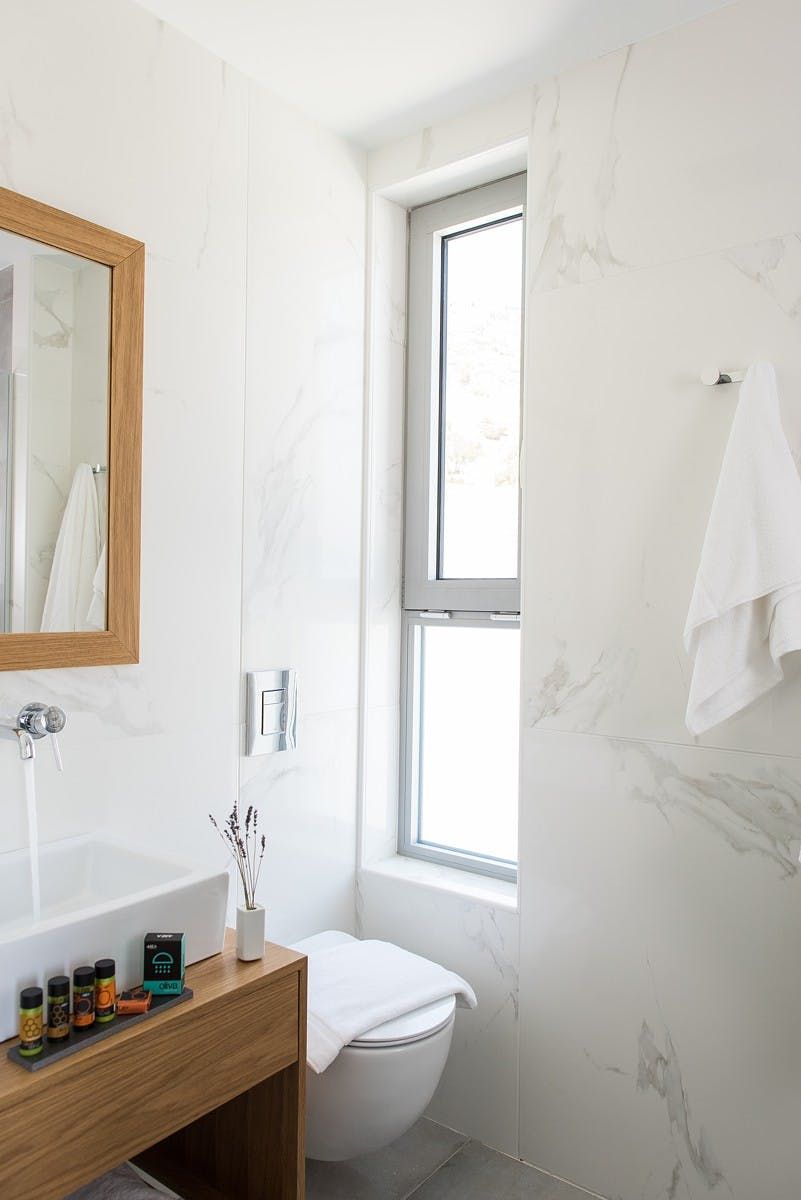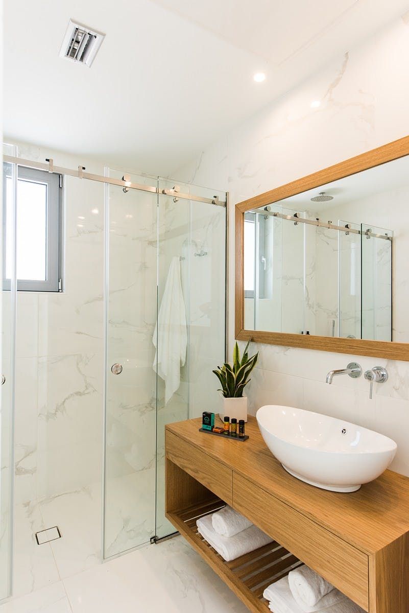 The villa retains a calming ambience throughout, with a soft colour scheme of grey, white and splashes of aqua. Slide open the glass doors in the bright living space to let the ocean air waft in as you lounge on the L-shaped sofa. In the evenings, gather around the eight-person dining table to enjoy a traditional Greek meze – your host can arrange for a private chef to take the cooking off your hands.
