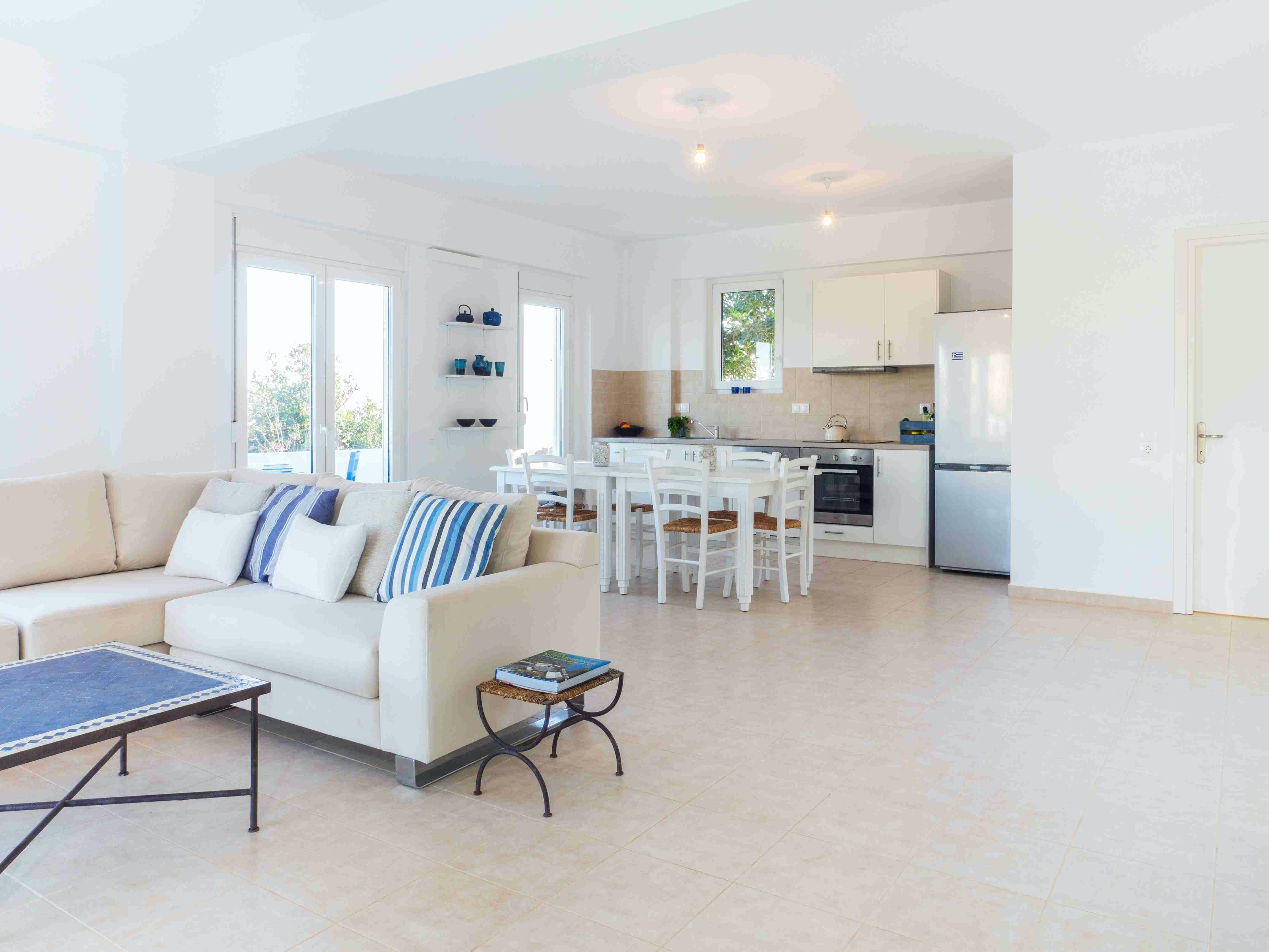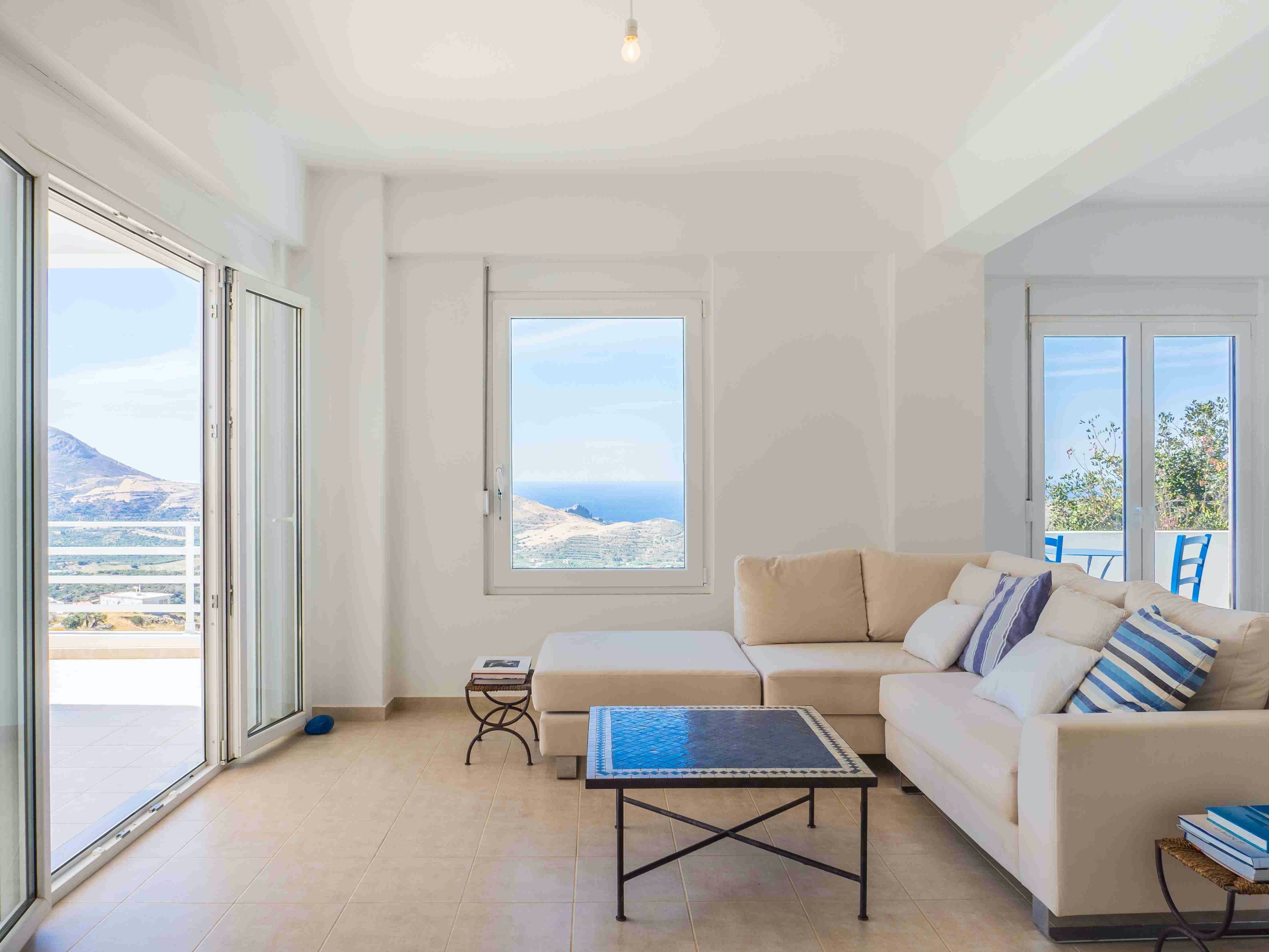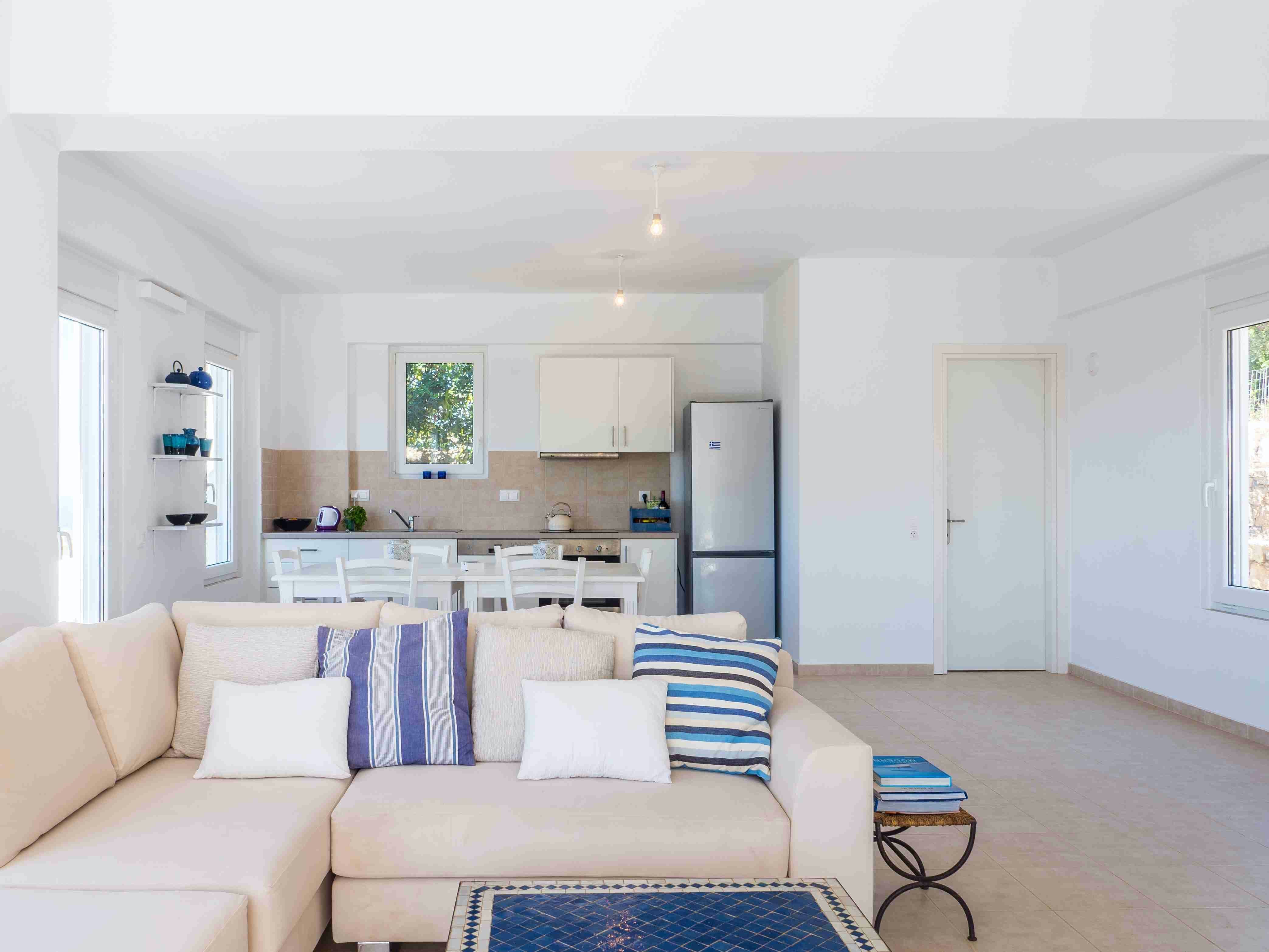 With a hillside setting, this large modern villa has panoramic views of the picturesque countryside and sparkling sea. The private swimming pool is a wonderful spot, surrounded by olive groves, and there are plenty of seating and dining areas boasting more of those incredible vistas. Inside, the interiors are simple and fuss-free. When you fancy exploring the coastline you can see from this home, you’ll be just a short drive away from pristine beaches like Plakias and Damnoni. Or go hiking in the stunning landscape on your doorstep.