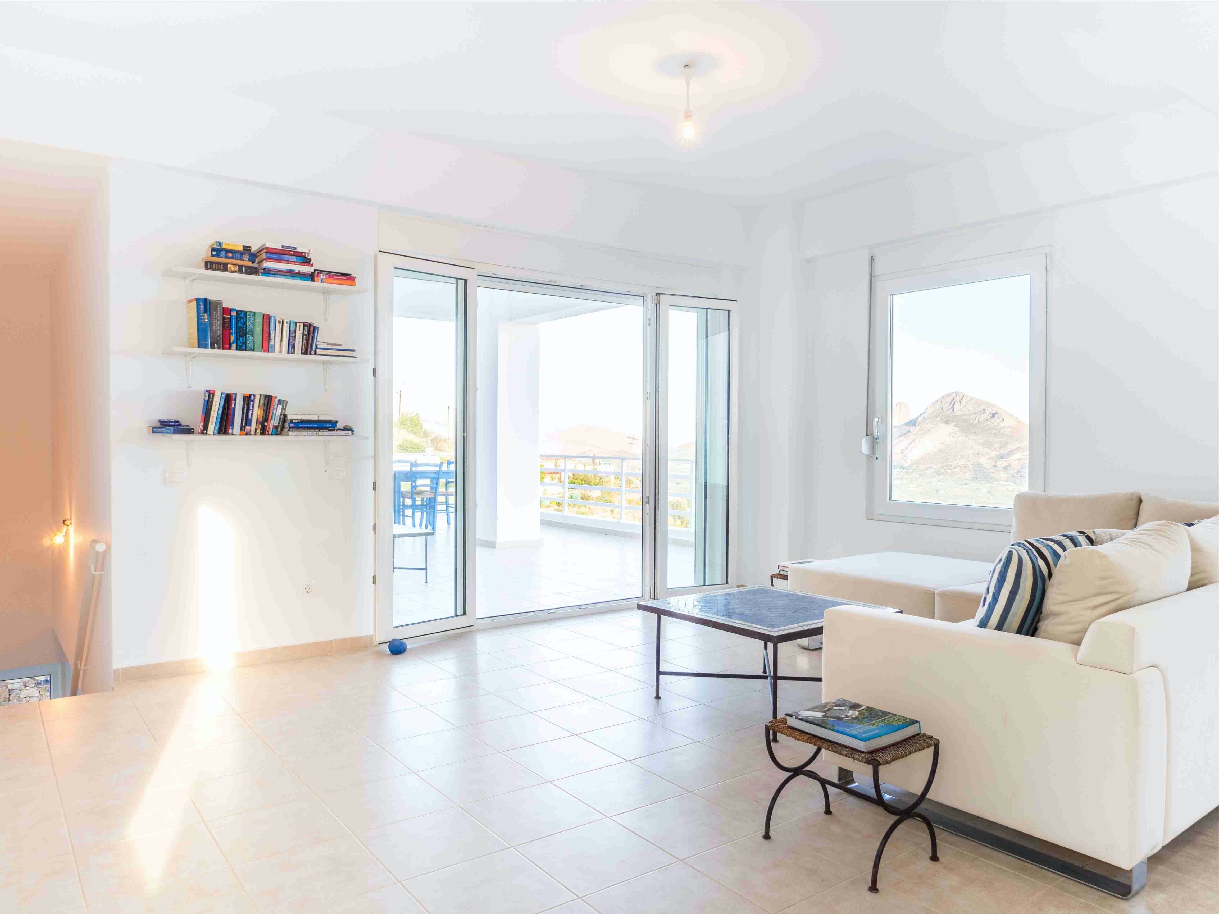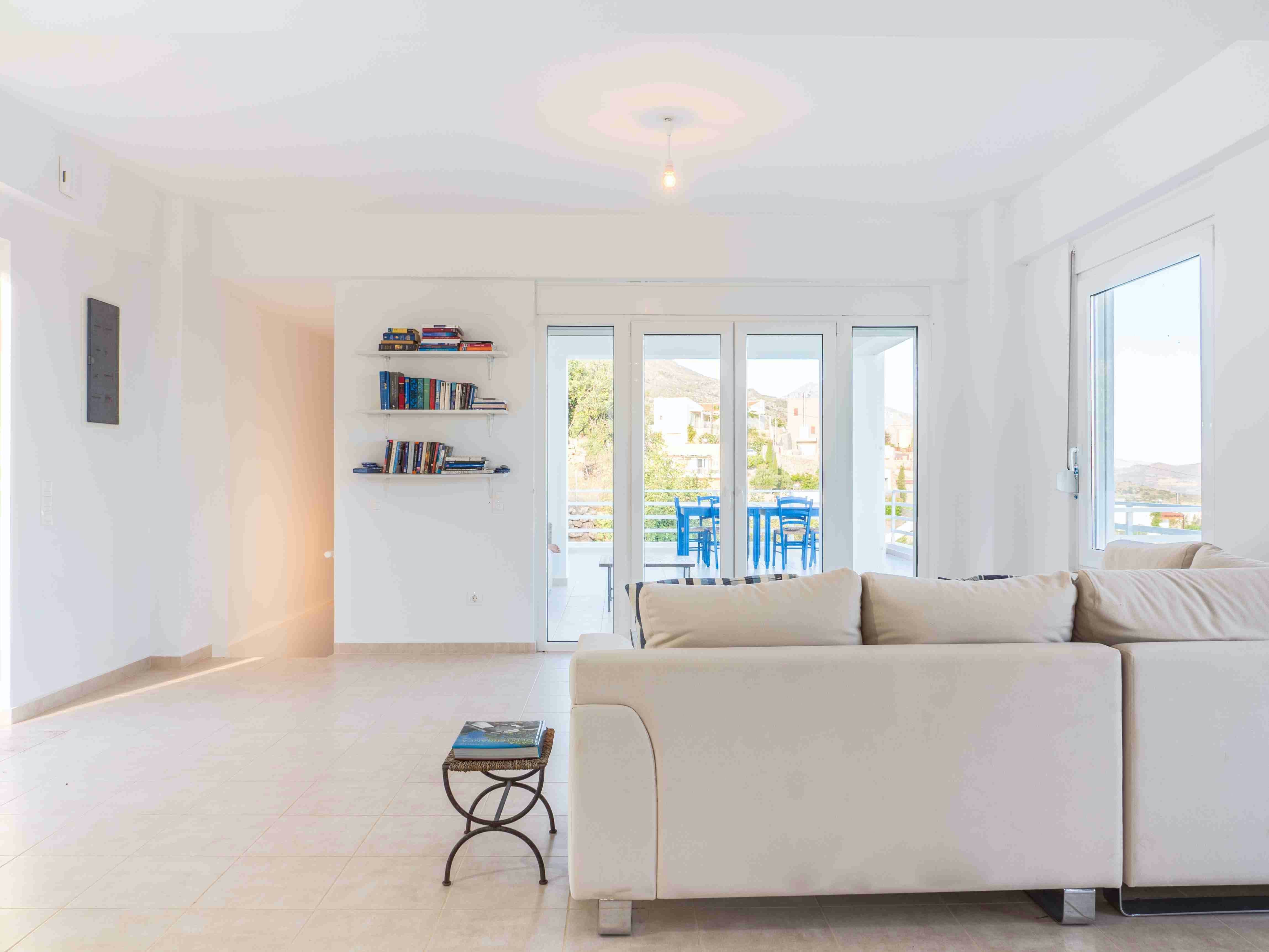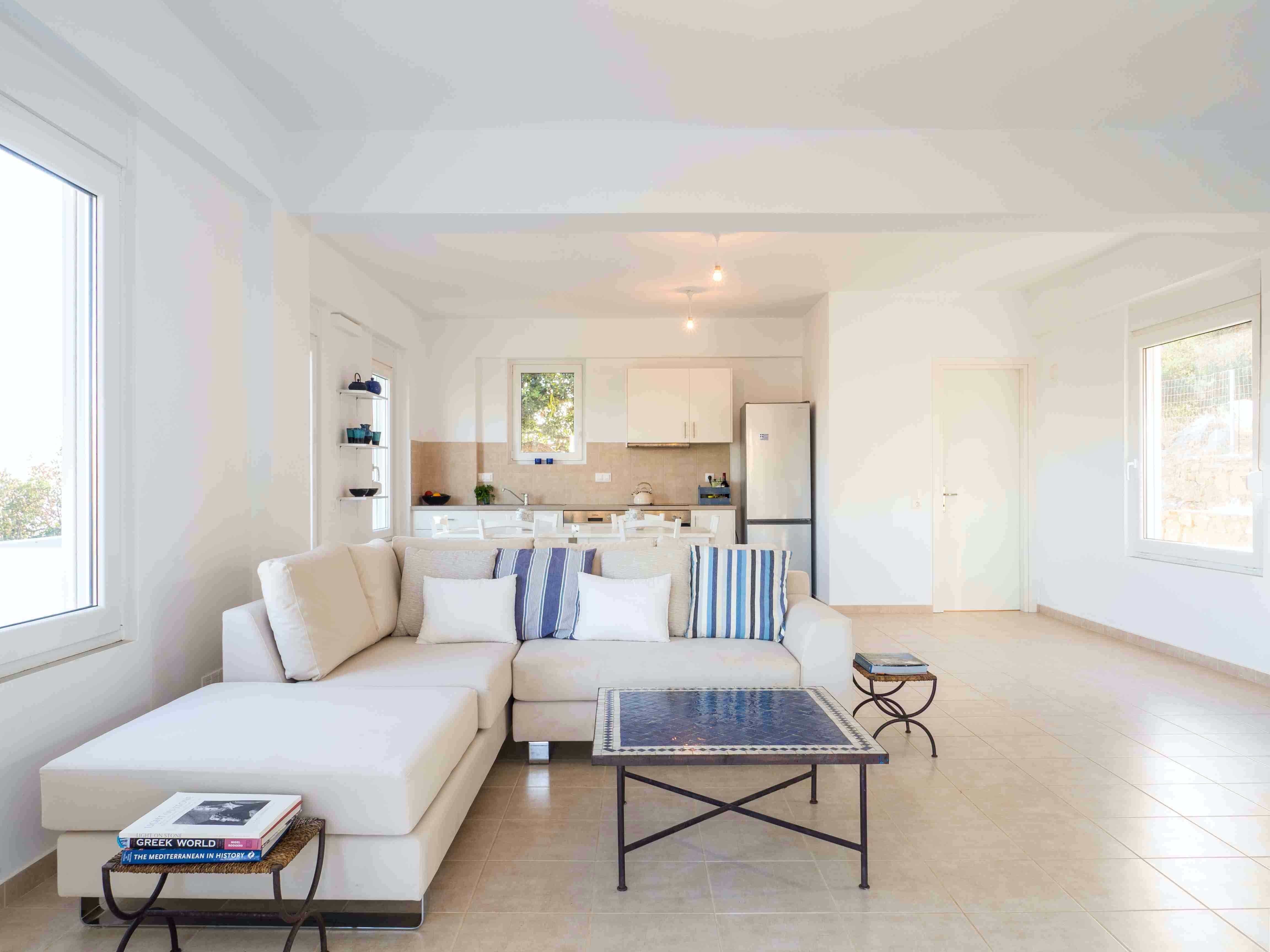 With a hillside setting, this large modern villa has panoramic views of the picturesque countryside and sparkling sea. The private swimming pool is a wonderful spot, surrounded by olive groves, and there are plenty of seating and dining areas boasting more of those incredible vistas. Inside, the interiors are simple and fuss-free. When you fancy exploring the coastline you can see from this home, you’ll be just a short drive away from pristine beaches like Plakias and Damnoni. Or go hiking in the stunning landscape on your doorstep.