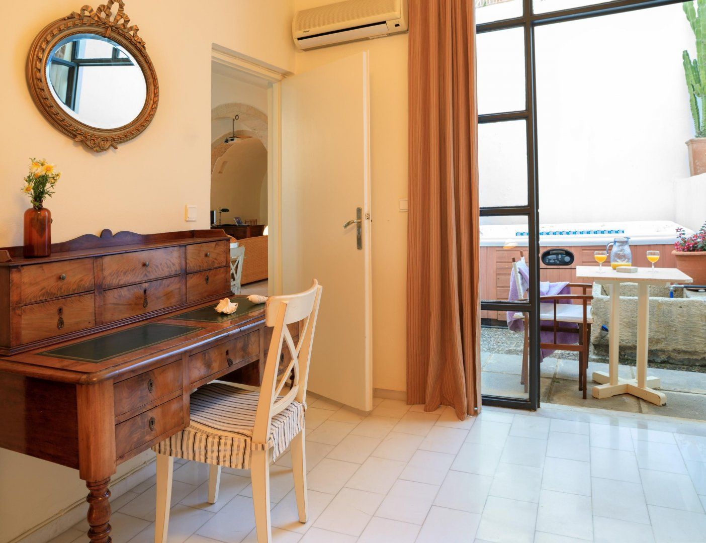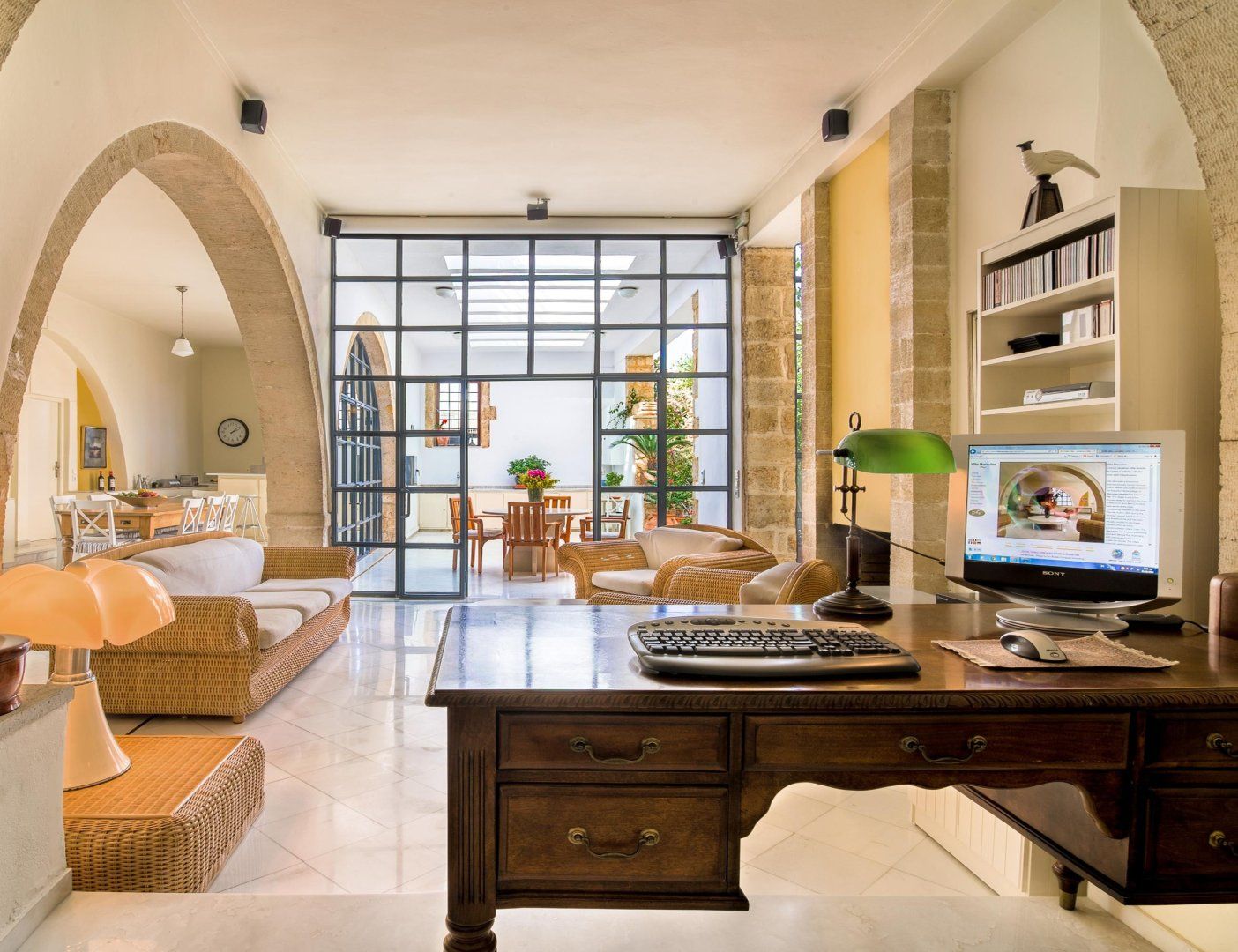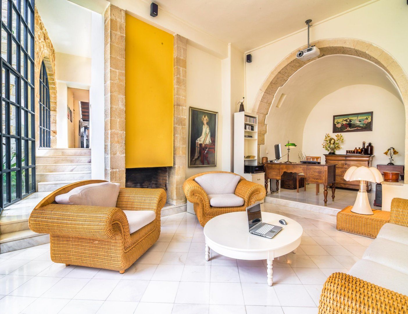 The towering walls of this residence provide peace and solitude while remaining in the heart of the village, Maroulas village, which is a heritage site and a thriving community surrounded by happiness. The swimming pool, surrounded by soothing scenery, is a great spot to relax in the sun or the shade of a lemon tree, and don't forget about movie night with the video projector – have the popcorn ready.