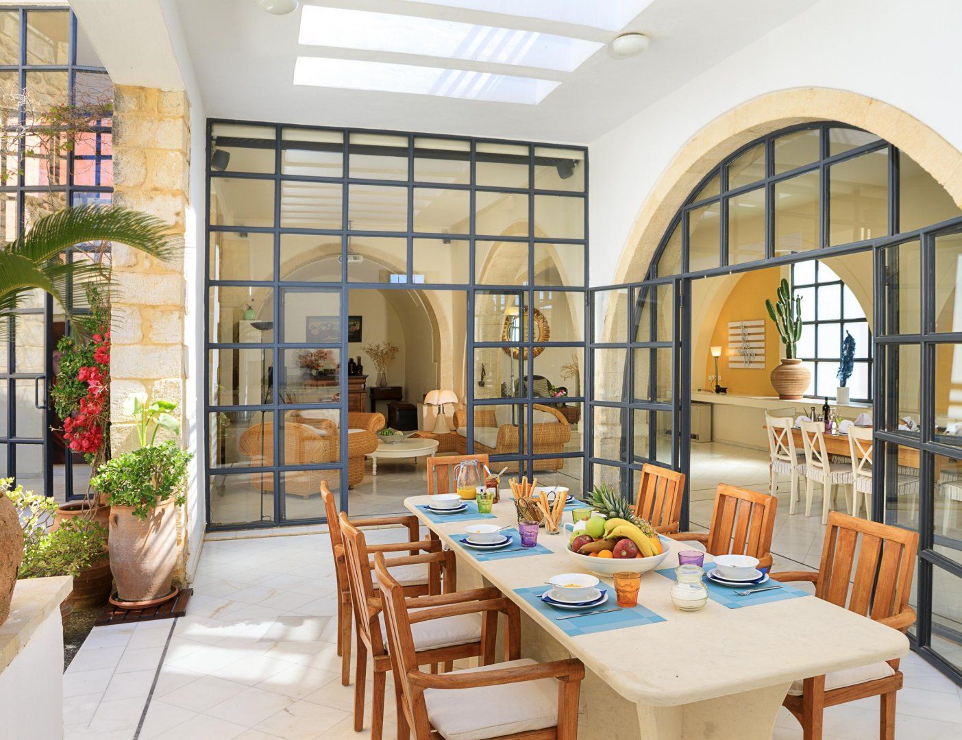 A remarkable villa that has been extensively renovated since it was established in 1426 and has been designated as a historical monument by Greek Archaeological authorities. Now a fantastic holiday home for you and your loved ones with original character combined with contemporary amenities. The villa's two wings are linked by a stunning covered walkway built by none other than globally famous architect Yiannis Kalitsounas, who created a confluence of light, glass, and space, bringing different cultures and times together in one spot.