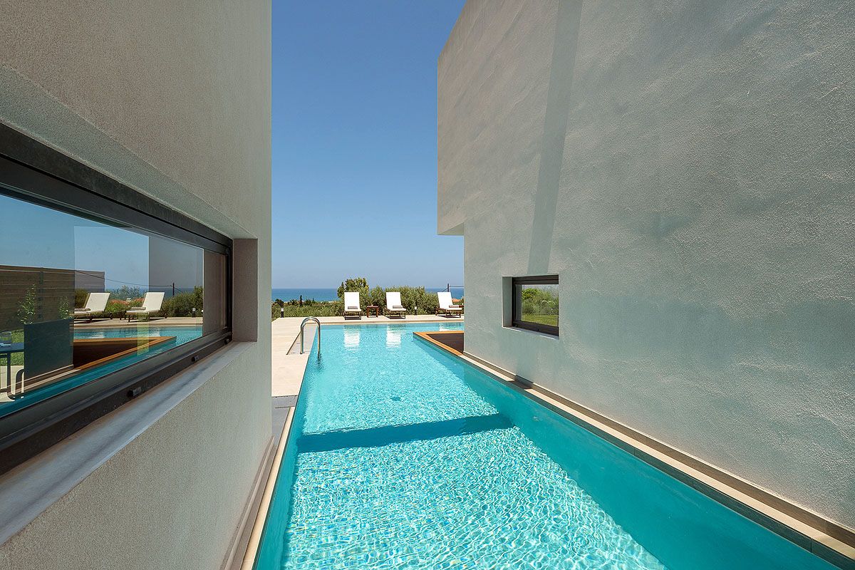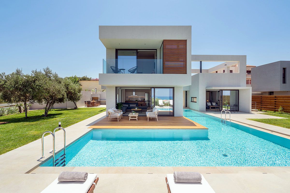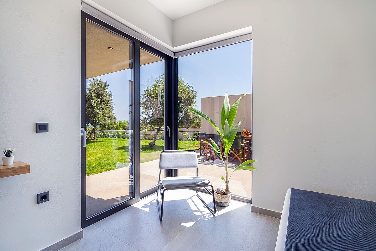 This modern villa situated a short drive or a leisurely stroll away from a sandy beach is a great spot to base yourself while visiting the north of Crete. Aside from the location and lovely sea views, you’ll also enjoy a luxurious swimming pool and plenty of outdoor spaces for lounging and relaxing in the sun. The home itself features a separate studio, making it a perfect choice for those seeking privacy. You’ll still have lots of opportunities for coming together and sharing communal meals and cosy evenings in the main living room. Bear in mind that this villa is part of a two-home complex, meaning you’ll have neighbours close by.