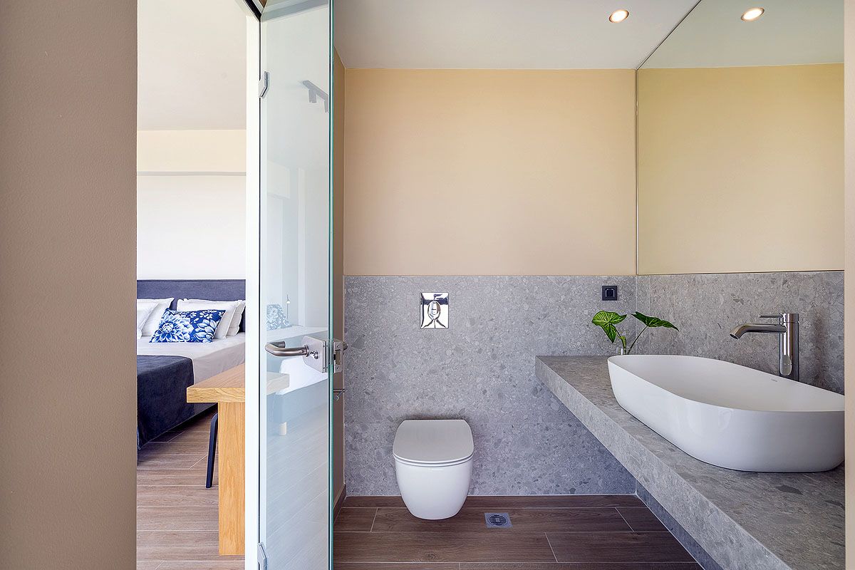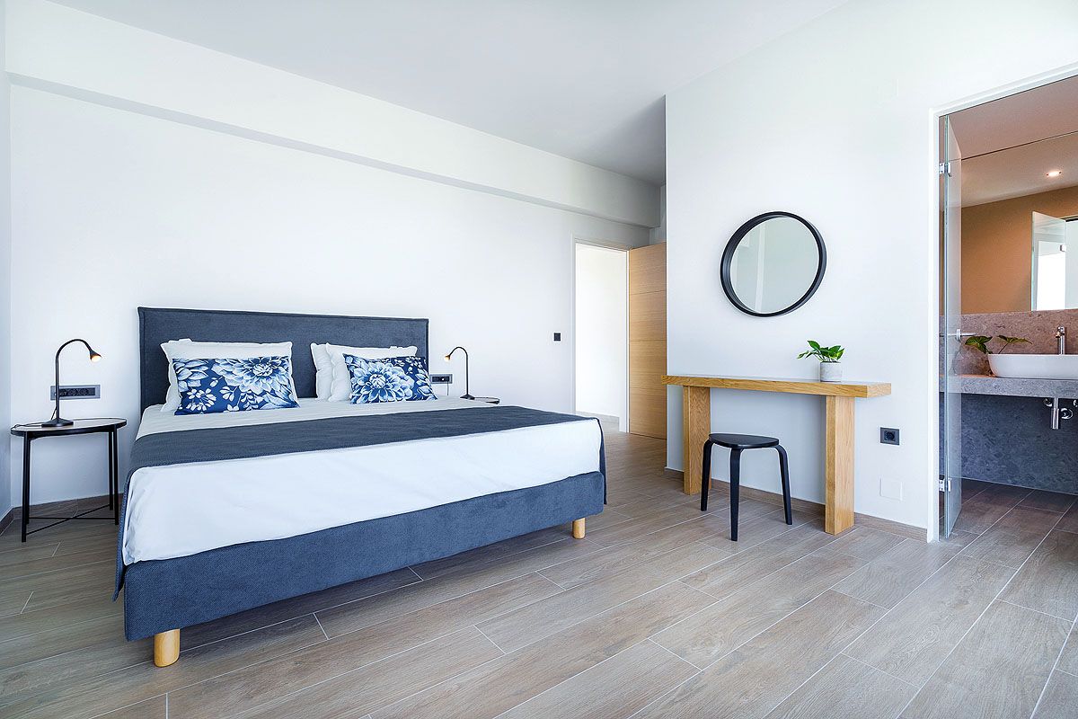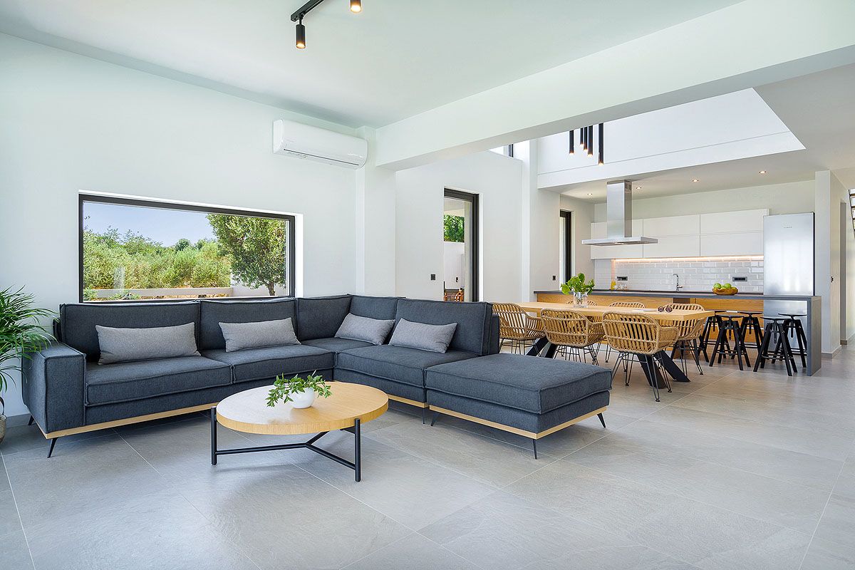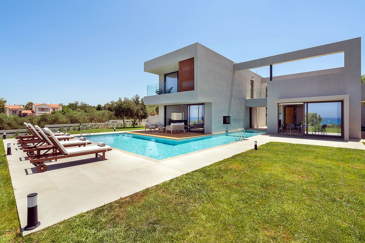 This modern villa situated a short drive or a leisurely stroll away from a sandy beach is a great spot to base yourself while visiting the north of Crete. Aside from the location and lovely sea views, you’ll also enjoy a luxurious swimming pool and plenty of outdoor spaces for lounging and relaxing in the sun. The home itself features a separate studio, making it a perfect choice for those seeking privacy. You’ll still have lots of opportunities for coming together and sharing communal meals and cosy evenings in the main living room. Bear in mind that this villa is part of a two-home complex, meaning you’ll have neighbours close by.