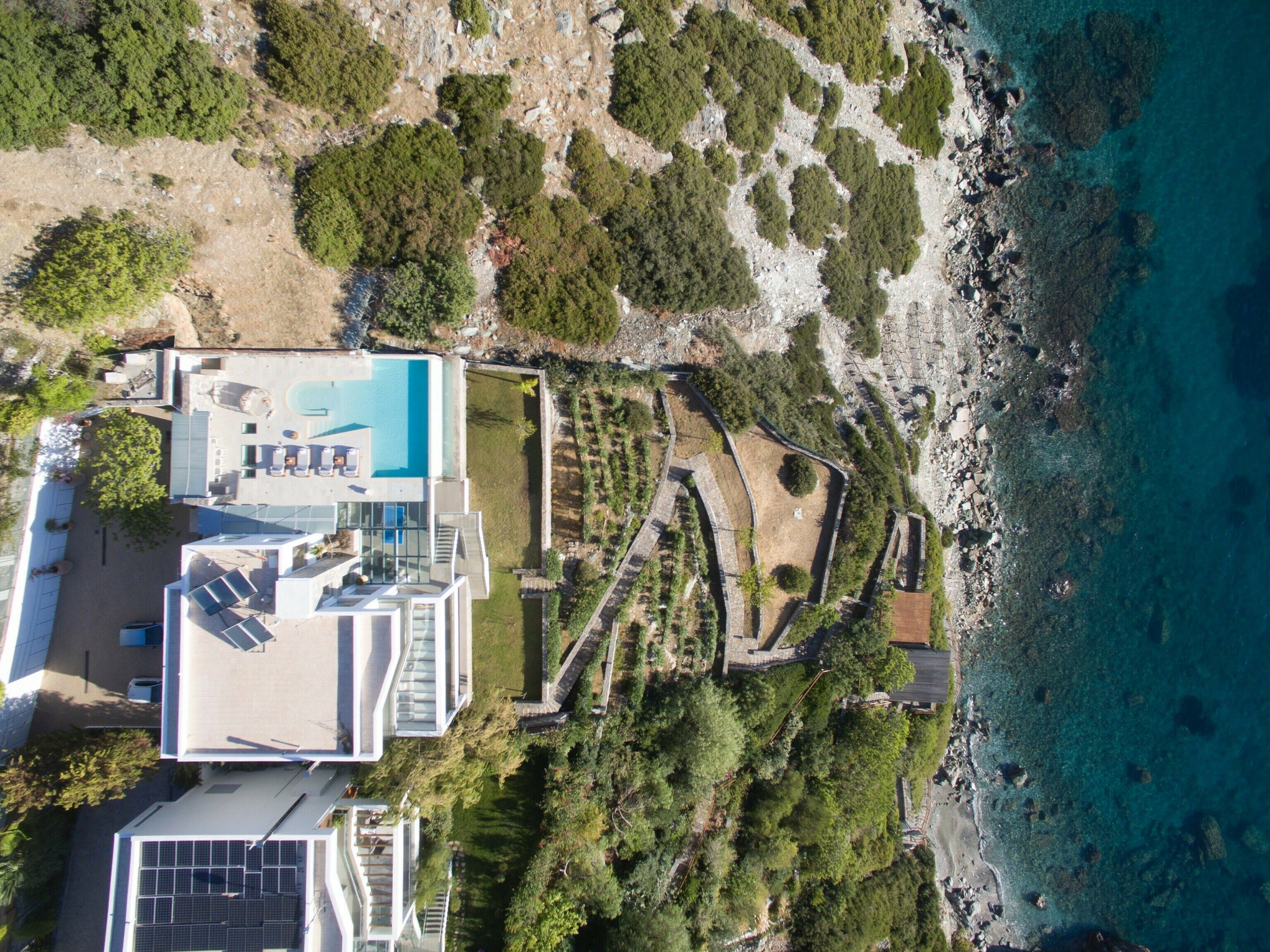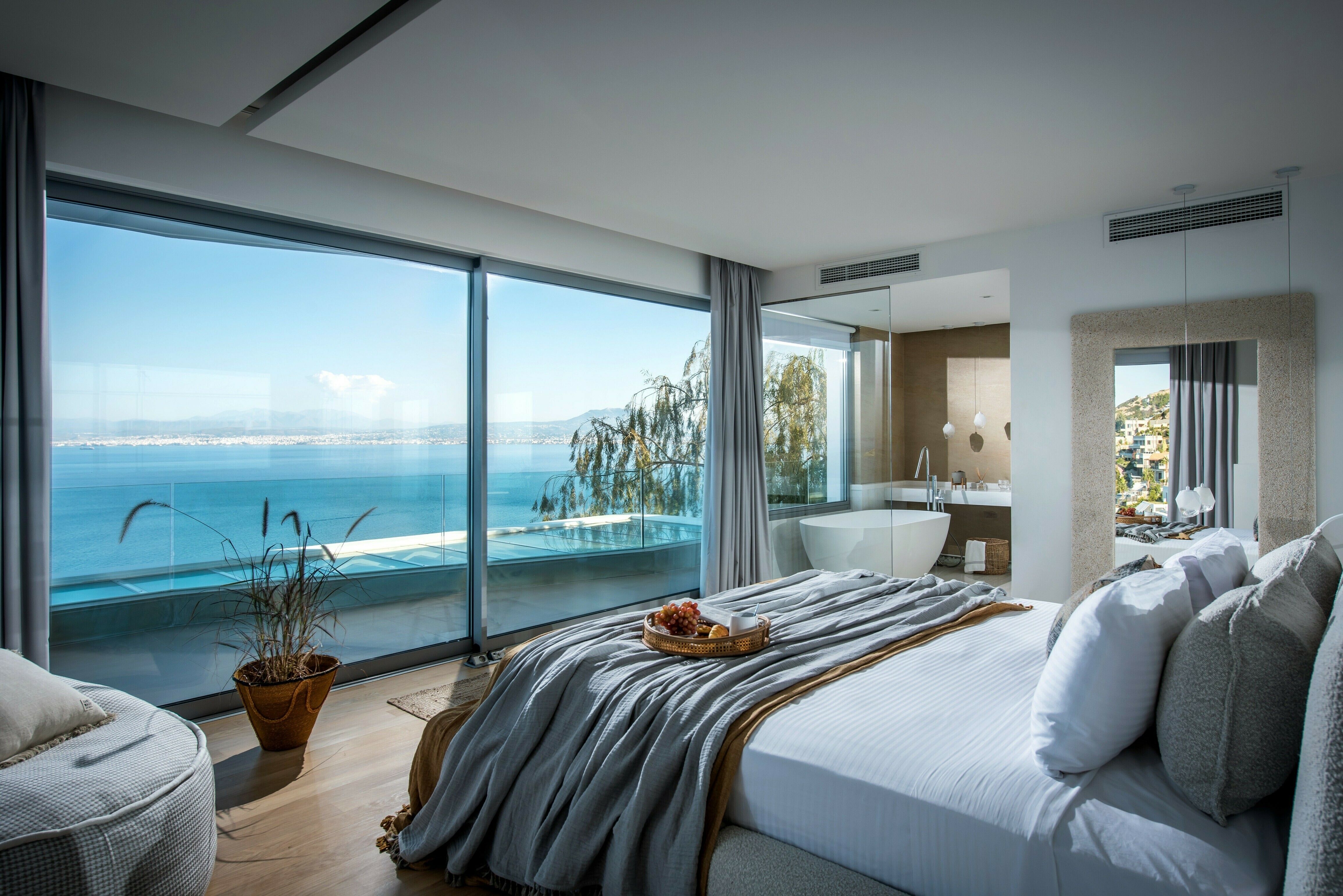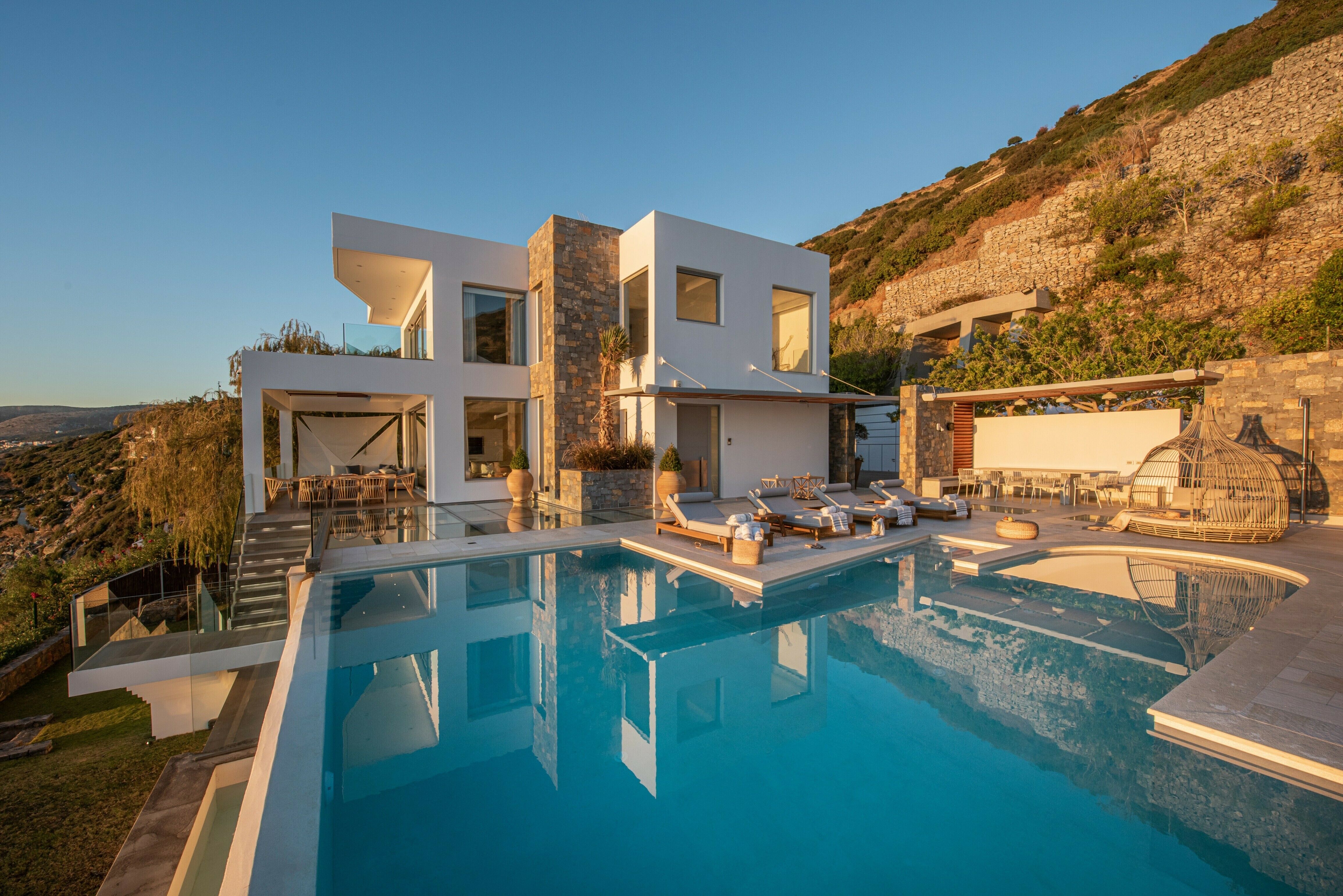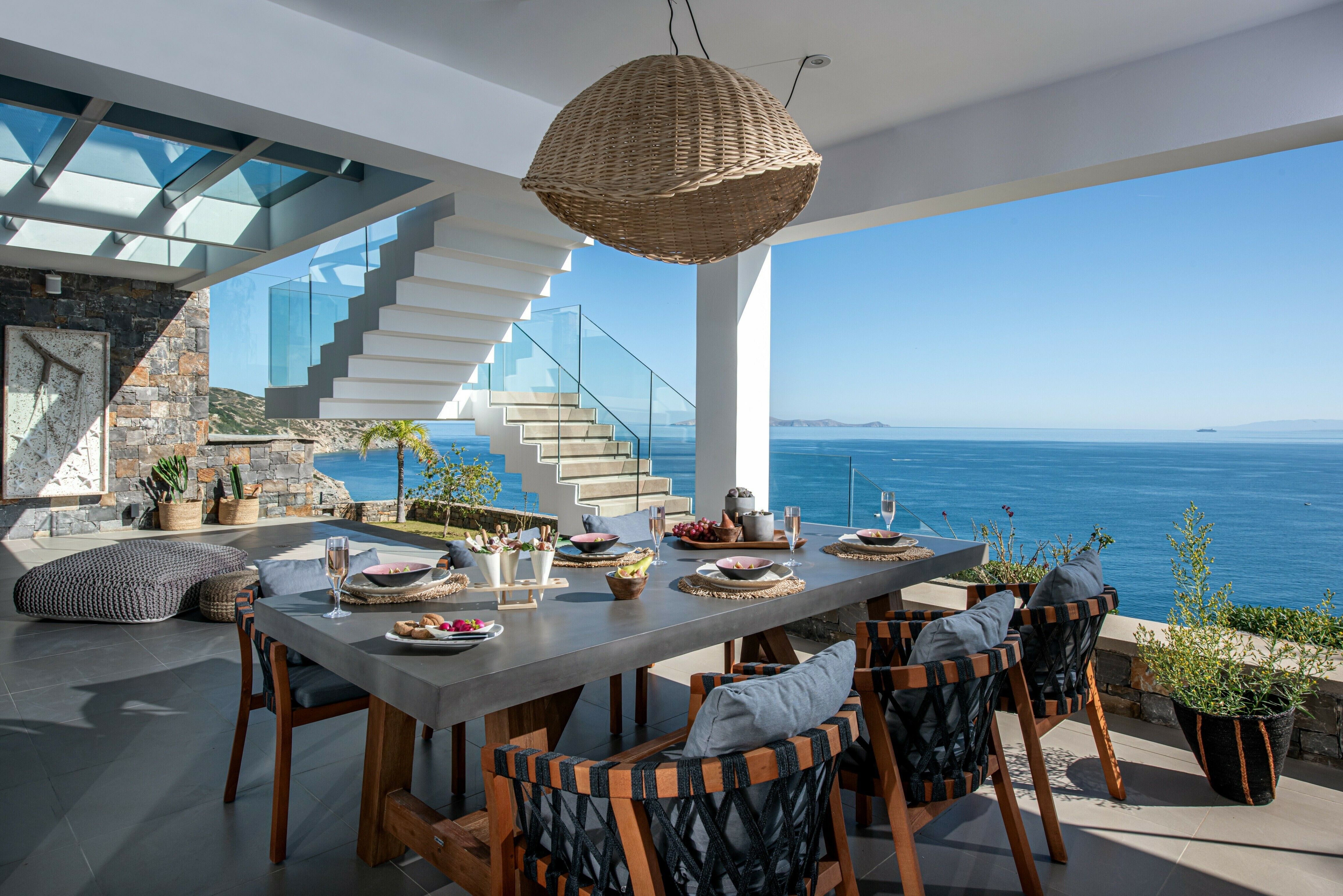This stunning villa offers a wonderful escape on Crete. Located in the countryside near the small coastal village of Palaiokastro, the property enjoys sublime coastal views from almost every angle. The exteriors are the star of the show, in particular the large terrace and infinity pool with far-reaching sea views, but there are also shaded dining and seating areas, all facing the Cretan sea. The interiors are no less impressive with generous bedrooms, a cool and contemporary living area and a well-equipped kitchen. You may well choose to use the outdoor kitchen instead, however. With a wood-fired oven and barbecue it's perfect for alfresco cooking.