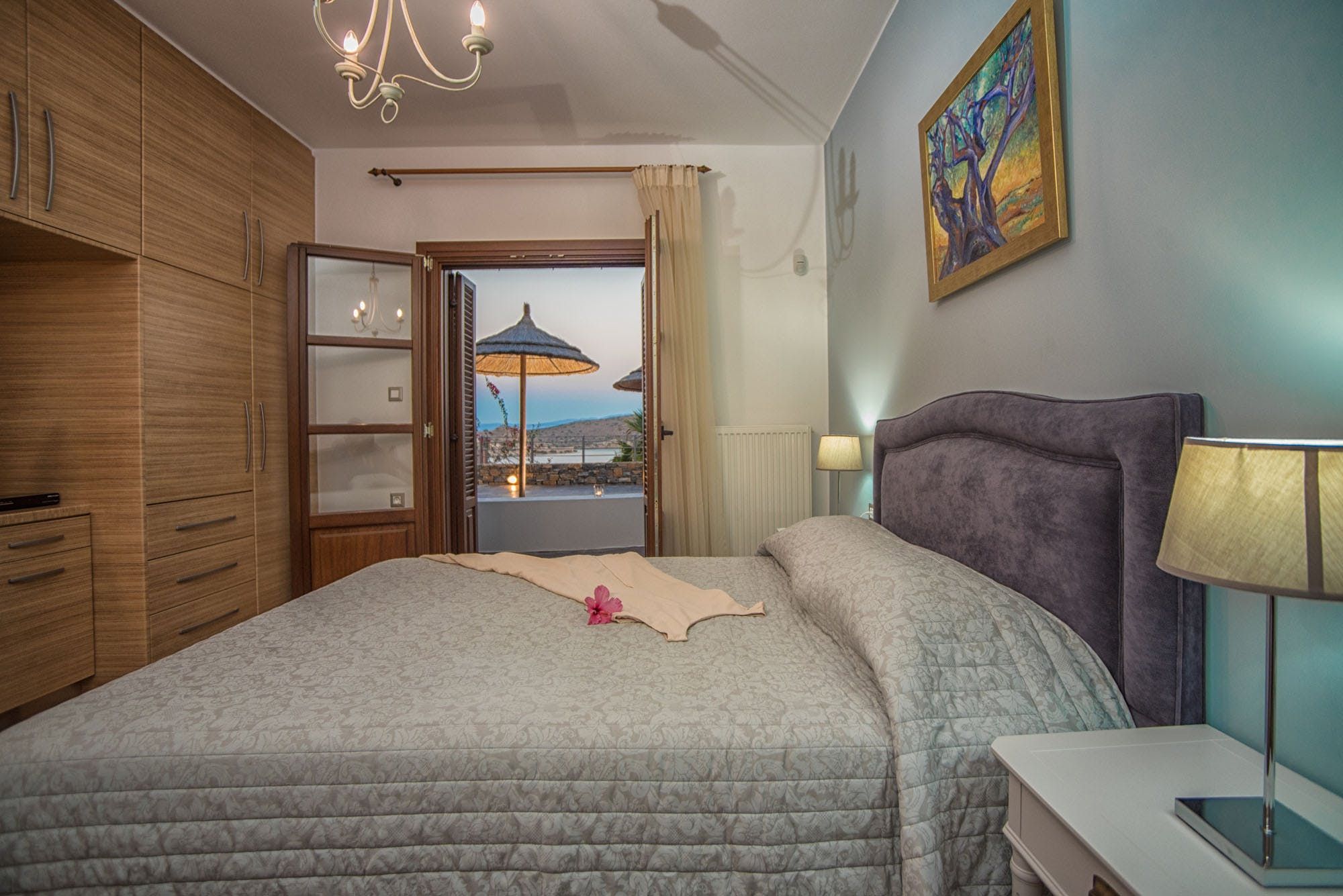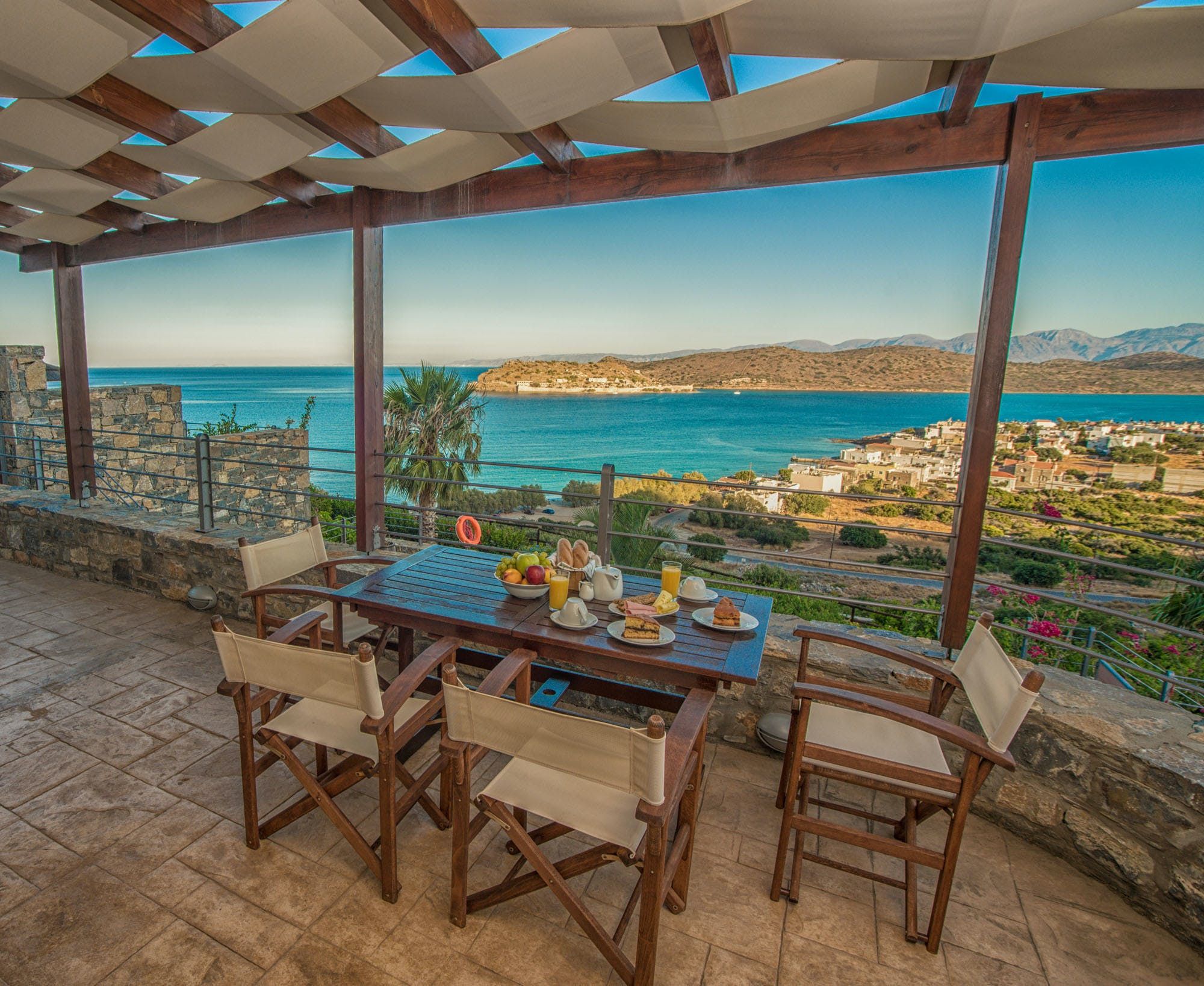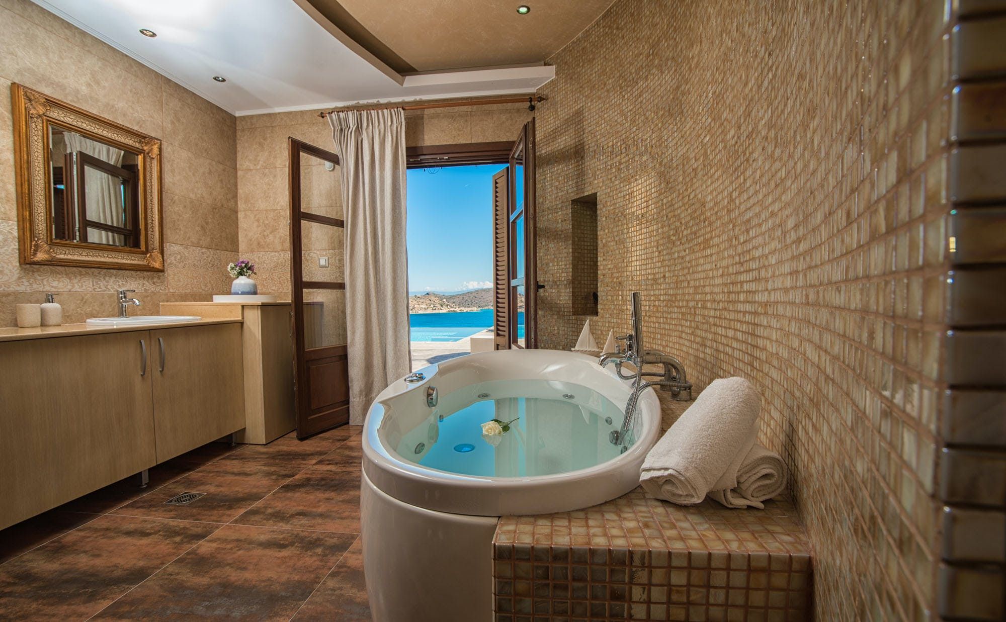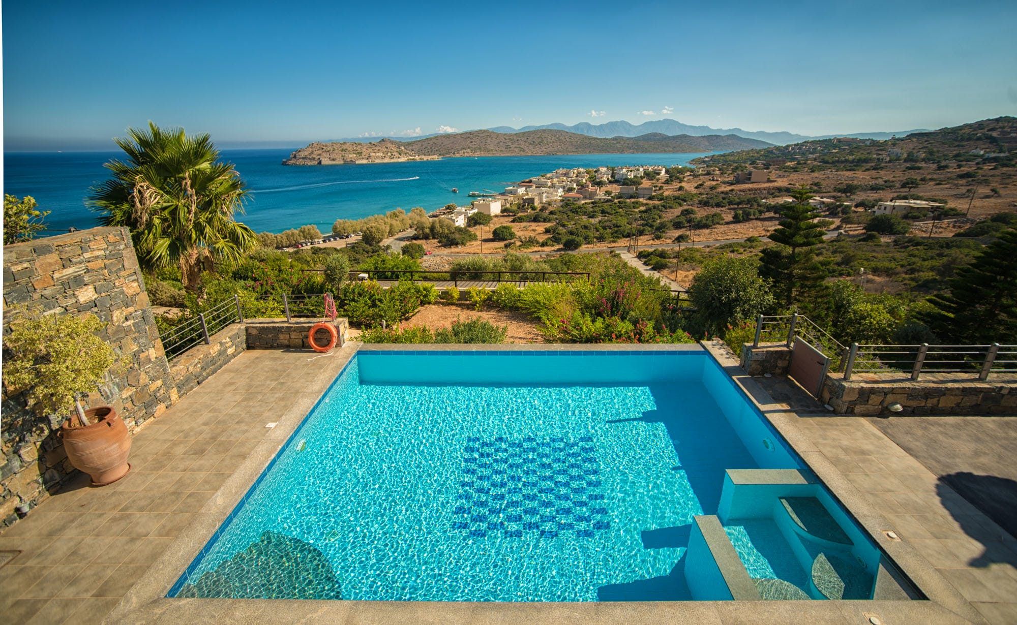 Nestled in the hillside overlooking the Mediterranean Sea, this villa is all about kicking back and letting the day pass you by. While the interior could do with an update, the place has everything you need to feel right at home, including a wellness room with a Jacuzzi tub. Though we think you’ll spend most of your time outside – just look at those views from the balcony and private pool. If exploring is on the agenda, you’ll find Plakas Beach and a handful of restaurants just a short walk from your doorstep.