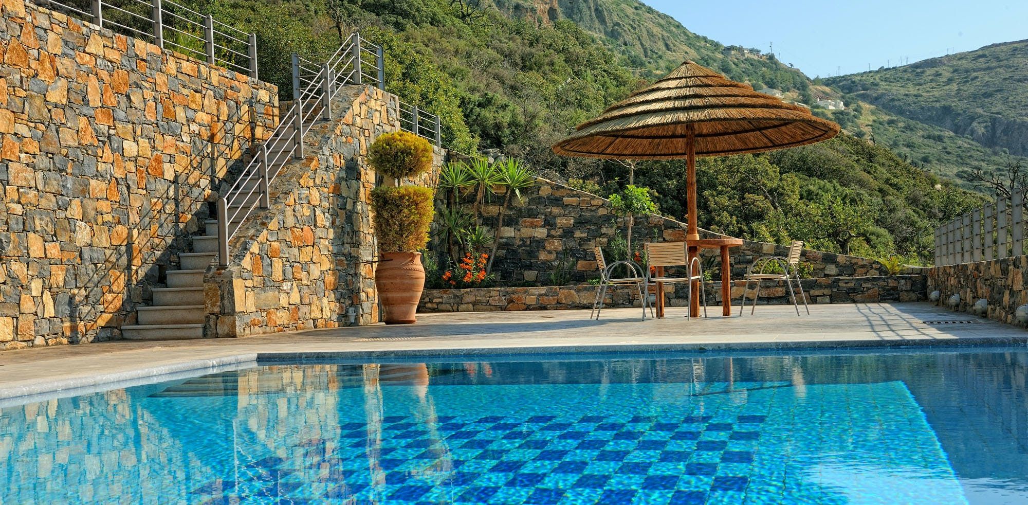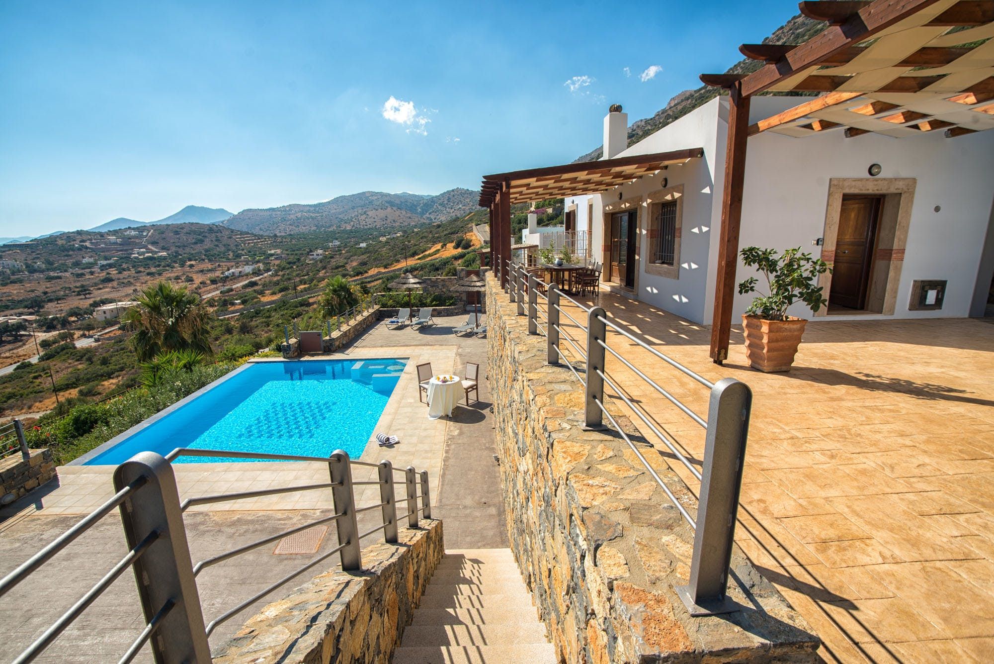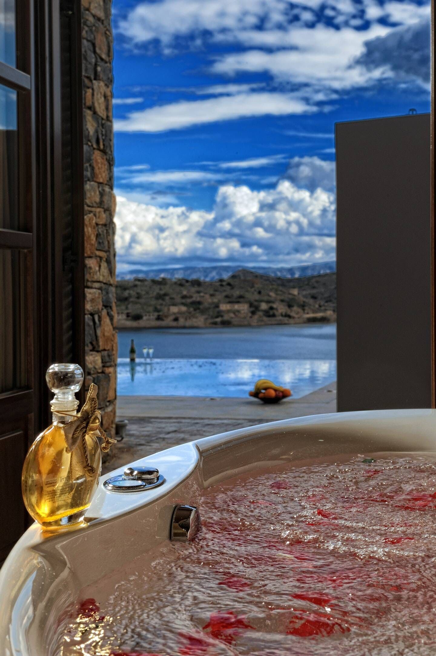 Nestled up on a hillside, this Cretan villa is in a prime position overlooking the ocean as well as the uninhabited island of Kalydon. You're just a short walk from the picturesque pebble beach of Plaka and within easy reach of Agios Nikolaos. This fantastic spot means you can enjoy some breathtaking views from the terrace, the balcony and the sparkling infinity pool. Inside, the home is welcoming and traditional – it looks a little dated in parts, but we think this adds to its quaint charm – and you'll find you have everything you need for an effortless stay. We particularly love the Jacuzzi-style bath – the perfect way to end a busy day.