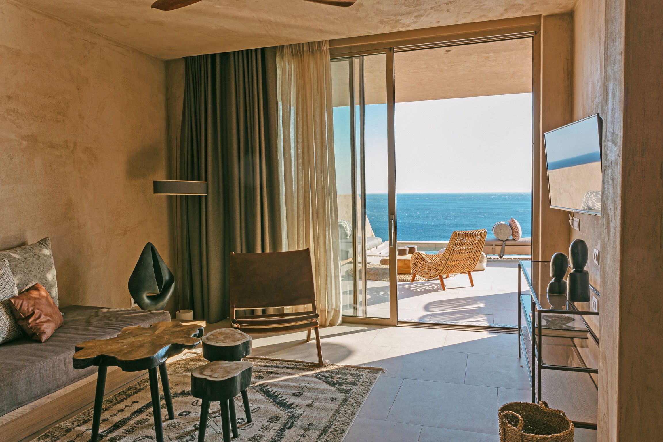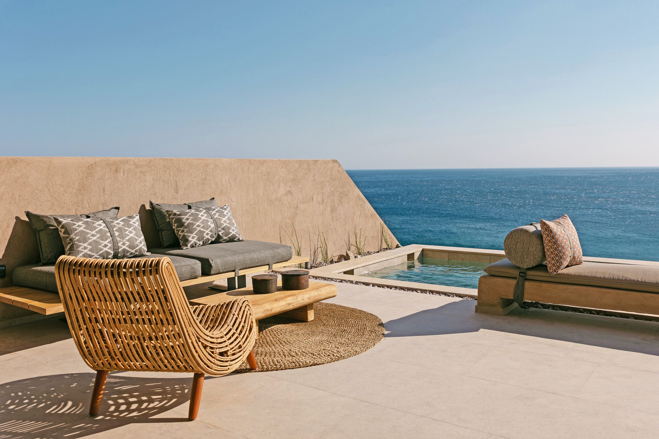 This home's proximity to the beach (just 250 metres away) makes it a stand-out. Private access is via pretty steep steps, and it’s shared with the villa next door, but you can't beat having the sea that close. The nearest taverna, bar and mini-market are a little further, so you'll need to hire a car or get a cab. But the views back home are stunning, and there's a pool to cool off from the sun. You can enjoy vistas from inside as one of the bedrooms opens onto the terrace. One of the more unusual design features is that the kitchen is open to the elements, but as Crete is known for its fantastic weather, that's not a problem.