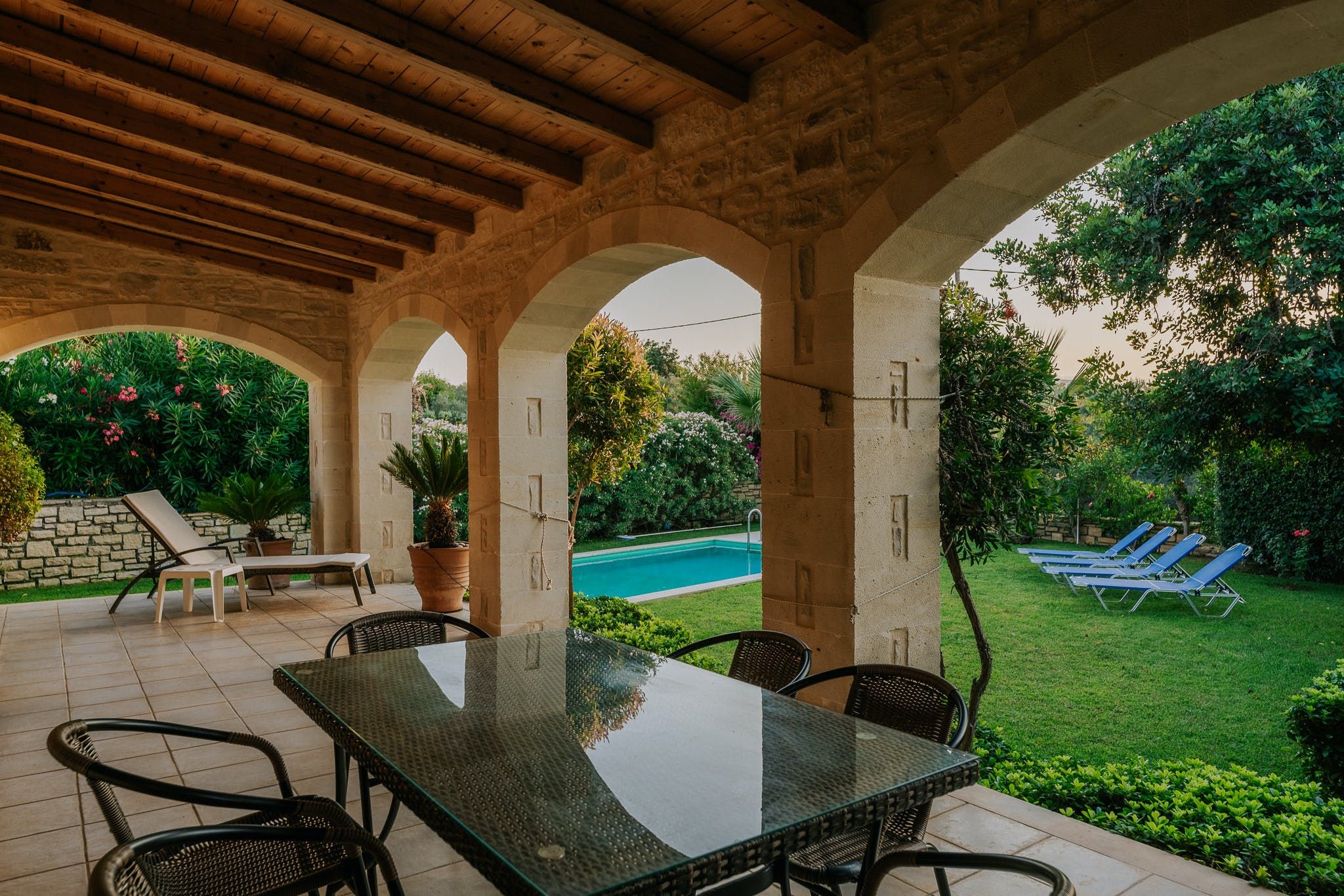 Situated in a cul-de-sac, it’s a leisurely stroll to the village centre, where there is a mini market and a choice of tavernas and cafe bars if you prefer to eat out. Or head to Rethymno, with its old Venetian harbour, 6 kilometres away. For a day at the sea, the nearest beach is 3 kilometres from this lovely villa.