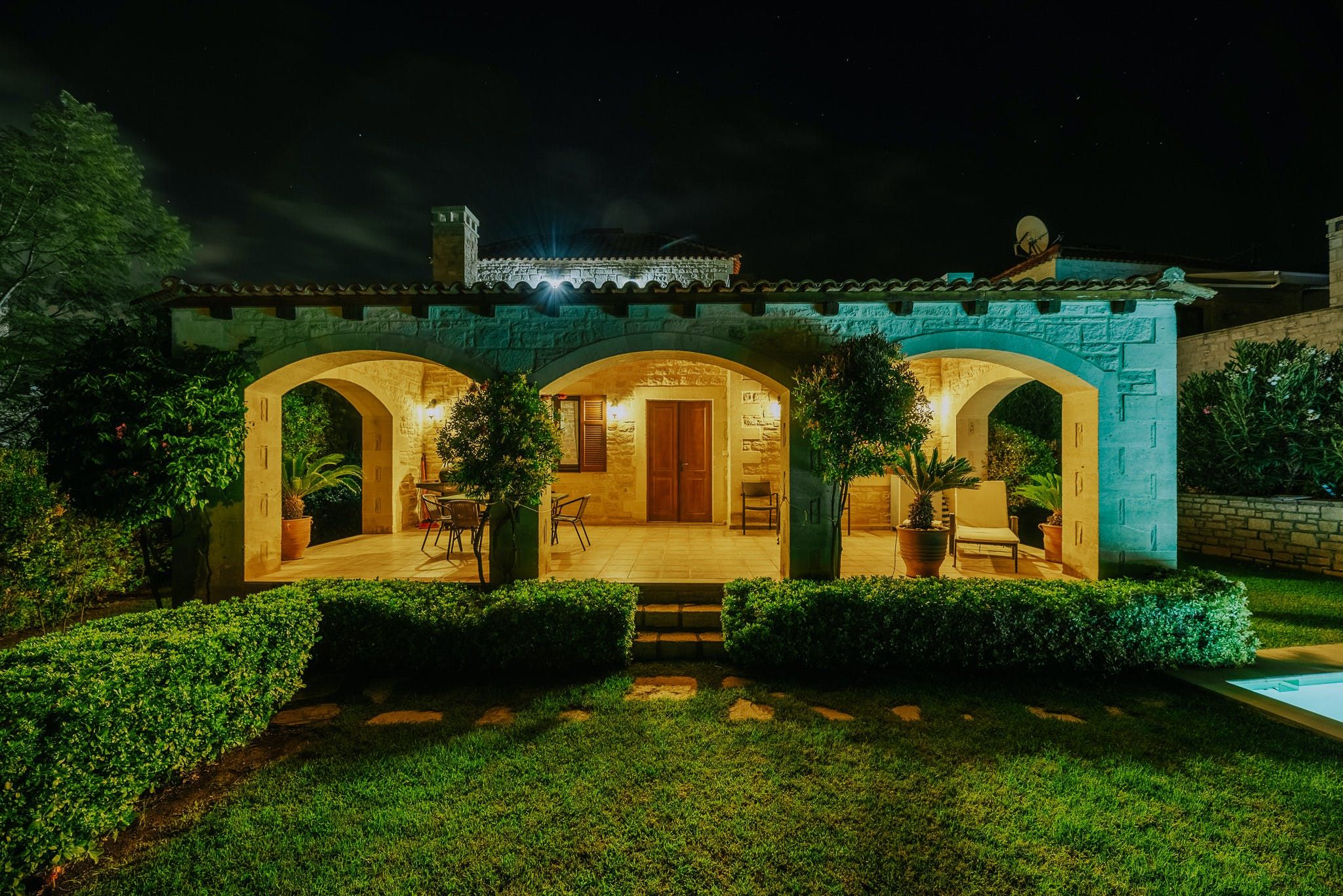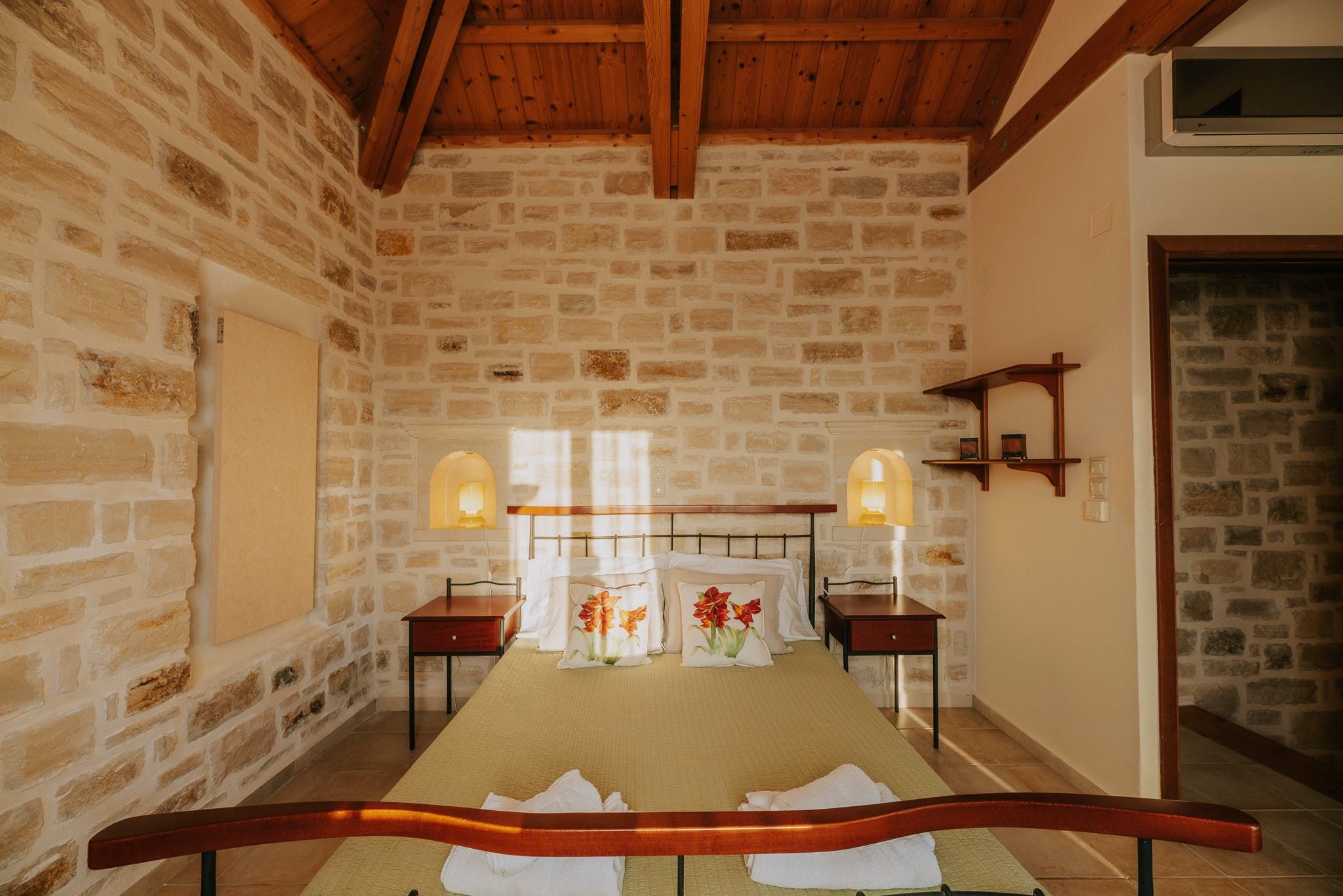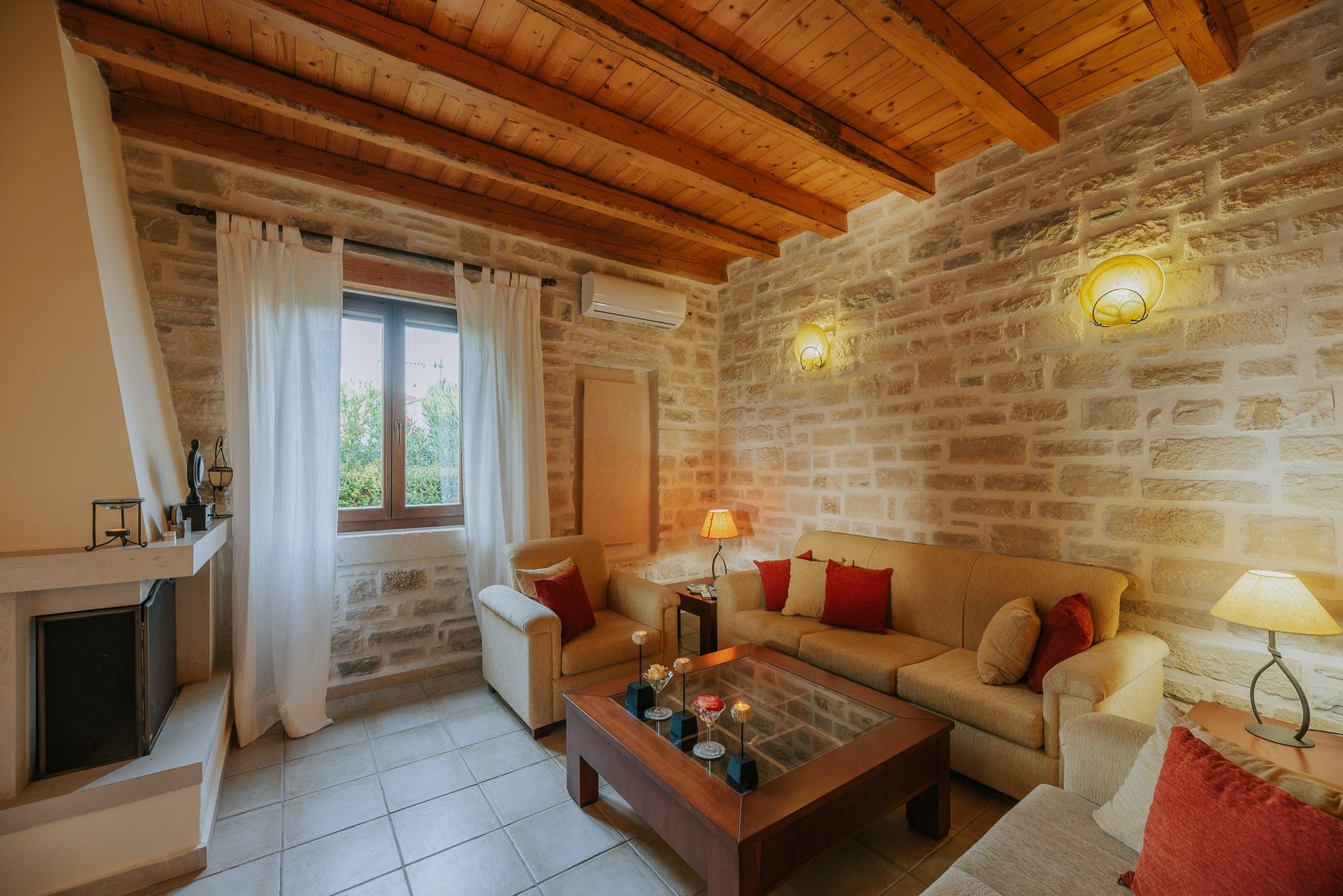 Inside, exposed stone, beams and arches create an atmospheric space, especially at night, and several sofas accommodate your family or friends for a good chat before dinner.