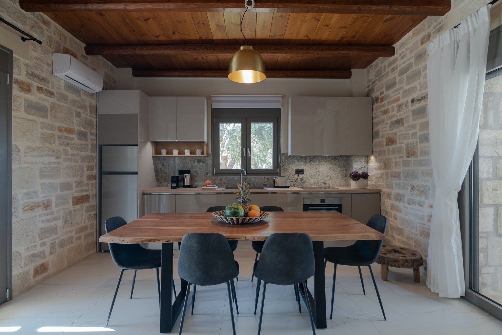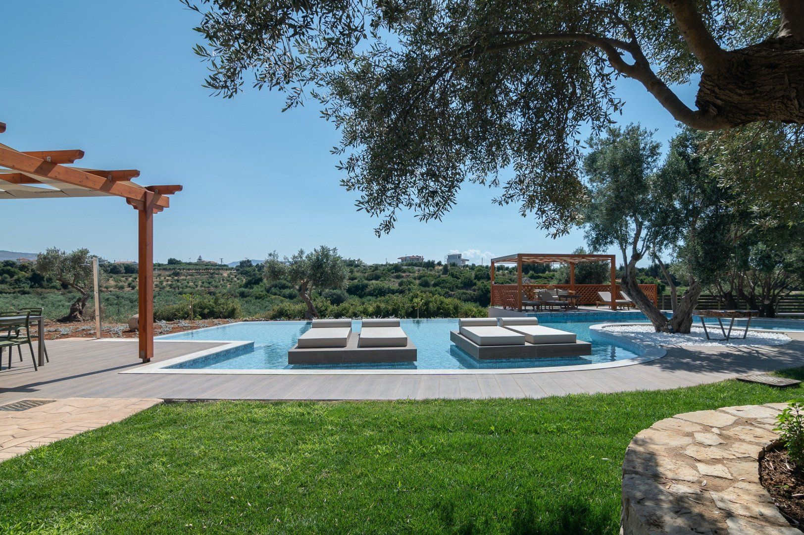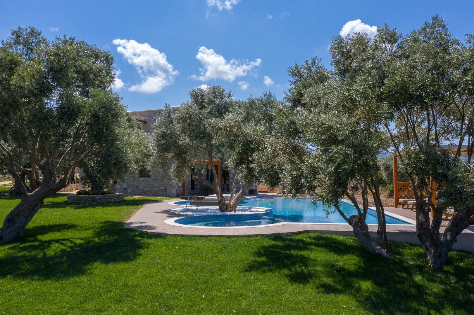Perched only a kilometre away from the nearest beach and within walking distance of the local cafes and traditional taverns – this charming Cretan villa sets the scene for a serene holiday in the sunshine. On an expansive plot surrounded by olive trees, lawn areas, and a big variety of fruit trees, vegetables, and herb plants (which you're free to pick and cook with) – the Mediterranean setting here is what dreams are made of.