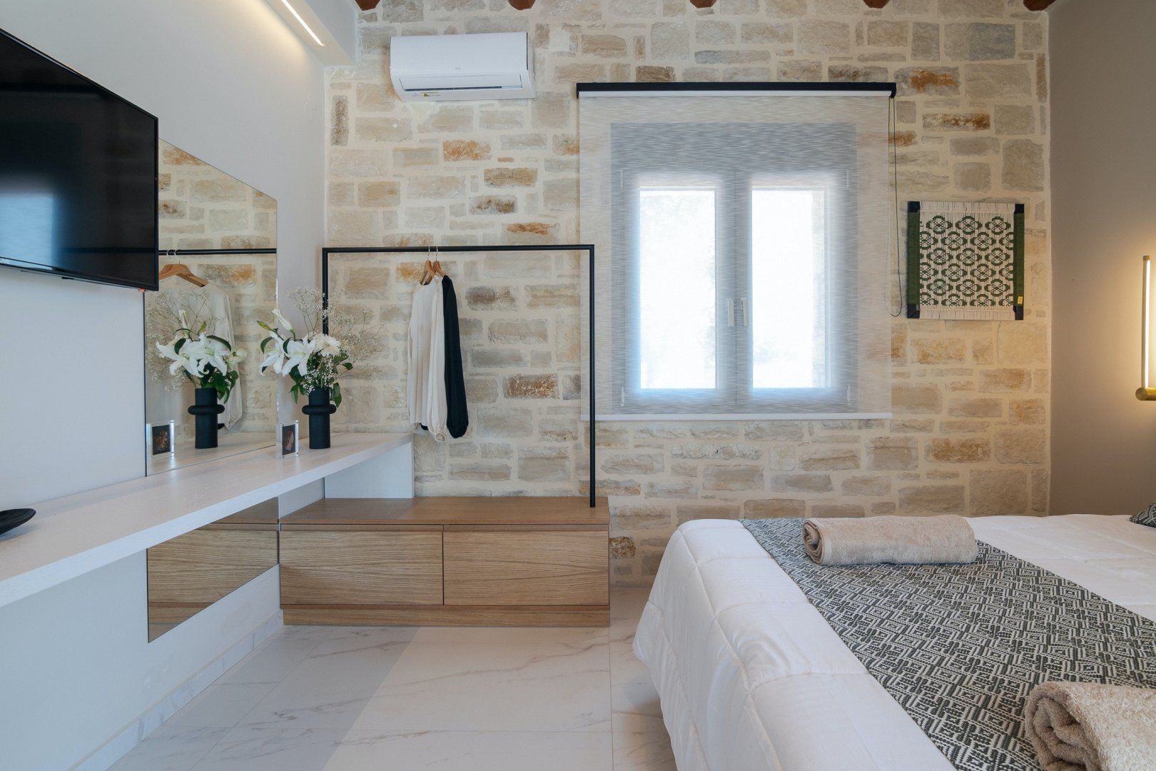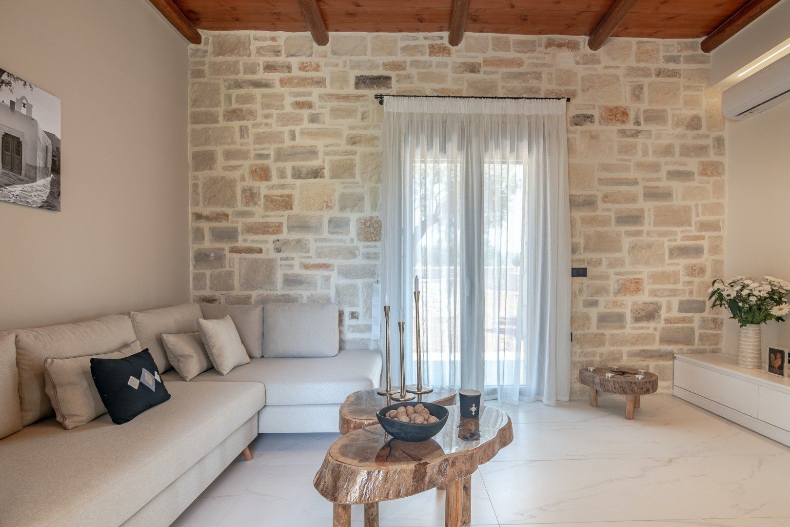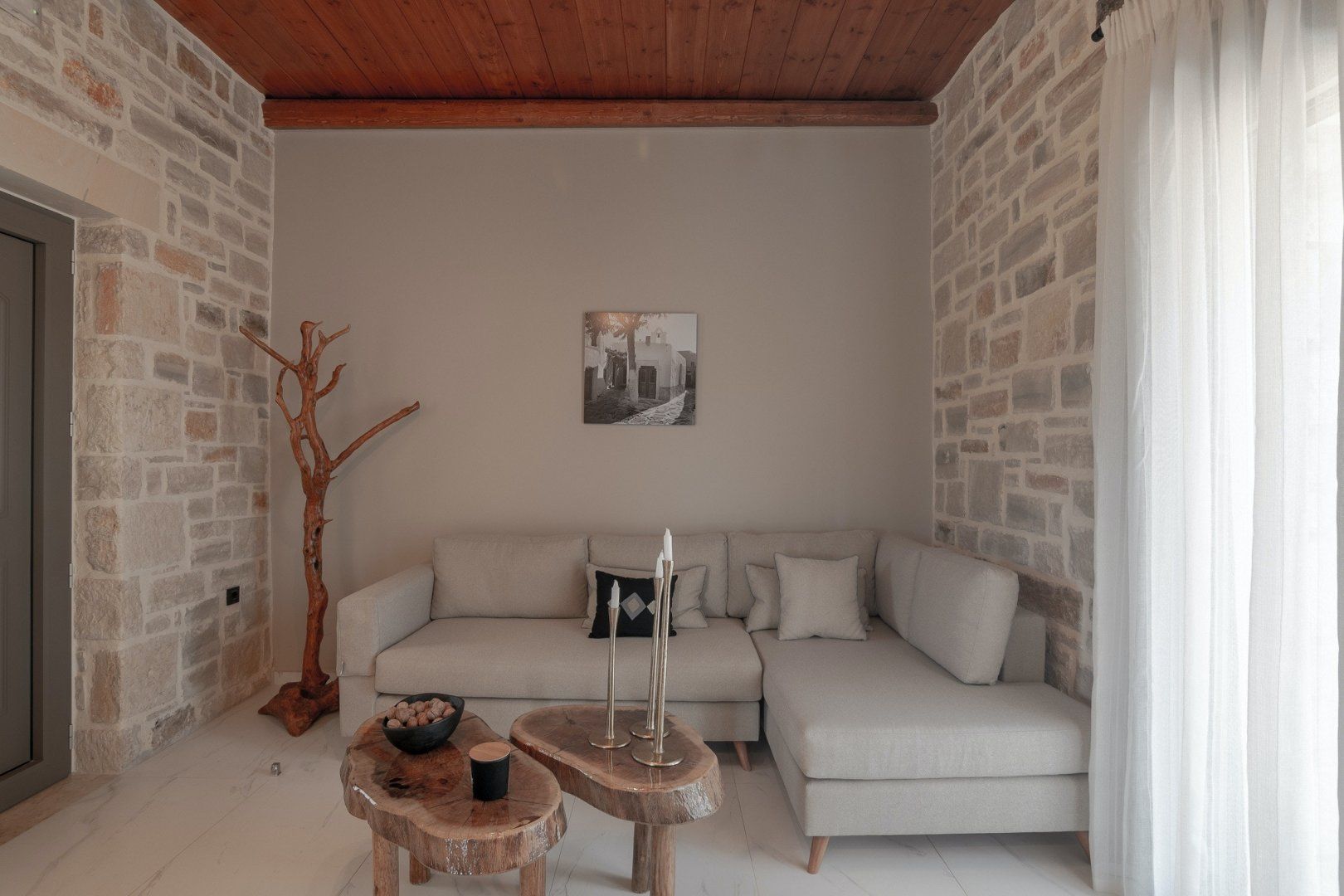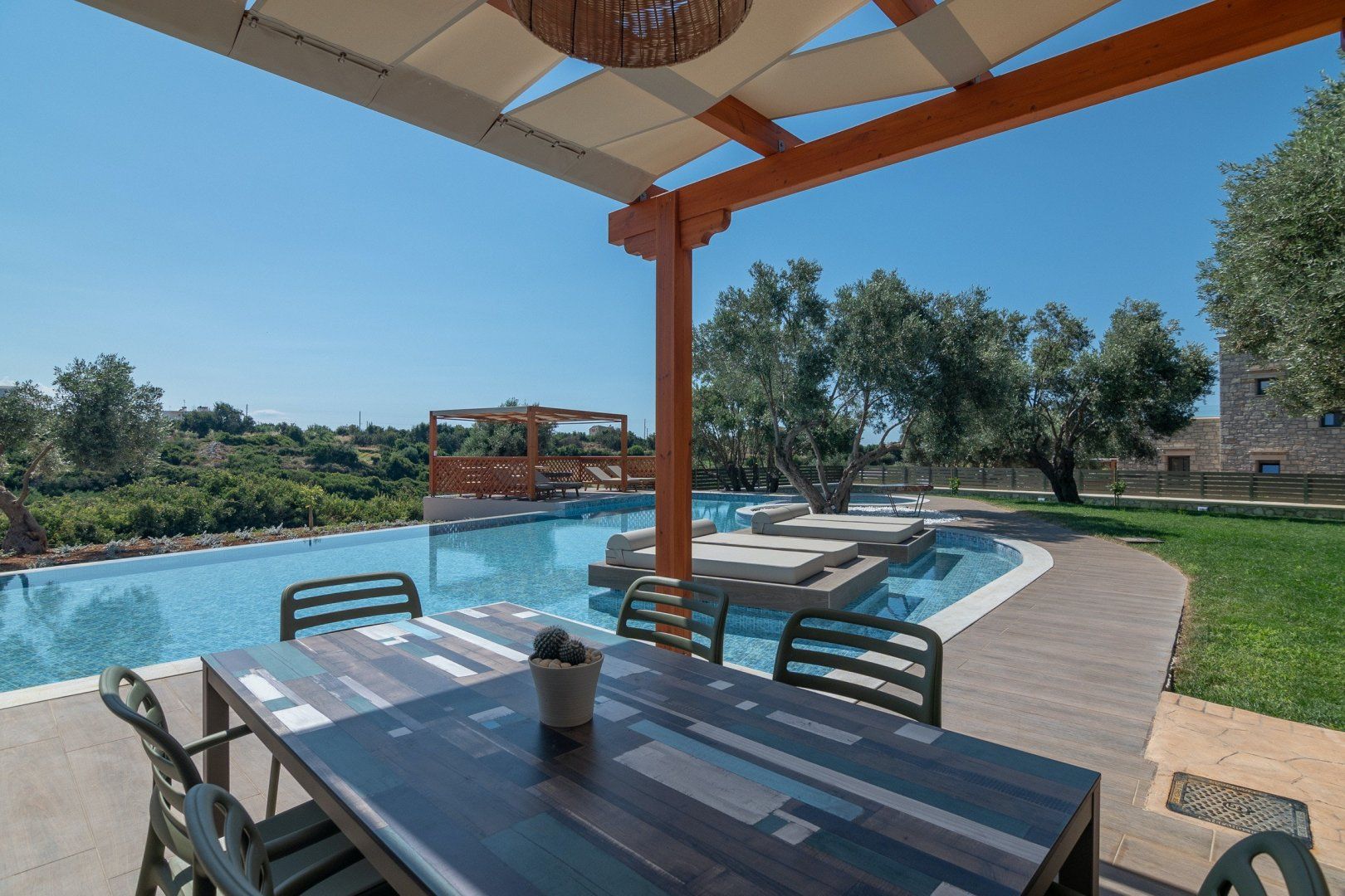 Perched only a kilometre away from the nearest beach and within walking distance of the local cafes and traditional taverns – this charming Cretan villa sets the scene for a serene holiday in the sunshine. On an expansive plot surrounded by olive trees, lawn areas, and a big variety of fruit trees, vegetables, and herb plants (which you're free to pick and cook with) – the Mediterranean setting here is what dreams are made of.