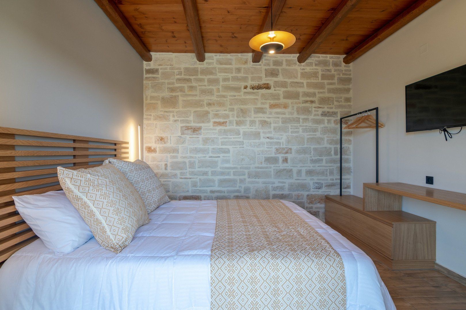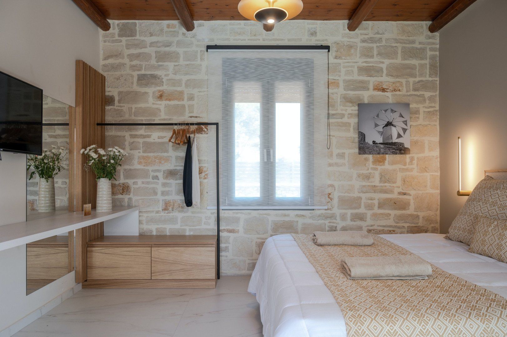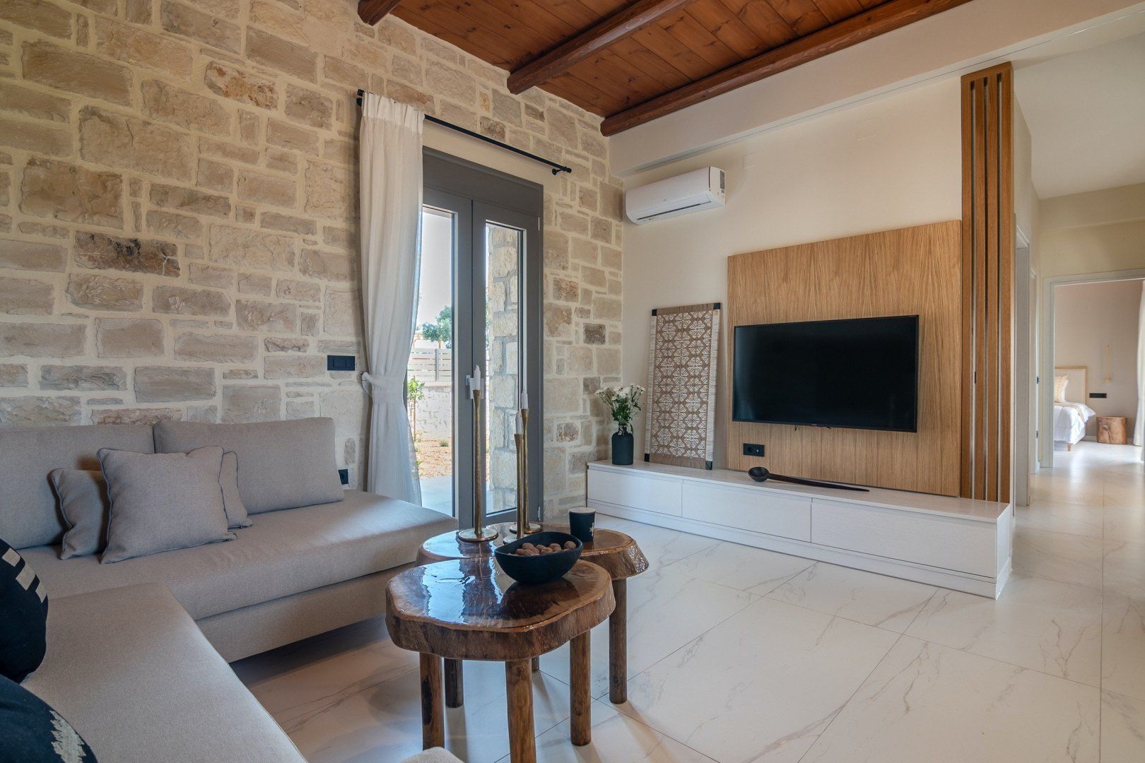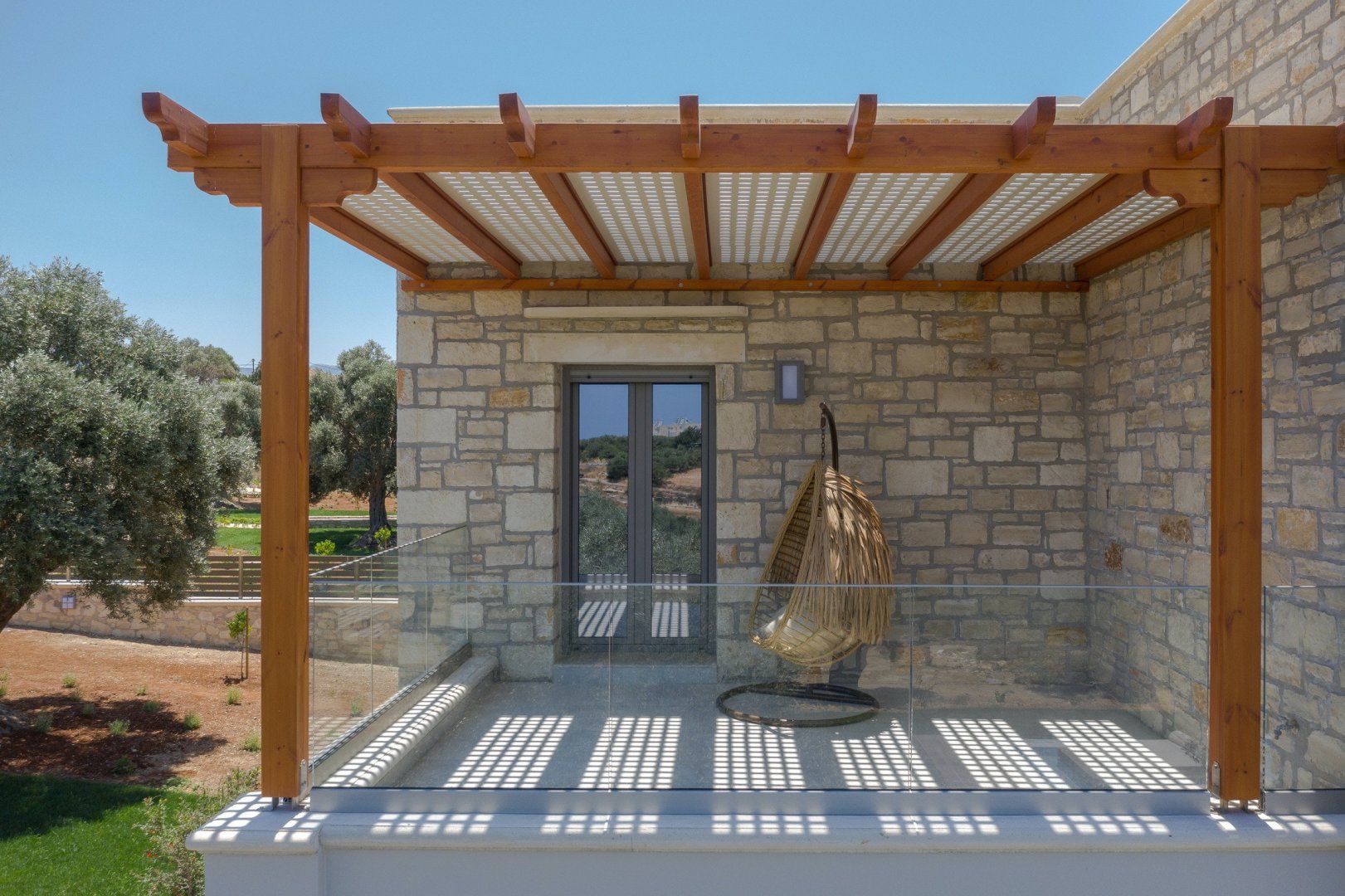 This strikingly beautiful home is a luxurious Crete hideaway, surrounded by olive trees and manicured lawns. Outdoors, you can allow your troubles to melt away as you relax on the floating island sun beds. Grab your sunscreen and a good book to enjoy an afternoon soaking up the sunshine. If you aren’t sure what’s tickling your tastebuds for dinner, take some inspiration from the herb garden, vegetable patch and fruit trees, all waiting to help you create a delicious meal. When you are ready to rest your eyes, enjoy the serene feel of the bedroom decor. Neutral colours, golden accents and cosy bed runners ensure you can enjoy a restful night's sleep.